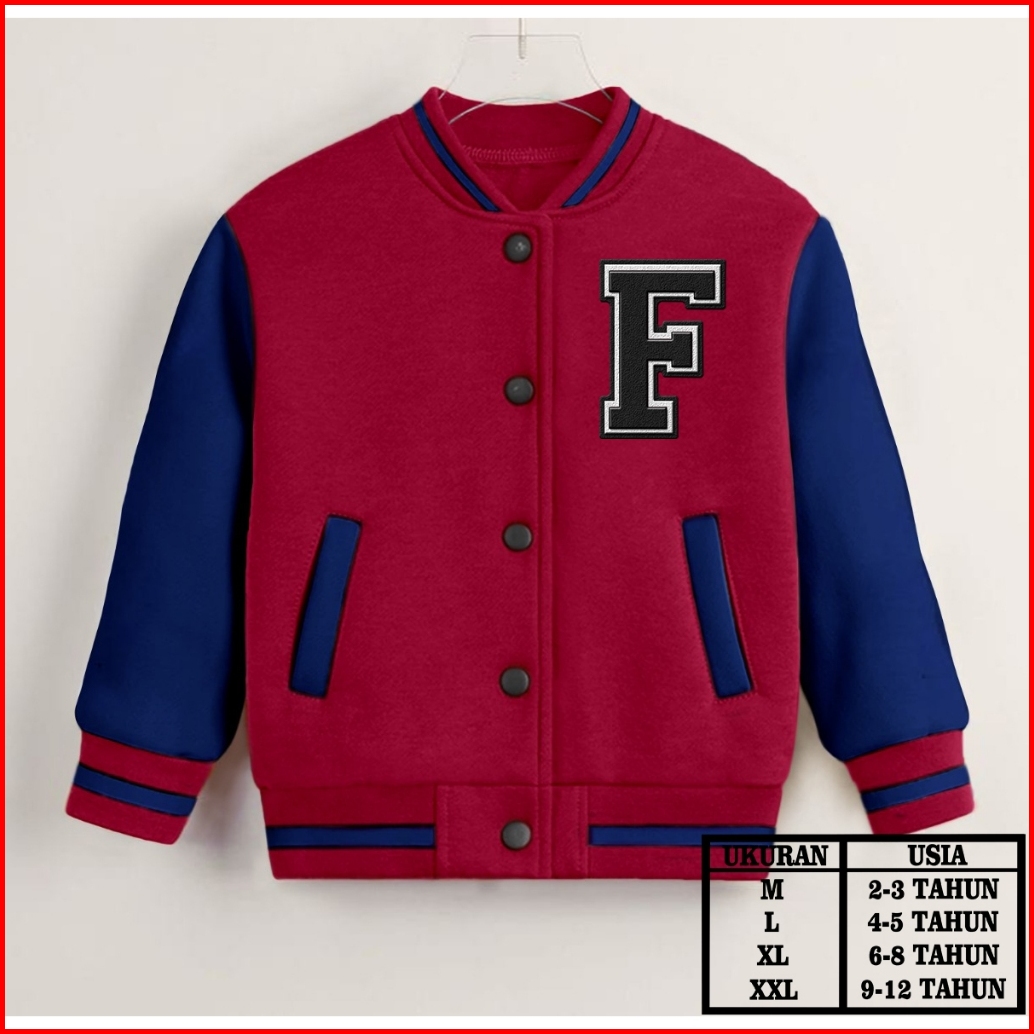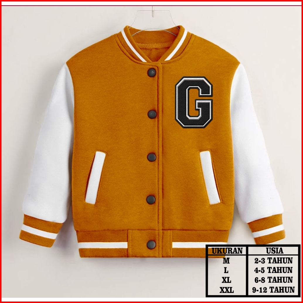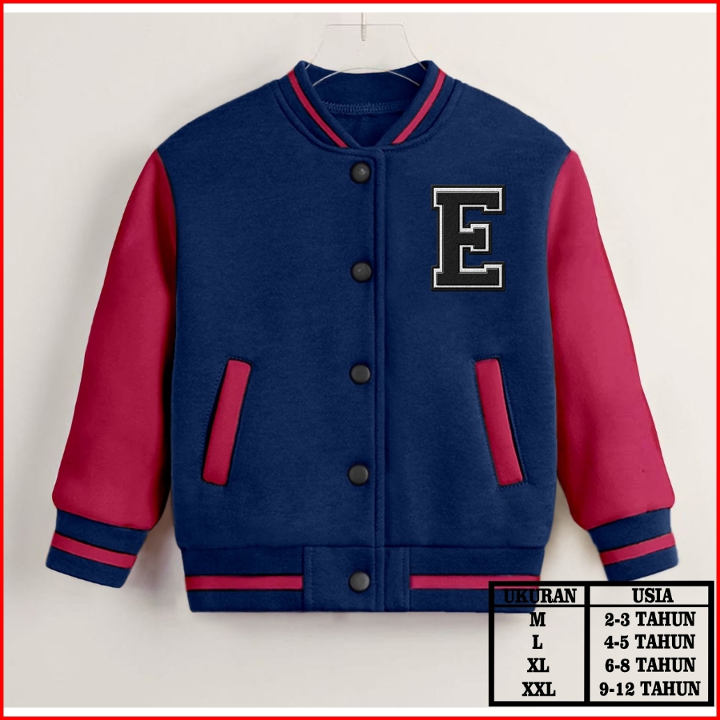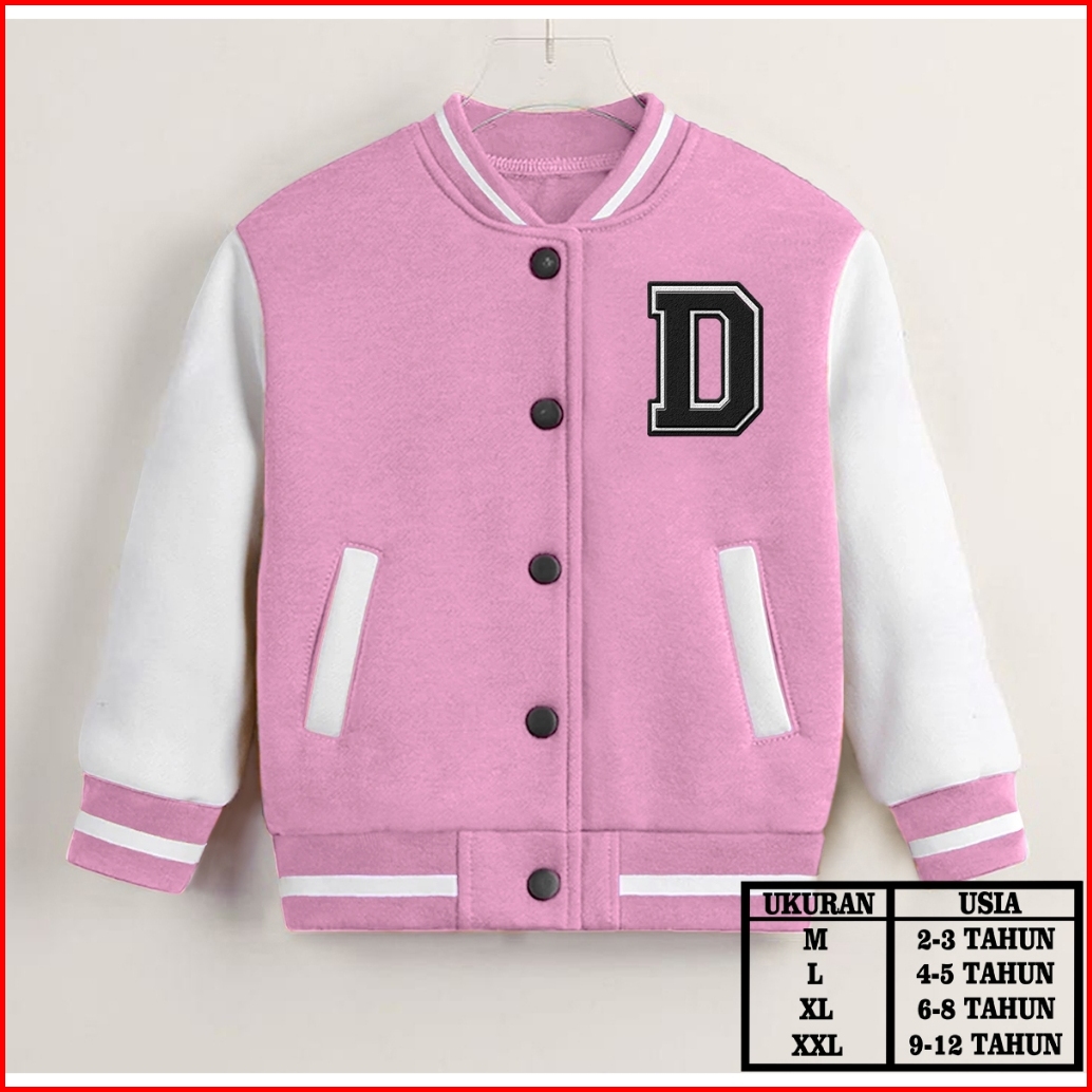Jaket Baseball Varsity Inisial Huruf A-z Laki Laki Perempuan Usia 2-12 Tahun Hoodie Sweater Anak