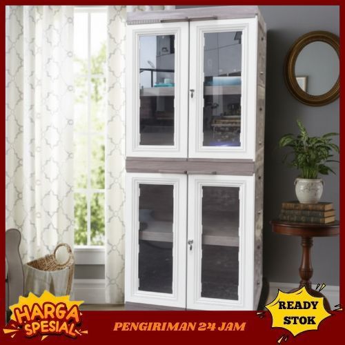 Lemari Plastik ruang tamu Lp2P Lemari hias buku kaca FULL KUNCI Lhb 2P