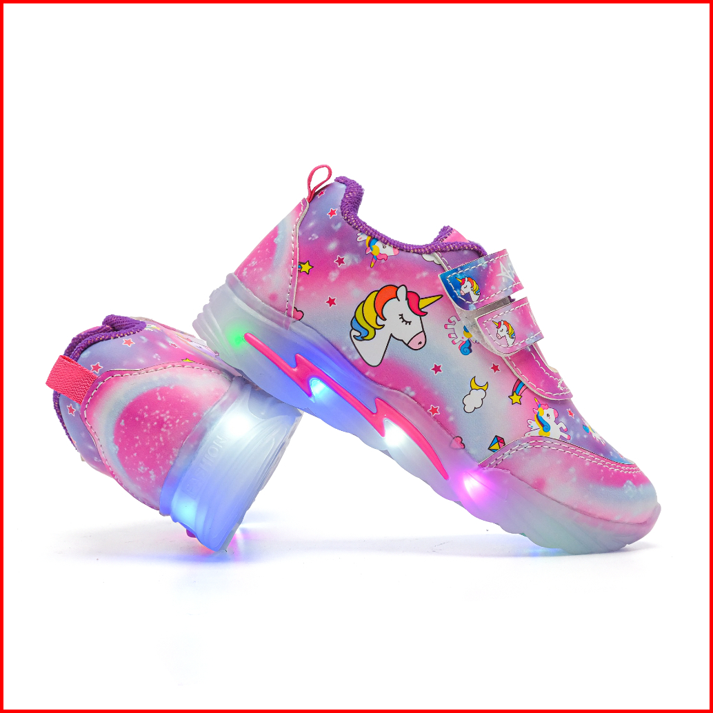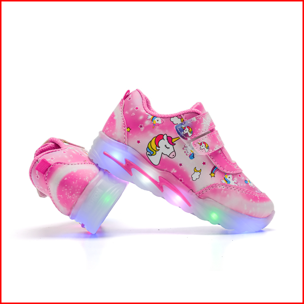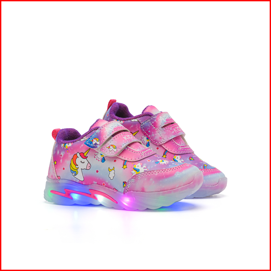Arkana - Sepatu Sneakres Anak Perempuan Dengan Lampu Led Model Karakter Kuda Poni Lucu