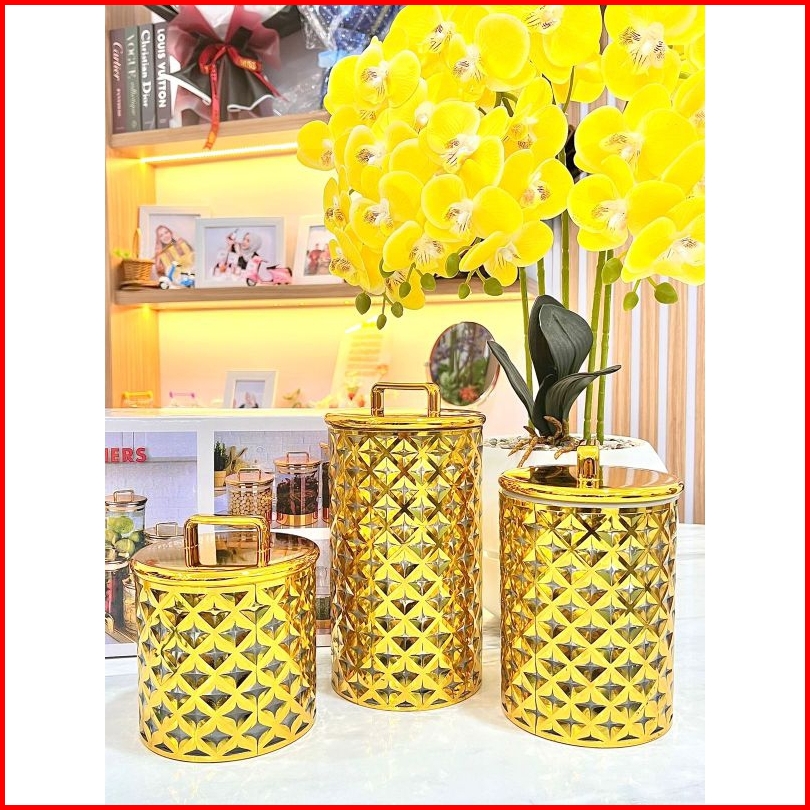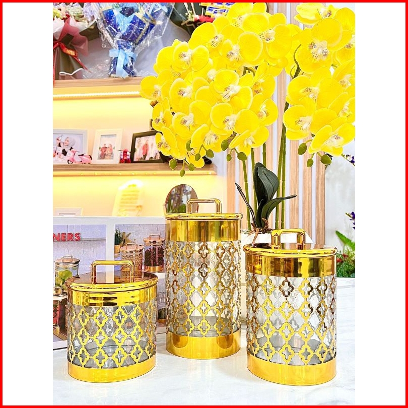 Toples Mewah Akrilik 3 Pcs Toples Makanan Aesthetic Toples Container 3 Pcs