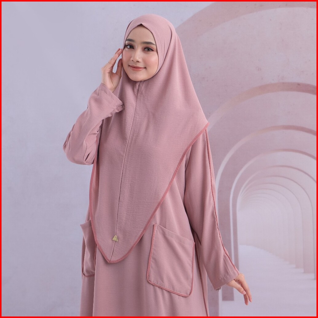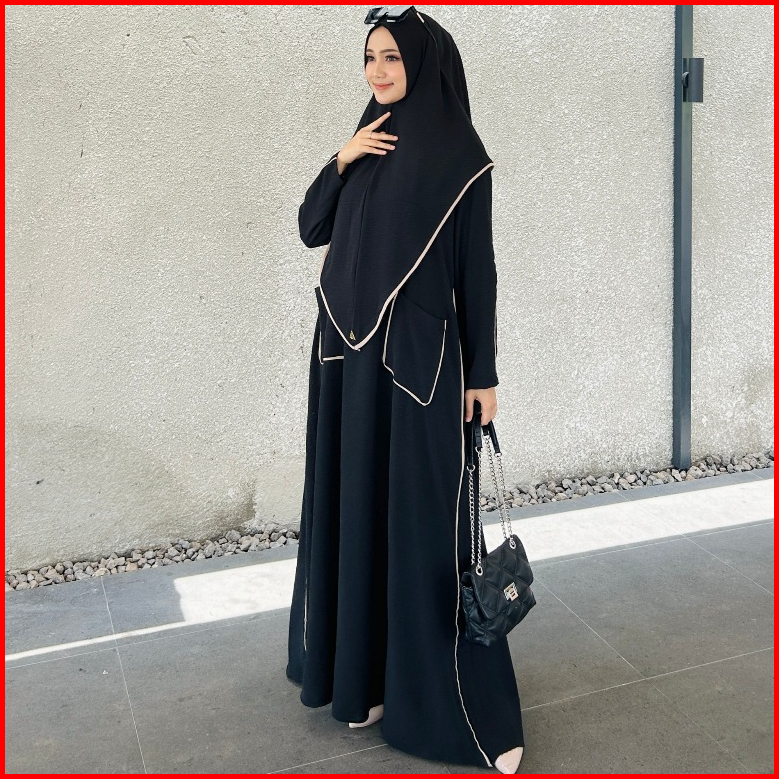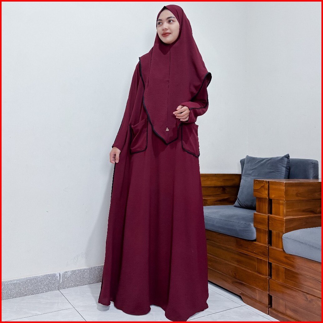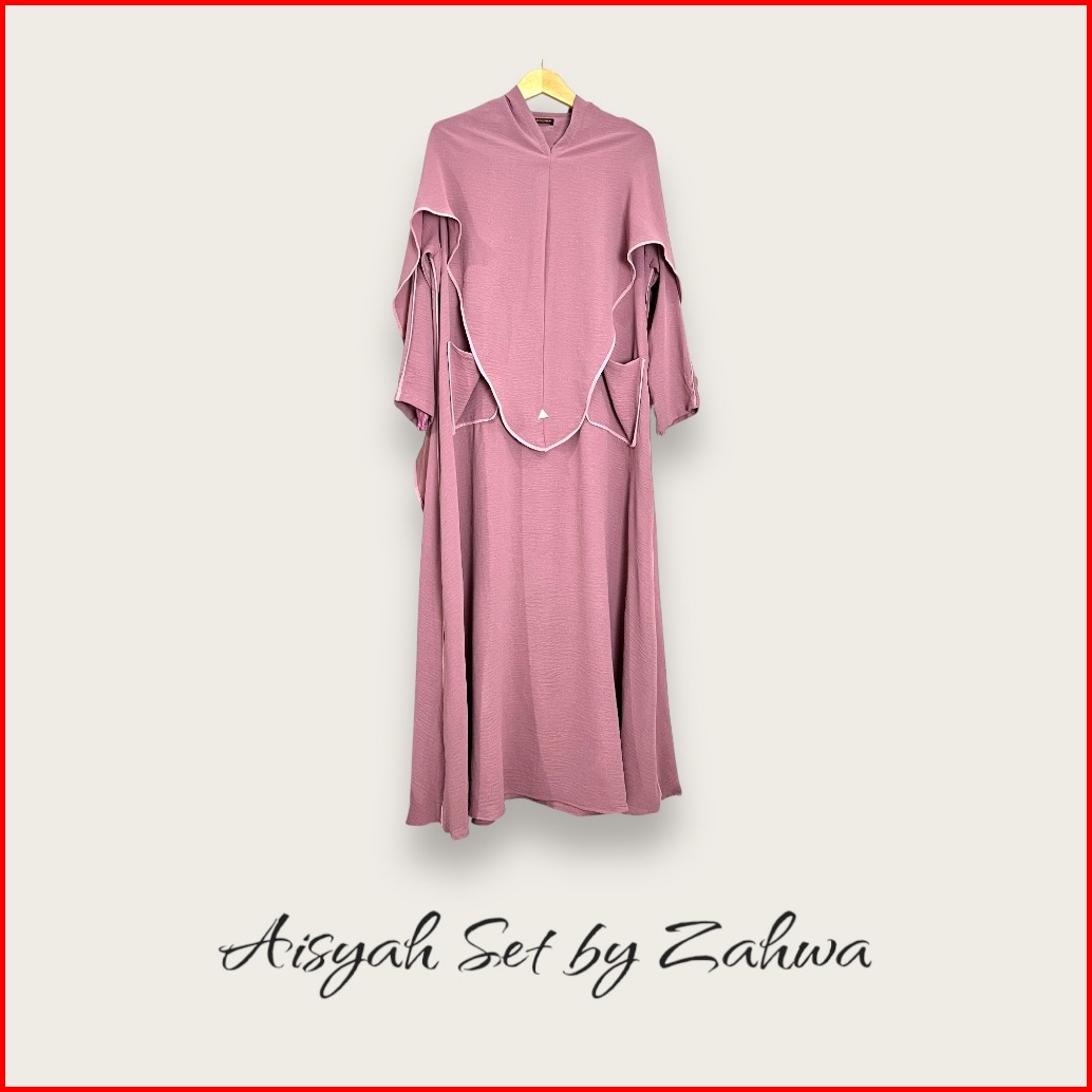 Zahwa Aisyah Dress Gamis Abaya Premium Set Khimar Bergo Bahan Crinkle Airflow All Size
