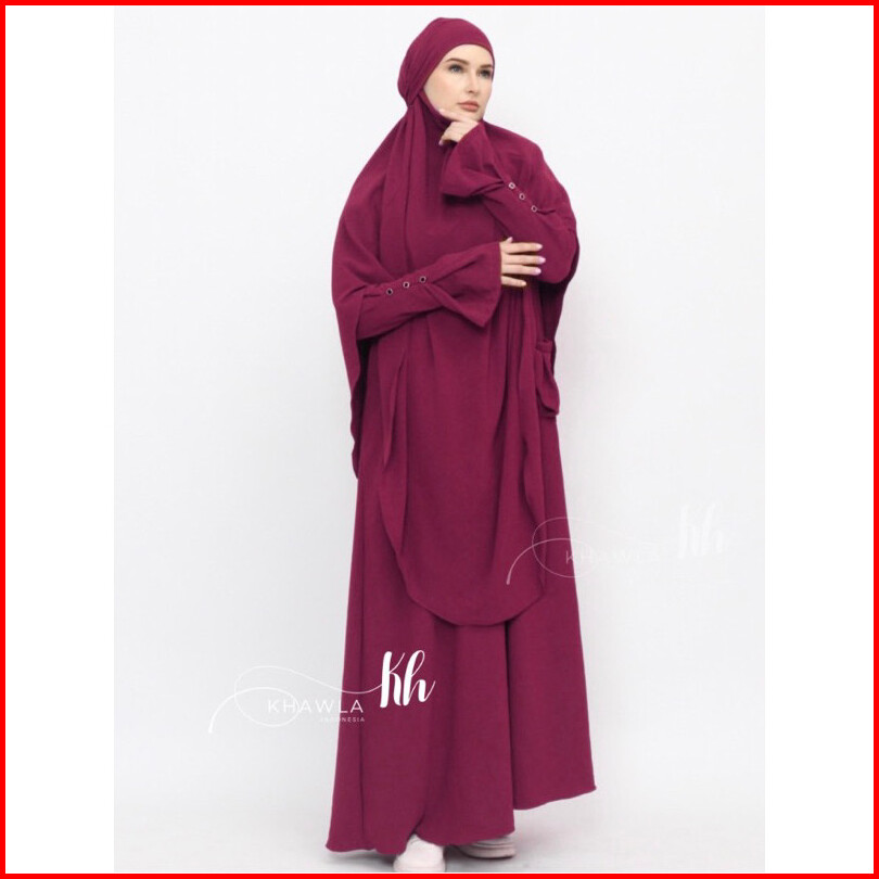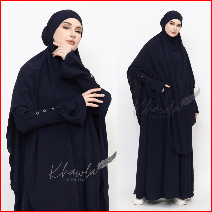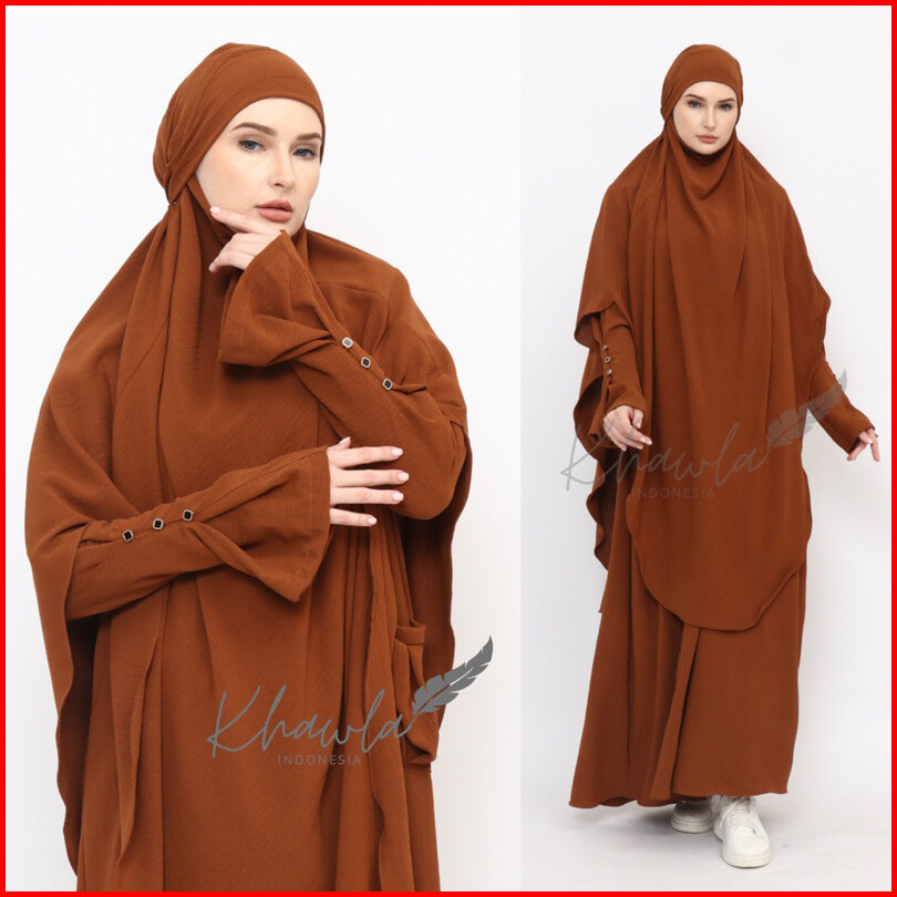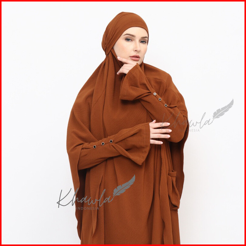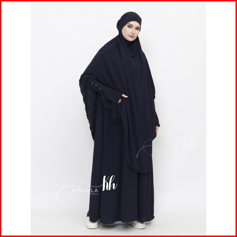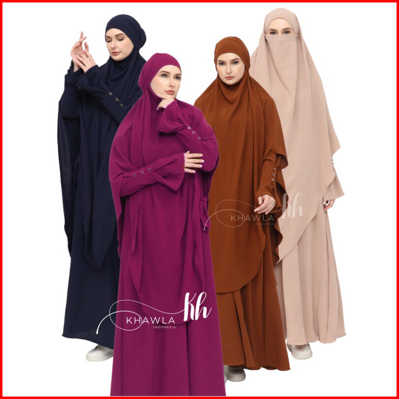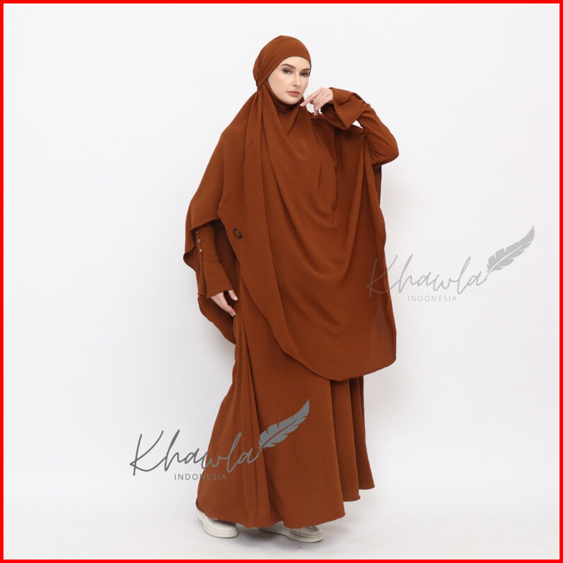Khawla Natasha Syari Set French Khimar Gamis Abaya Crincle Airflow