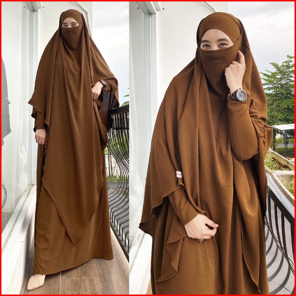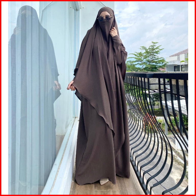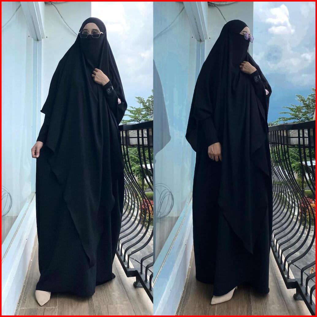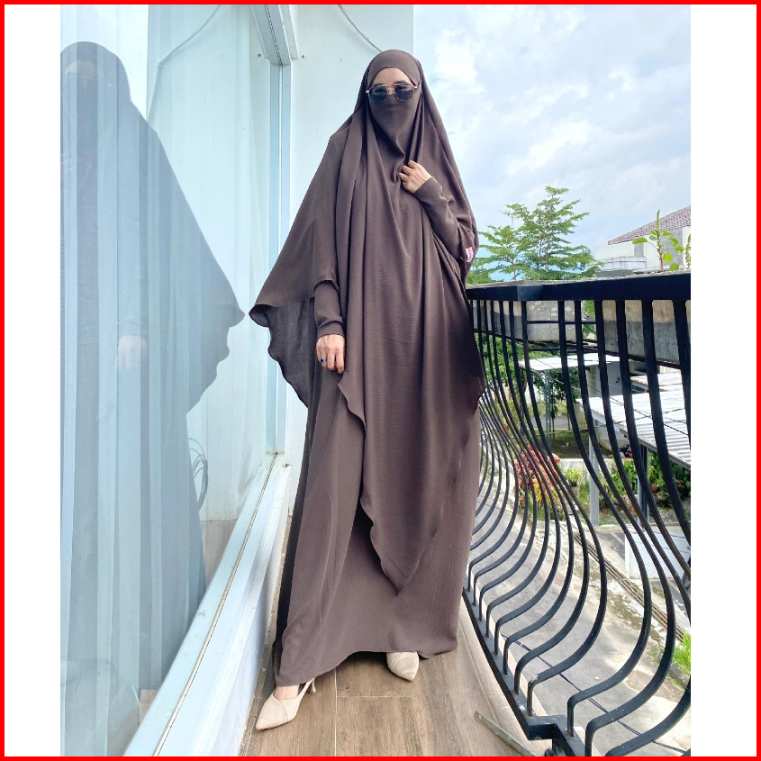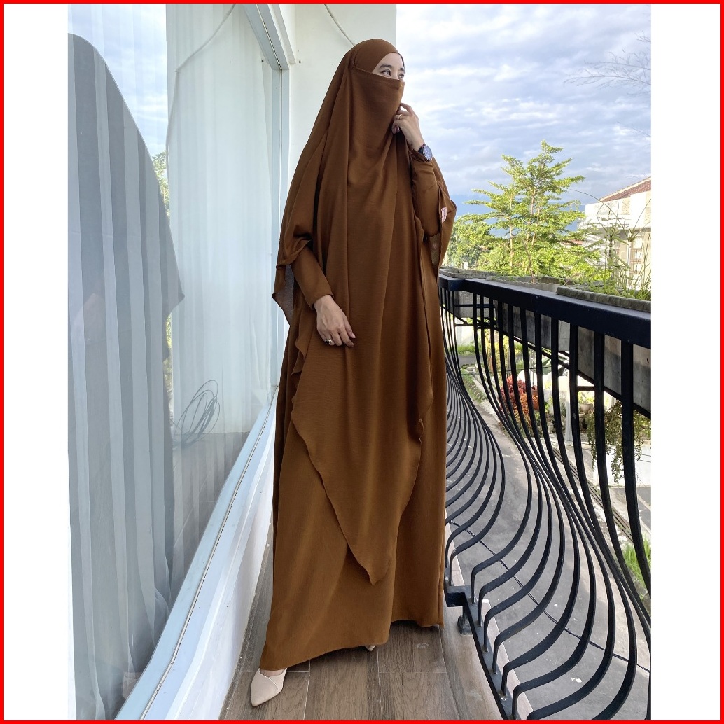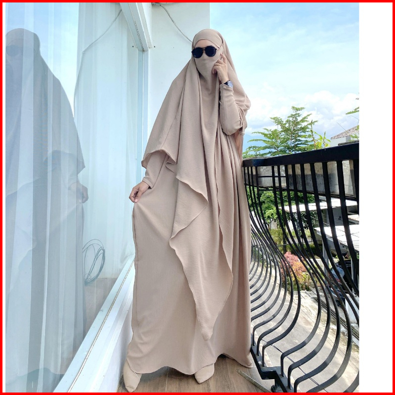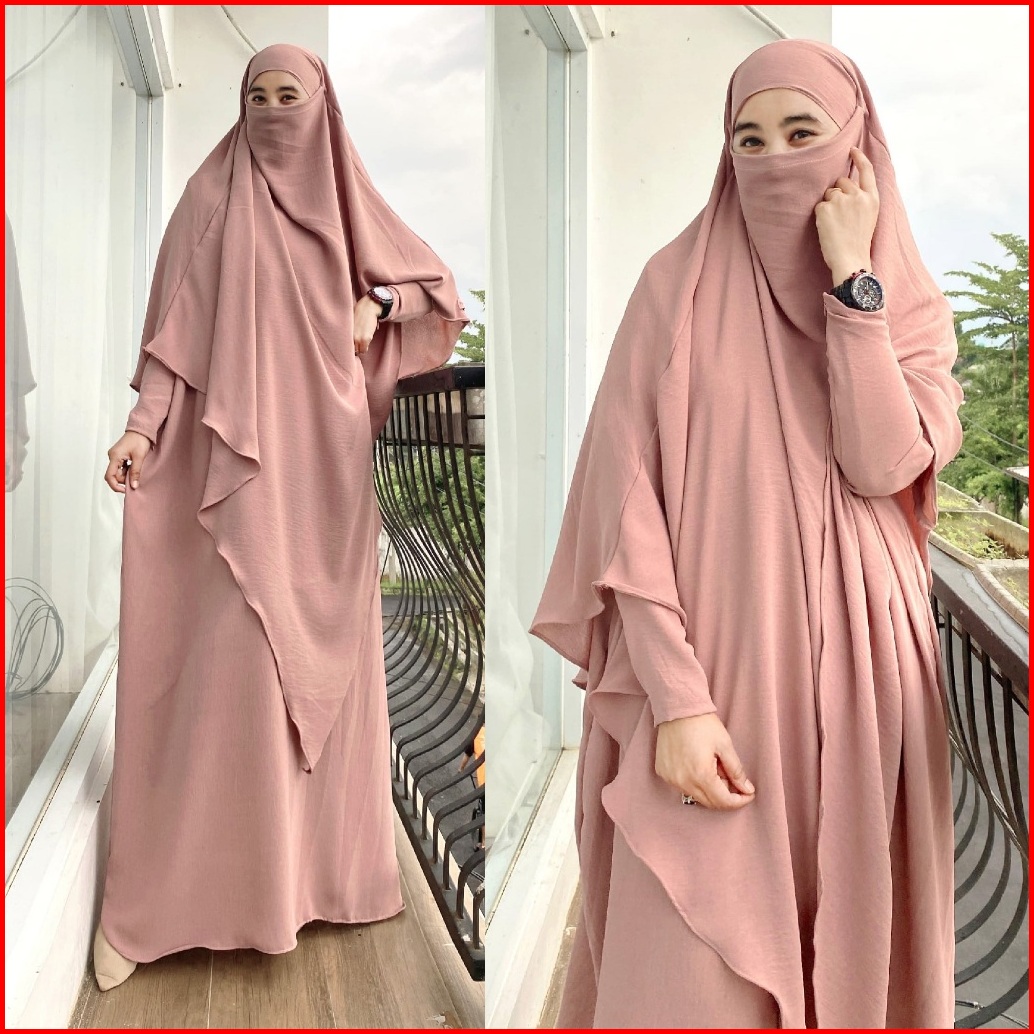 Syaqi Gamis Abaya Set French Khimar Jumbo Syari Wanita Muslim Haji Umroh Model Turki Arab Mewah Elegan Cringkle Airflow