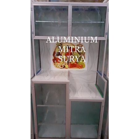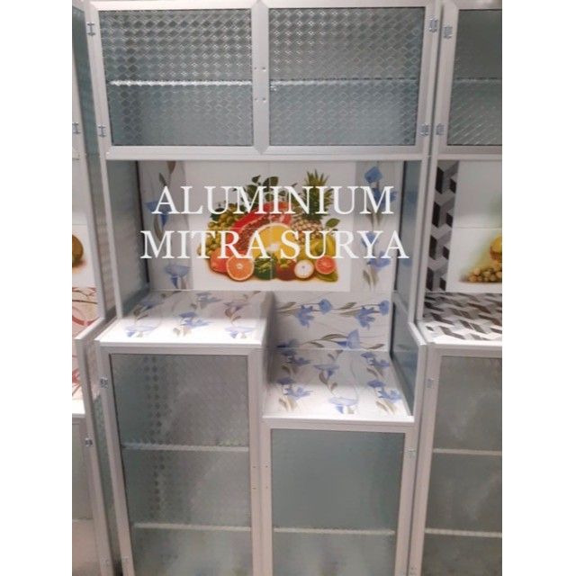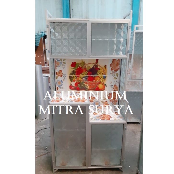 Rak Piring Almunium Keramik Kaca 2 Pintu MC (CA) Lemari Piring Aluminium Mejikom Magicom Aluminum Platseng Bawah Alas Ke