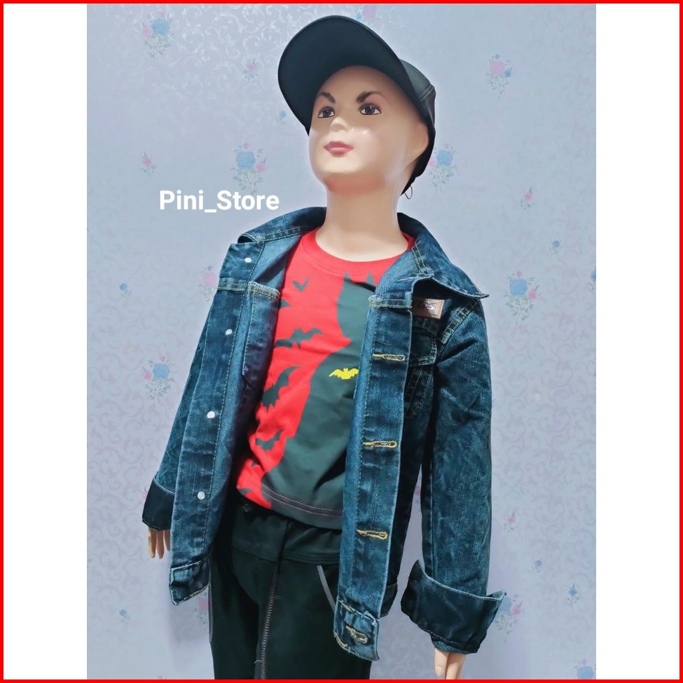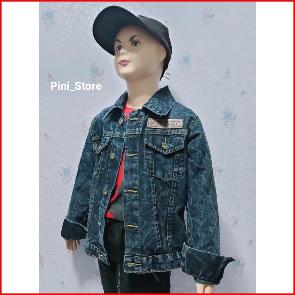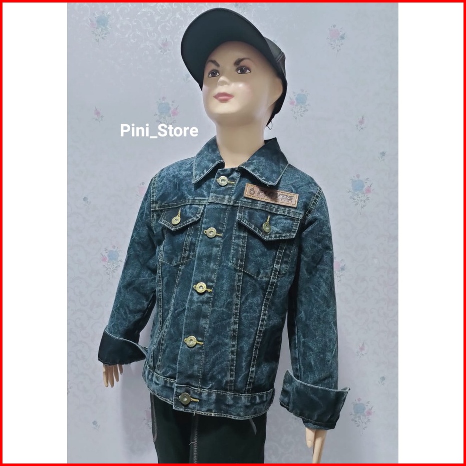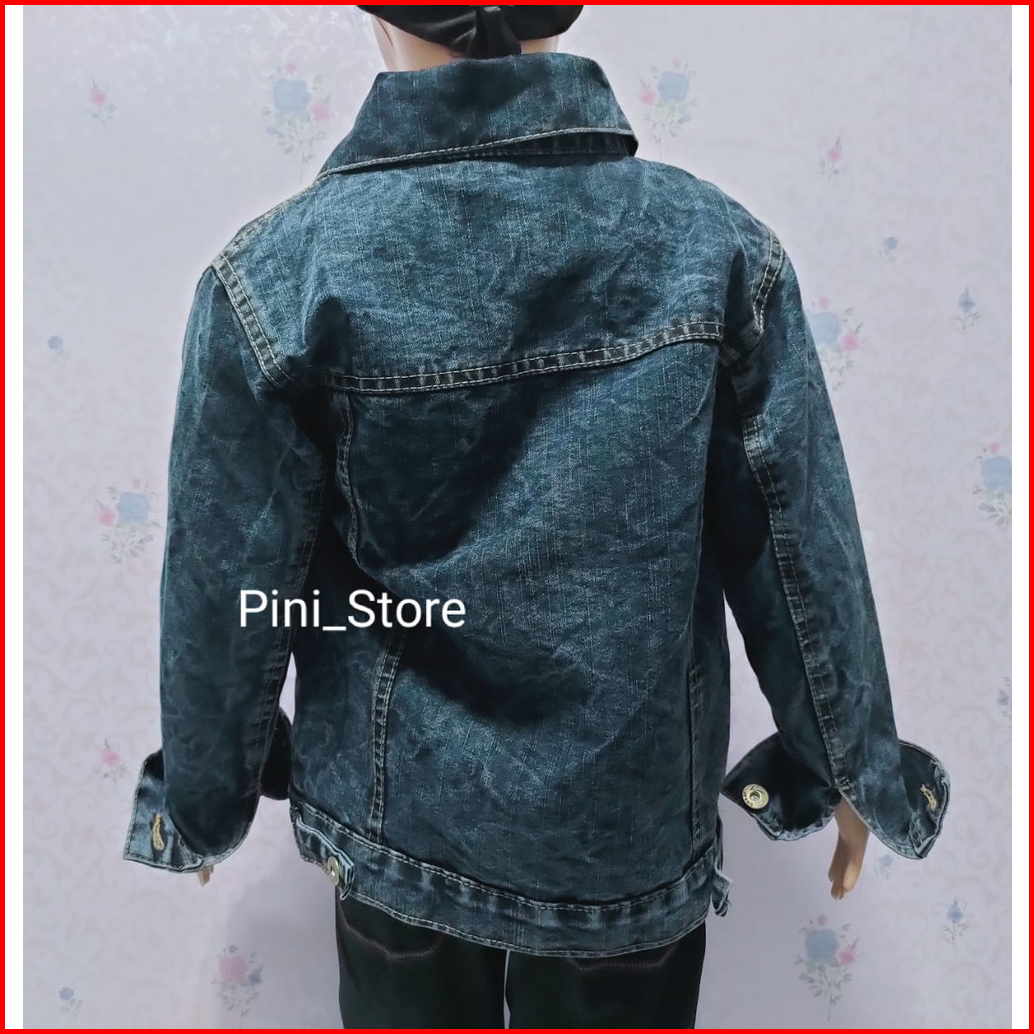 Jaket Jeans Anak Sandwash Hitam Sobek Mikky