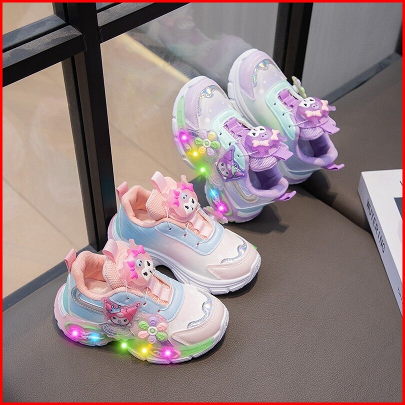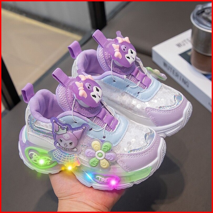 Cc-jkt Sp- K196 Sepatu Led Kuromi Timbul Squeen Samping Baling Baling Tali Serut Size 25-36