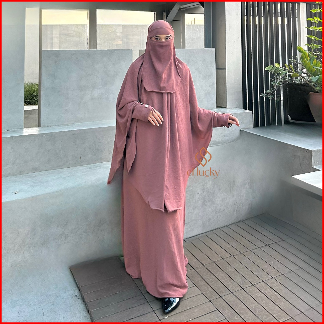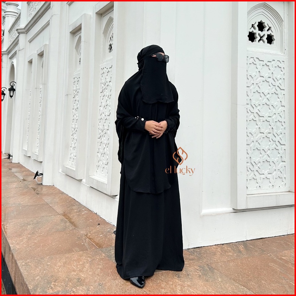 Rauda Abaya Set Gamis Syari Dengan French Khimar Panjang Niqab Bahan Crinkle