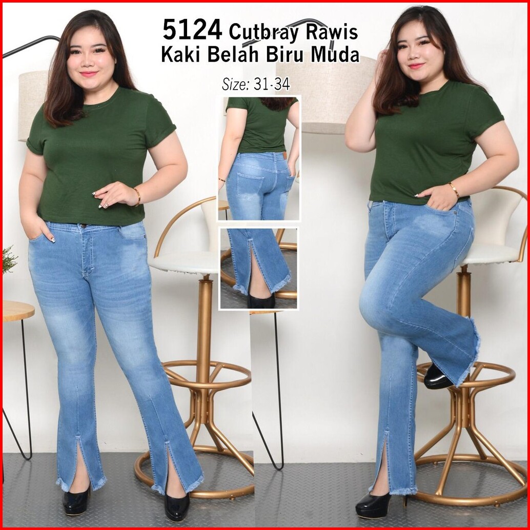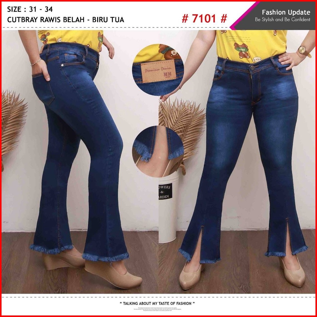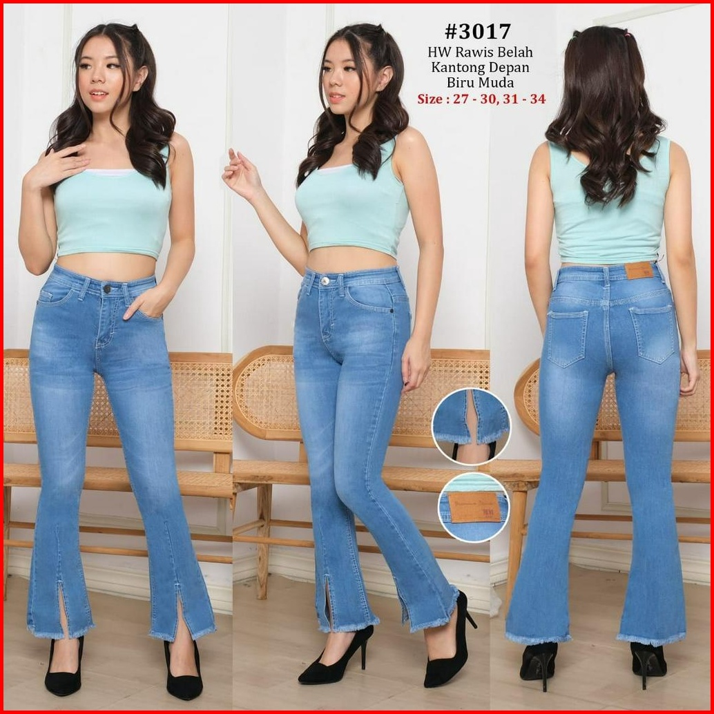 Celana Jeans Wanita Cutbray Slit Depan Rawis 27 28 29 30 31 32 33 34