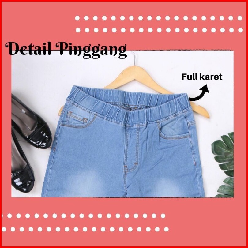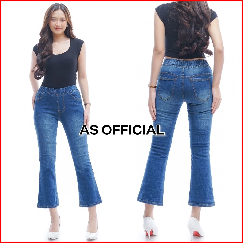 Celana Cutbray Jeans 7 9 Pinggang Karet Melar Panjang Elastis