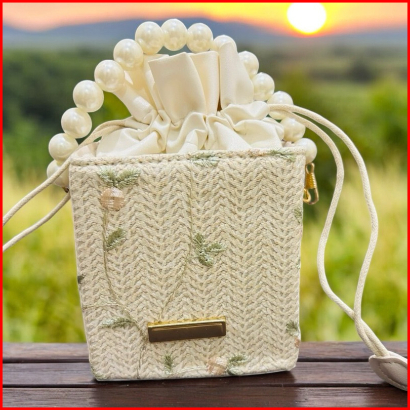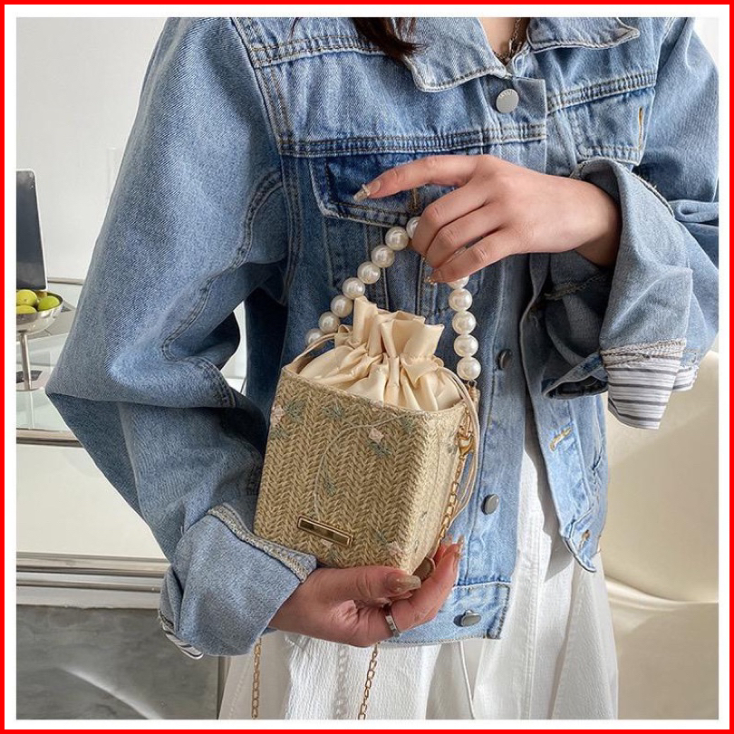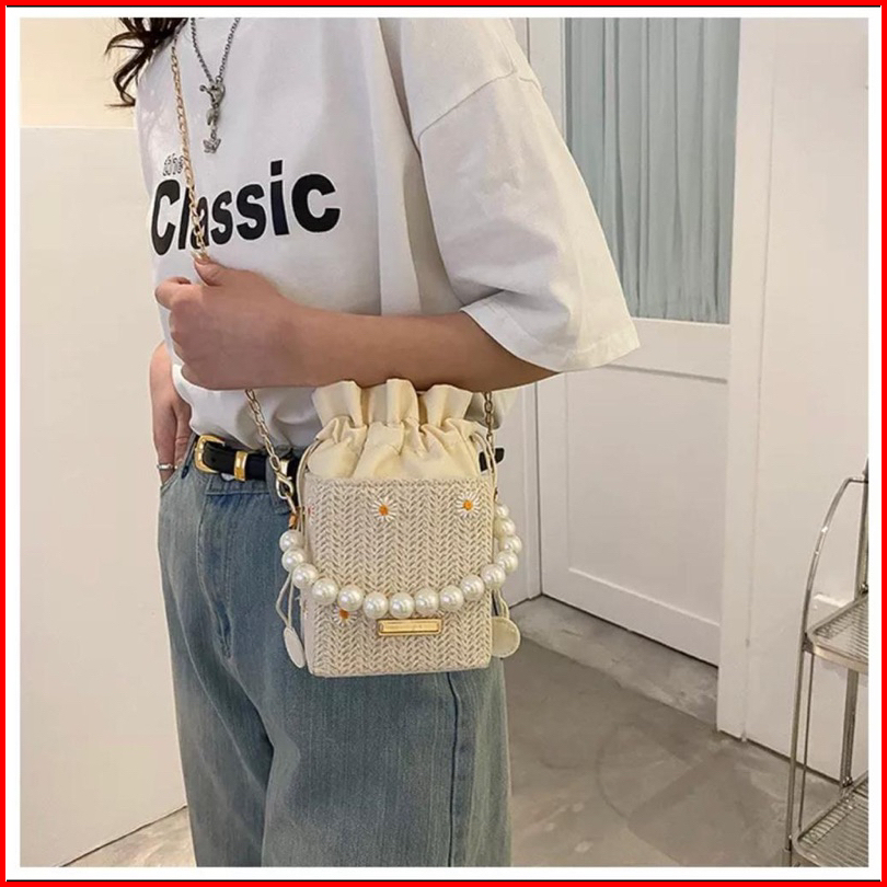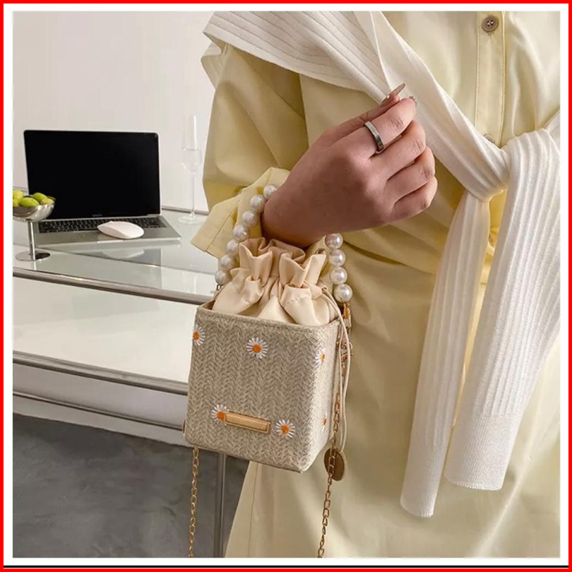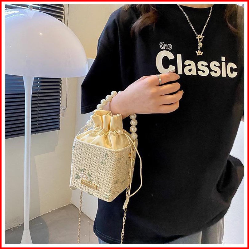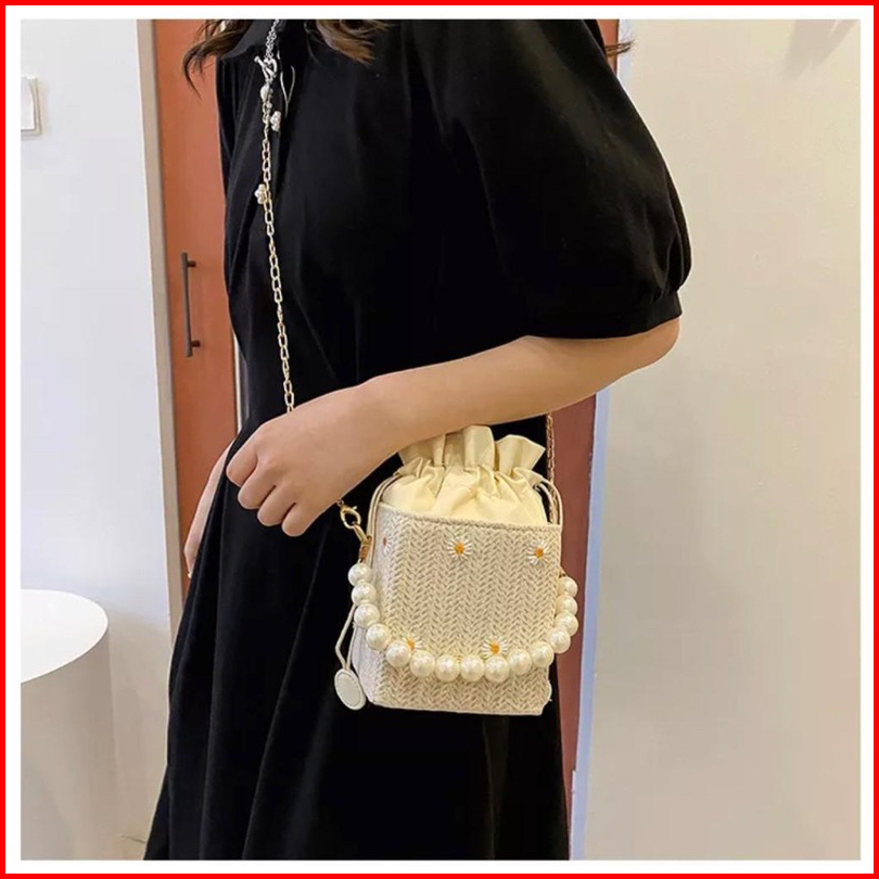 Tas Slempang Wanita Bahan Jerami Anyam Import Slingbag Fashion Model Korea Style Pear