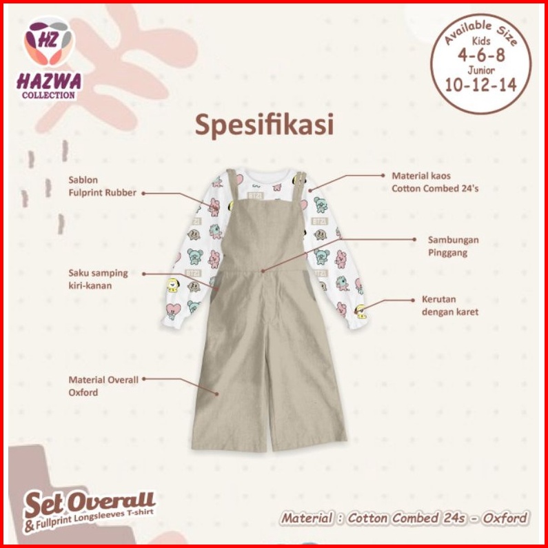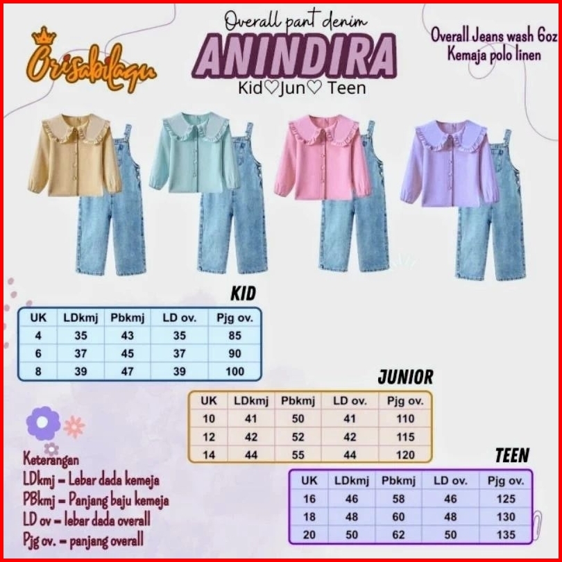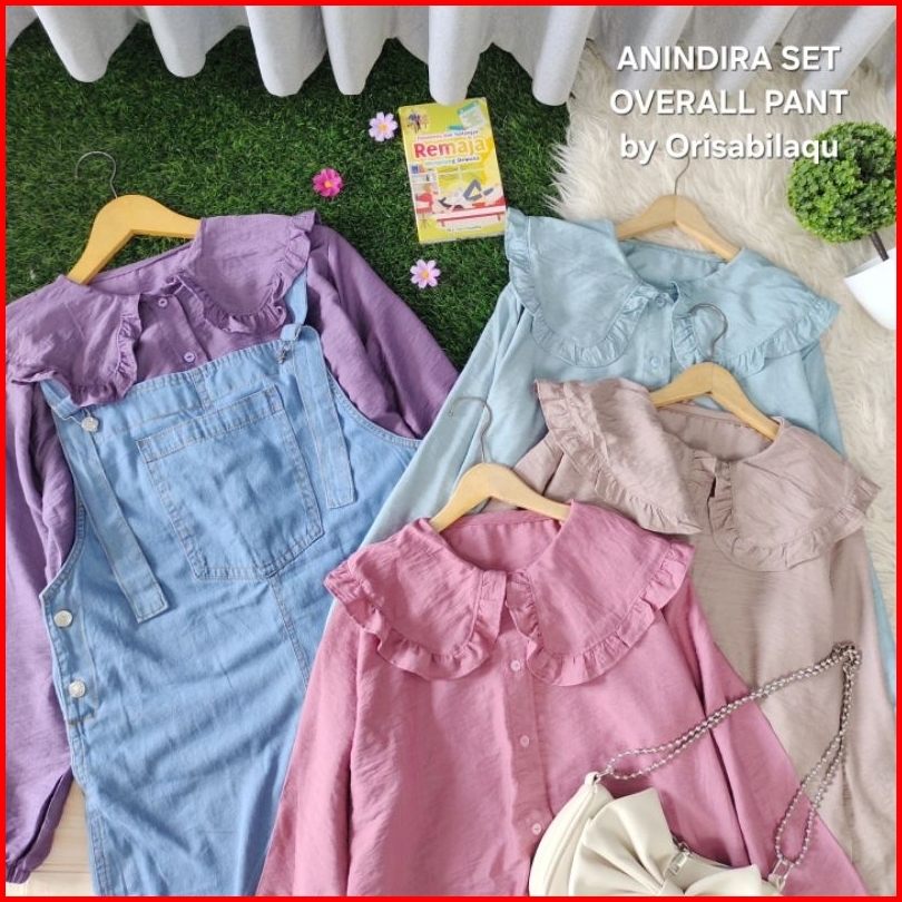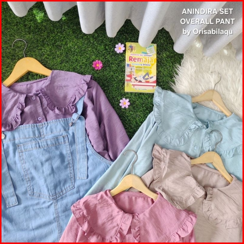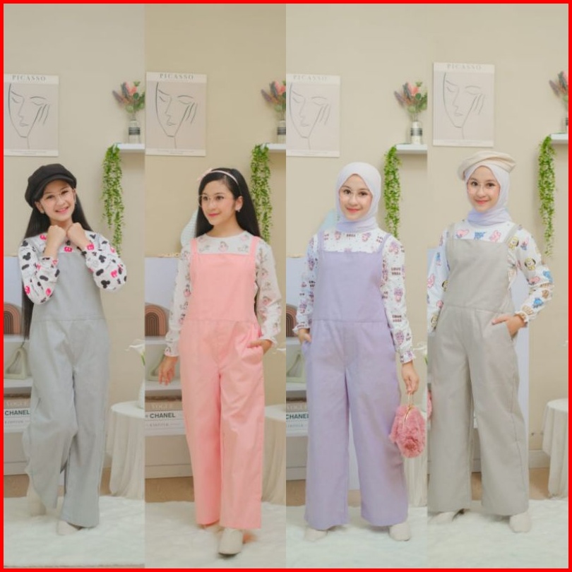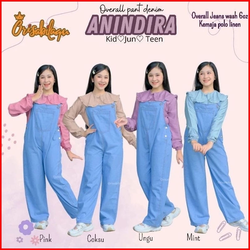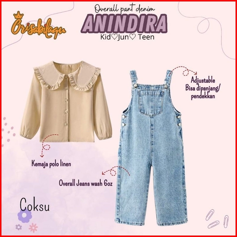 Setelan Overall Anak Junior Tanggung Kemeja Panjang By Orisabilaqu Anindira 3-14 Tahun