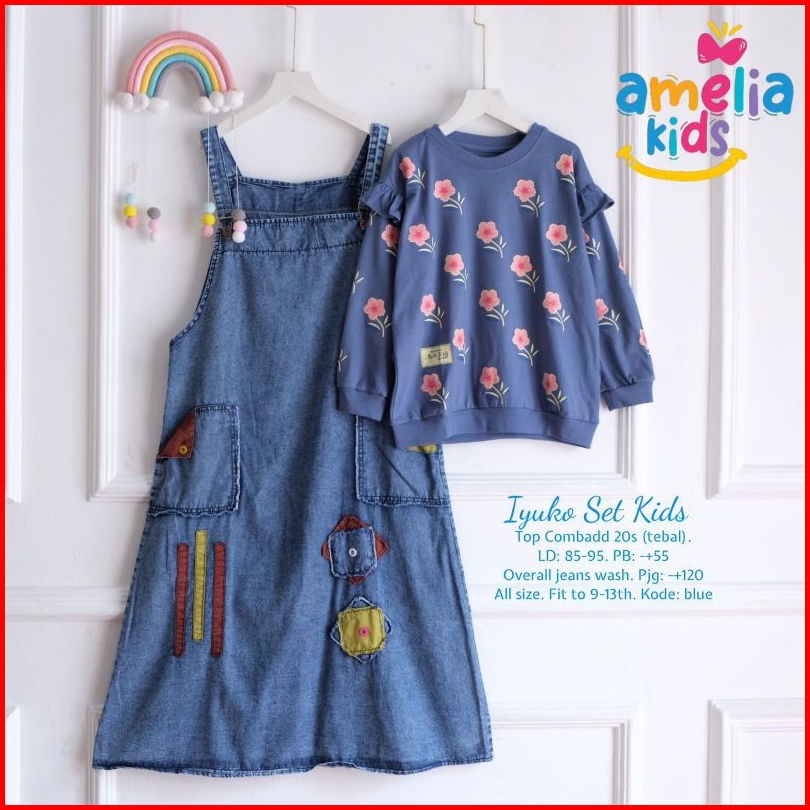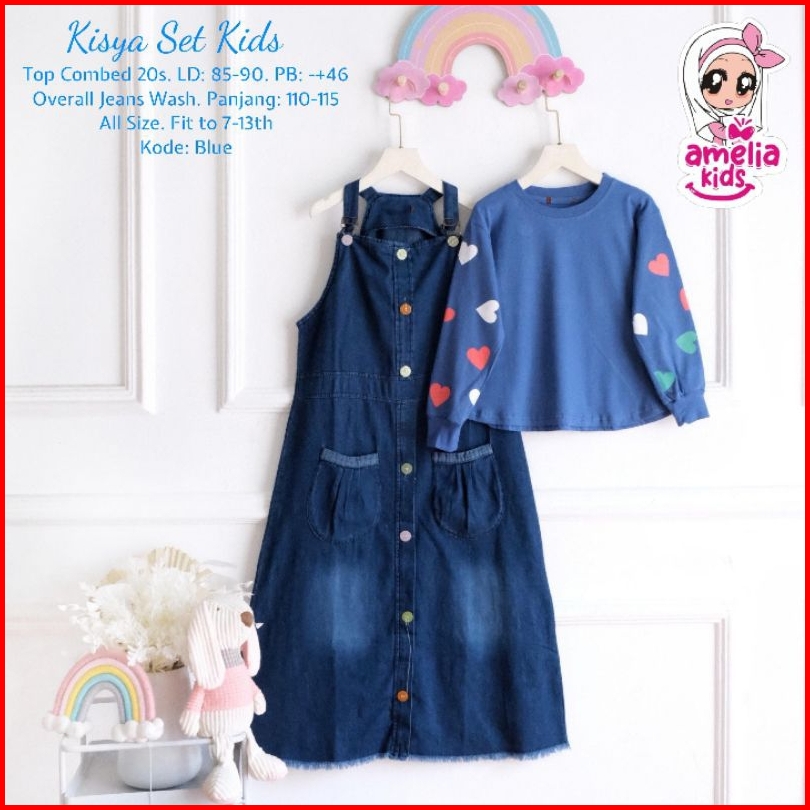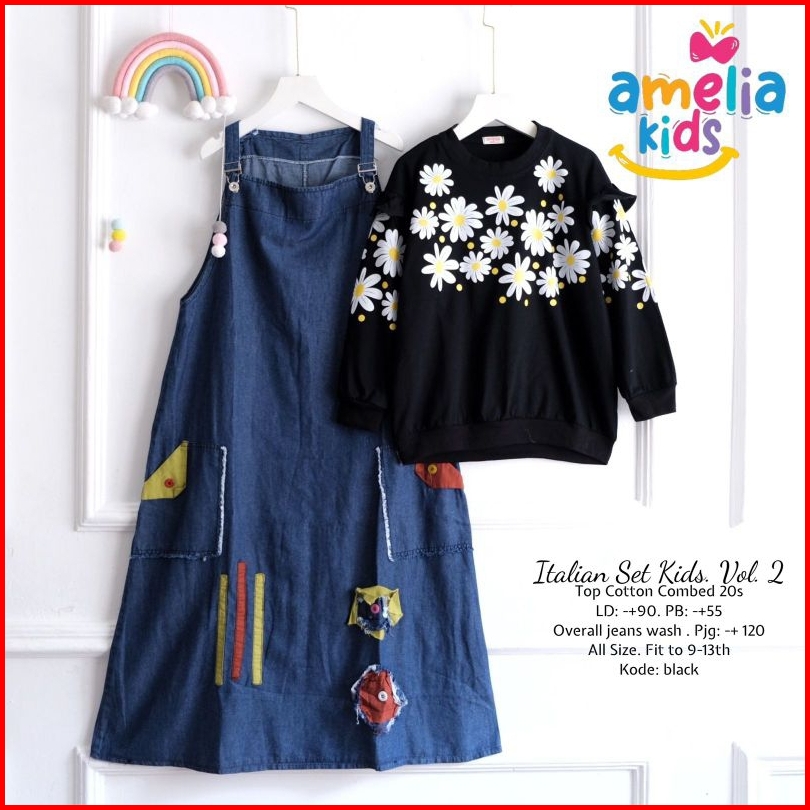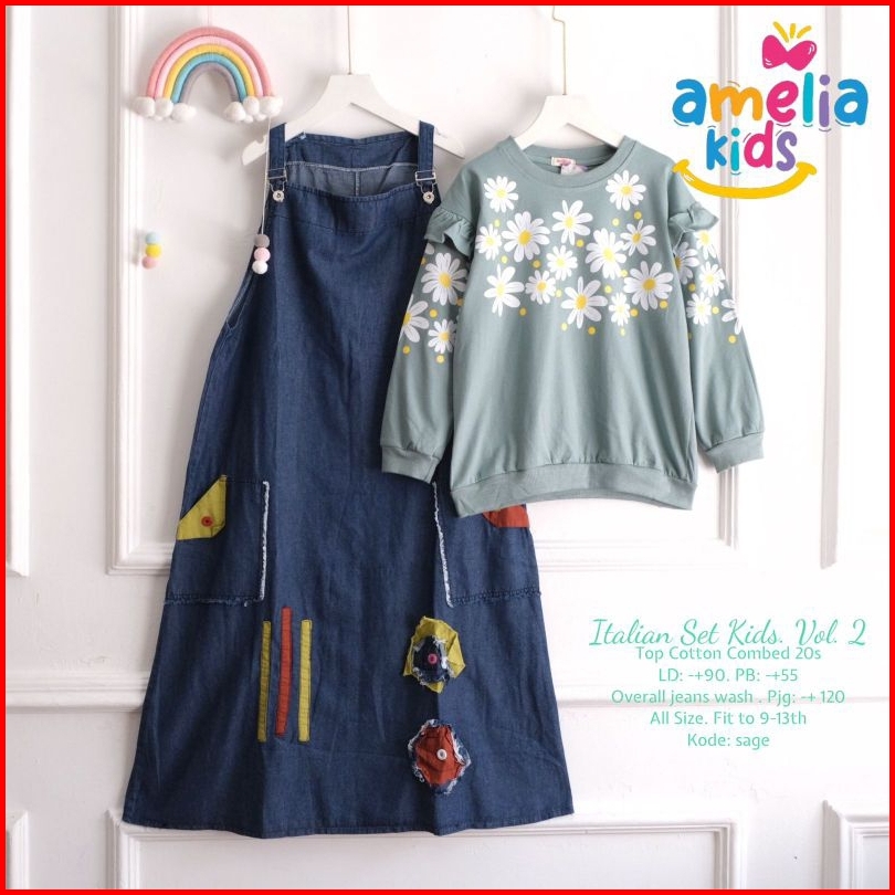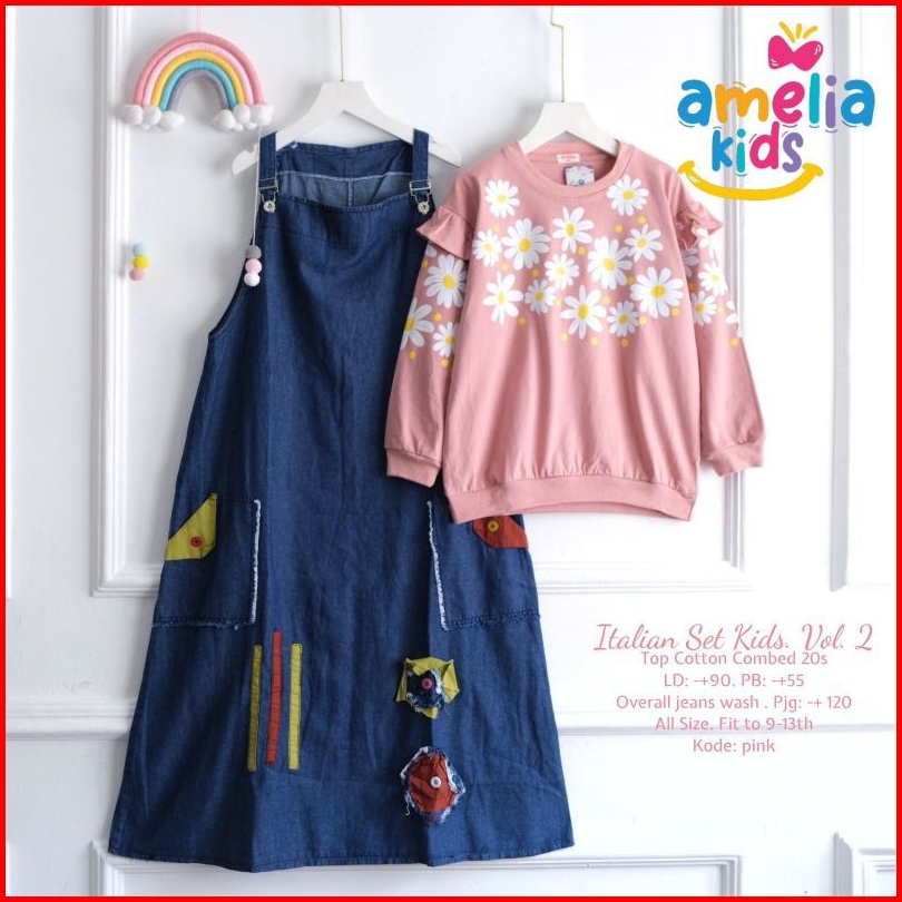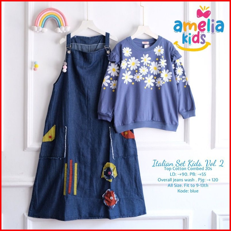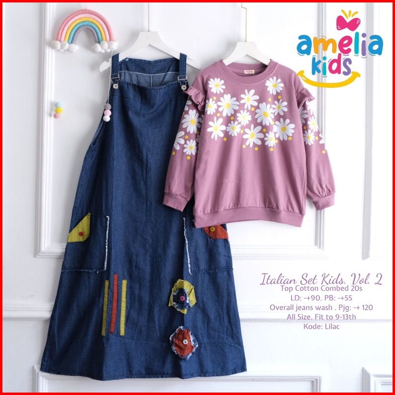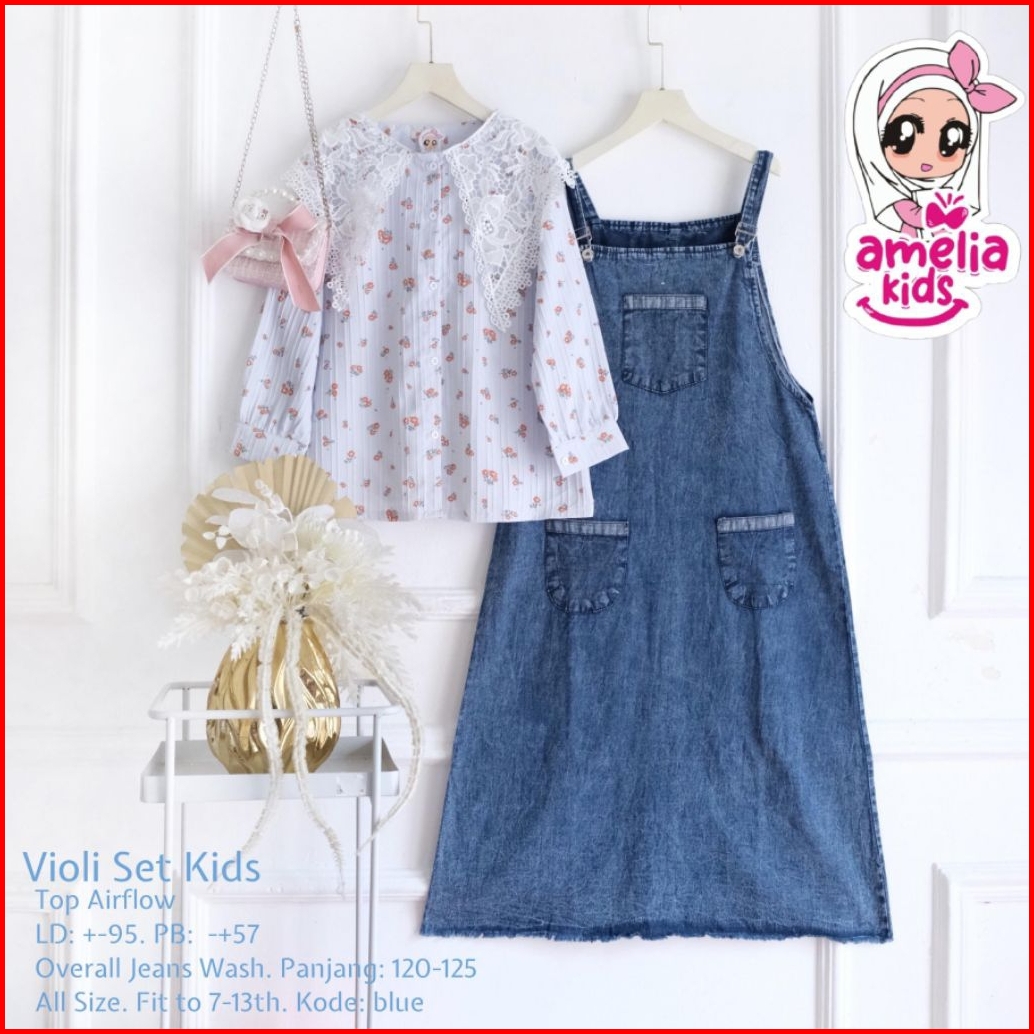 Restock Setelan Overall Jeans Anak Perempuan Fujian Italian Pungky Violi Set Kids Original Amelia Kids
