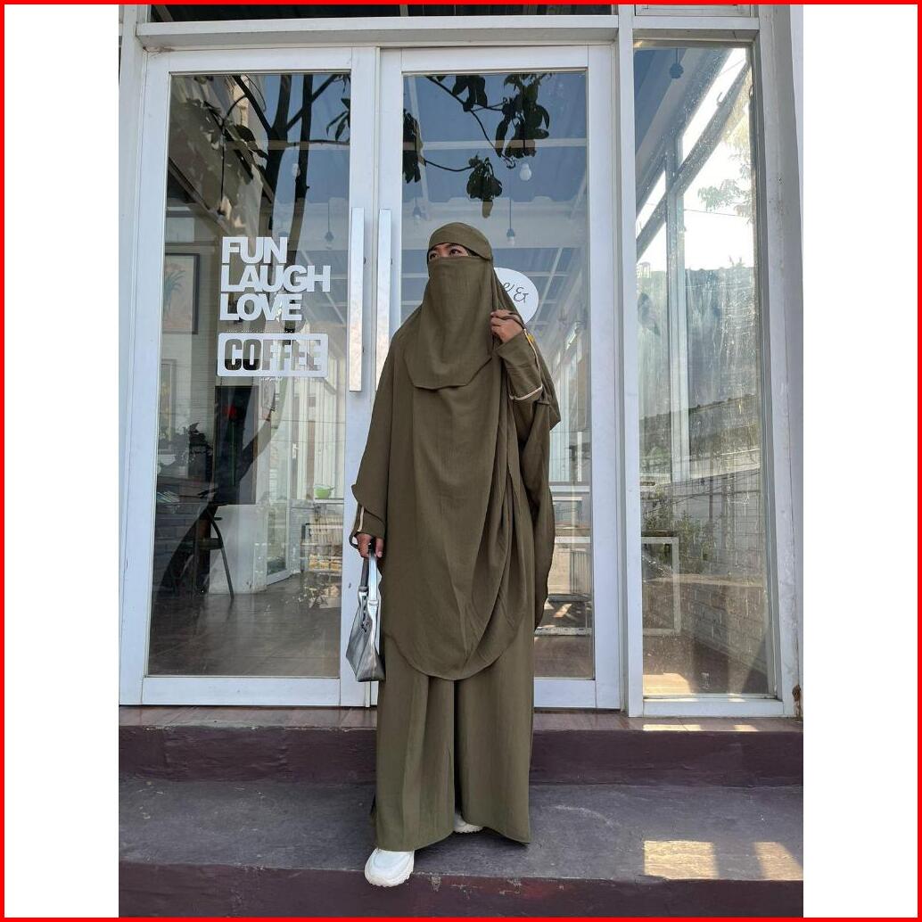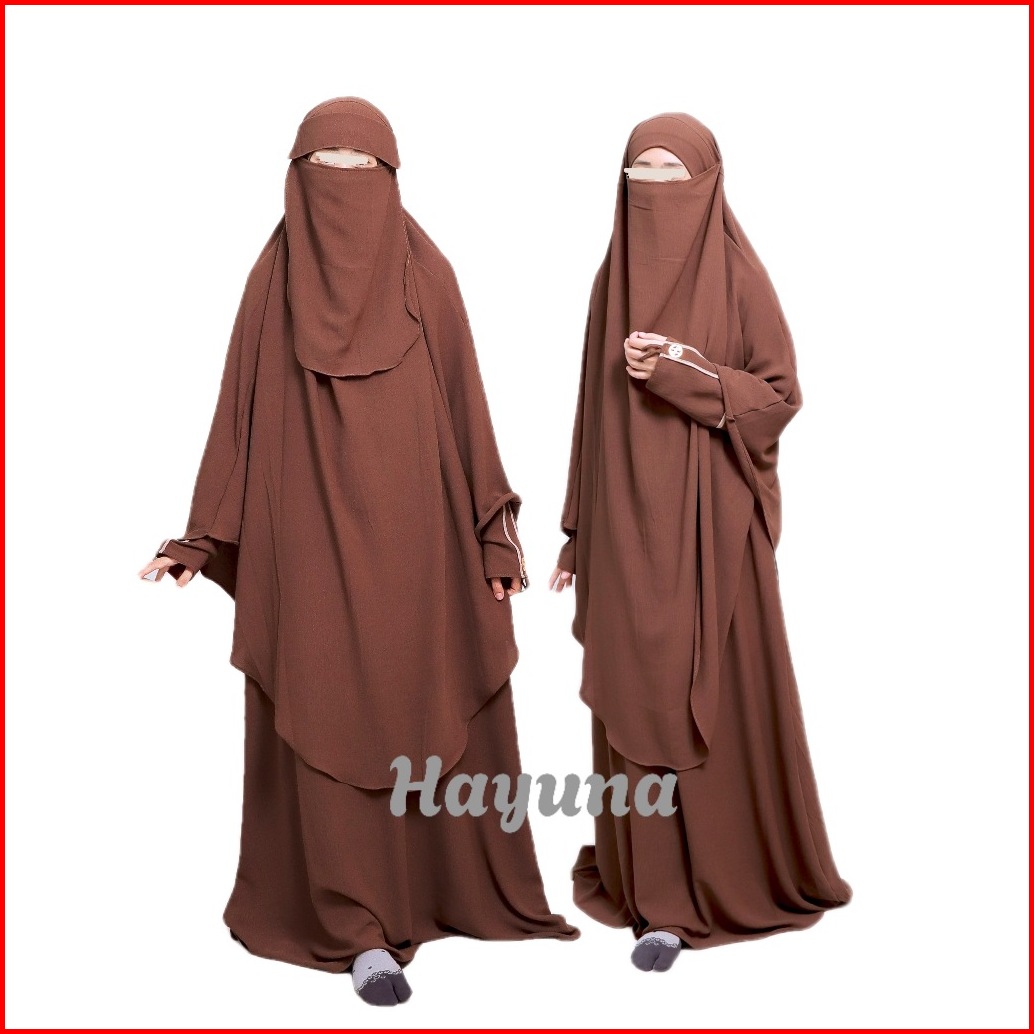Hayuna - Gamis Kirana Satu Set Franch Khimar Jumbo Kerudung Jumbo Cadar Bandana Wanita Umroh