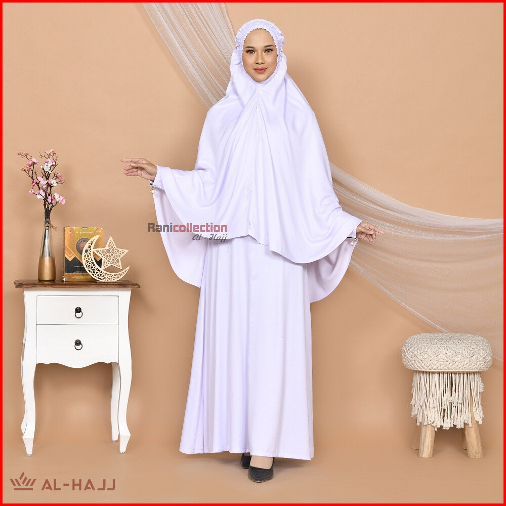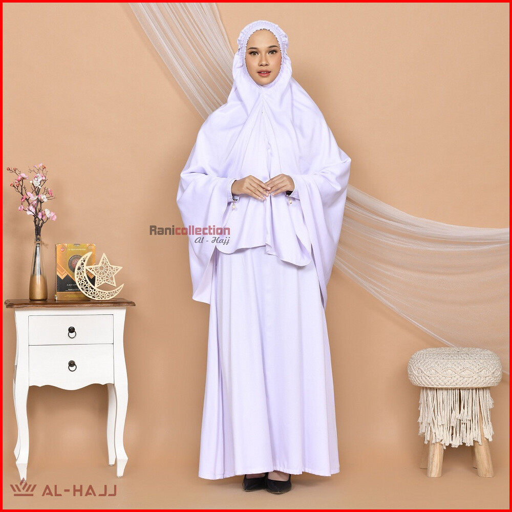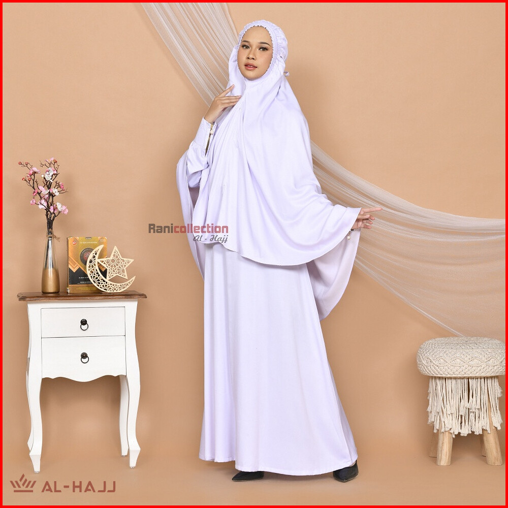Al Hajj Gamis Putih Syari Set Bergo Bahan Baju Umroh Haji Muslim Wanita Busana Lebaran Bergo Saku