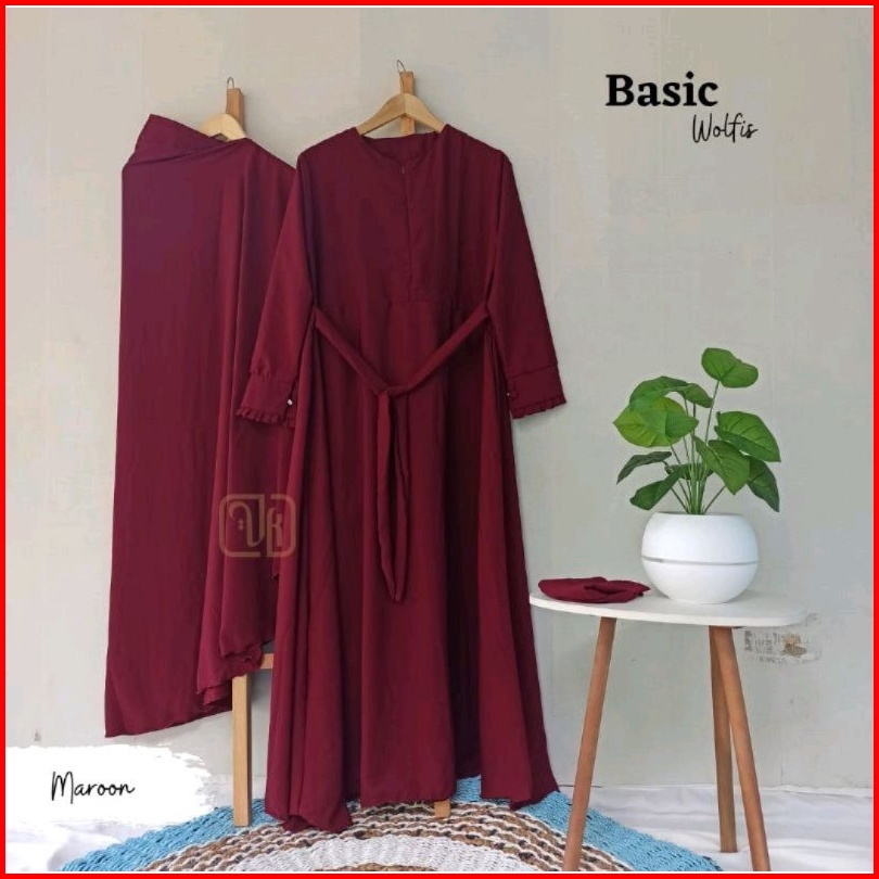Gamis Polos Set Syari Free Cadar Bahan Wolfis
