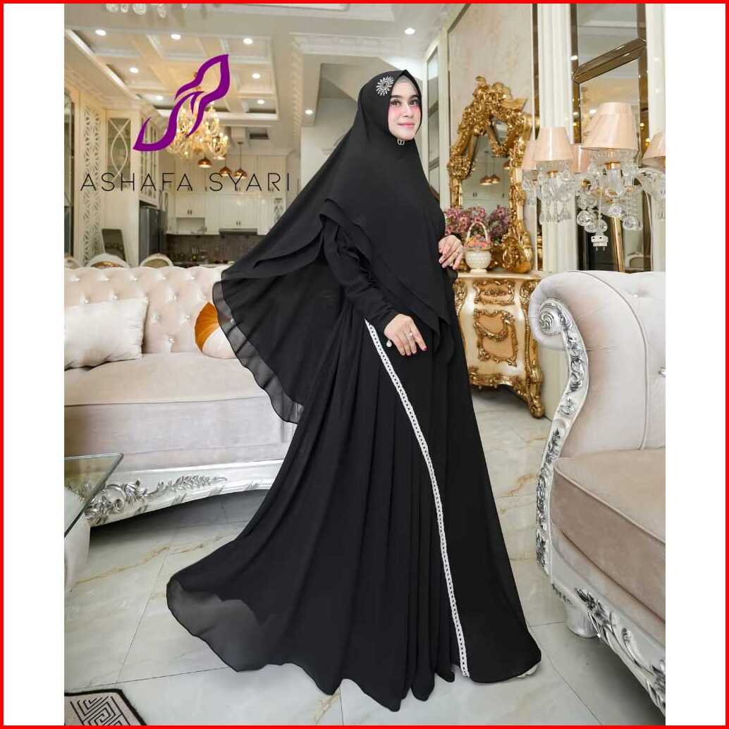 Ashafa Syari Akifah Gamis Umroh Haji Putih Hitam Jumbo Khimar Ceruty