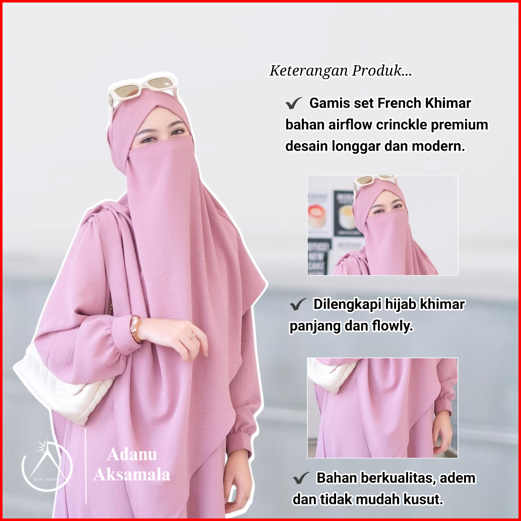 Gamis French Khimar Syar I Haji Umroh Crinkle Airflow Premium Seet Hijab Cadar Busui Friendly