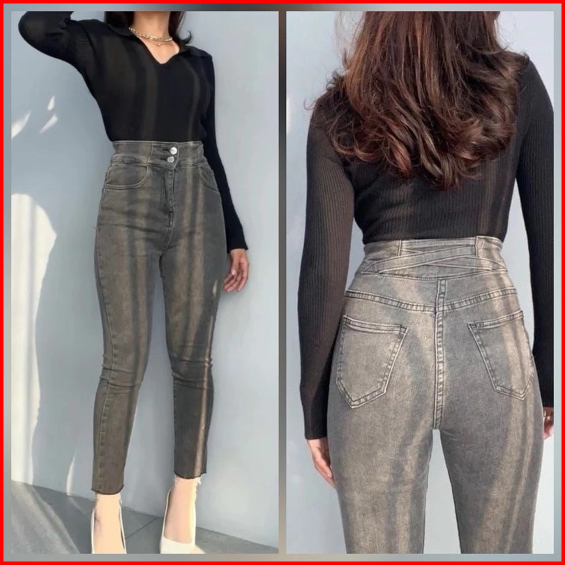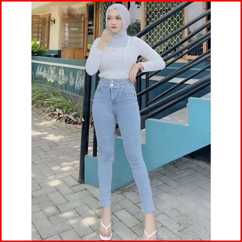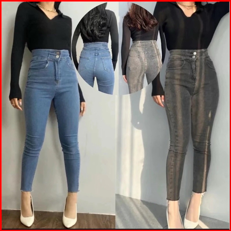 Iyu.id - Celana Jeans Skinny J32 Highwaist Strech Celana Pensil Pinggang Silang Wanita Terbaru