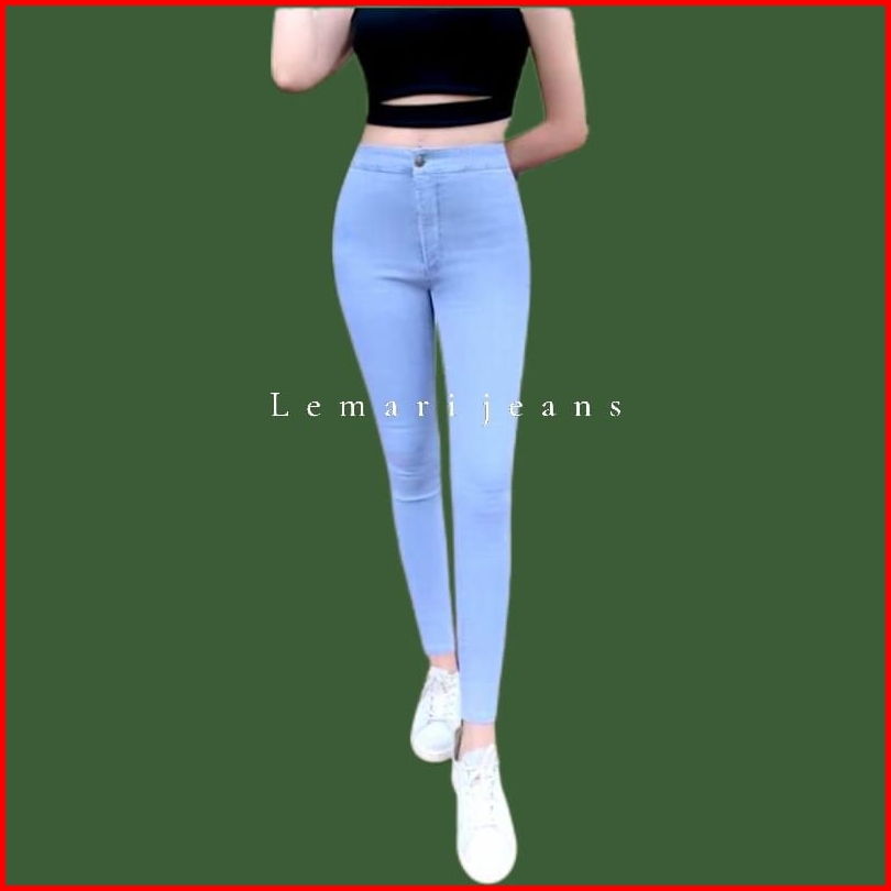 Super Highwaist 27-34 Jeans Pensil Stretch Kekinian Panjang Wanita Melar Biru Garment Kantong Skinny Jeans Celana Highwa