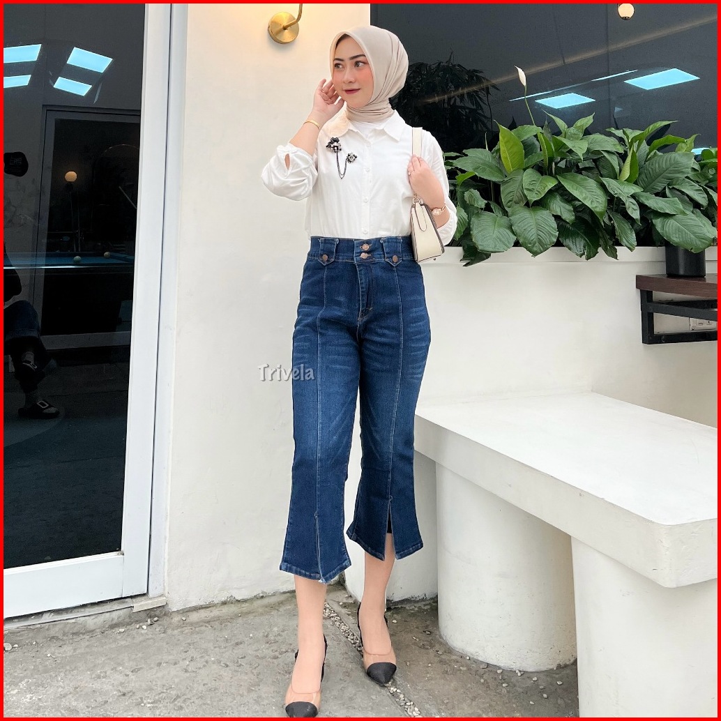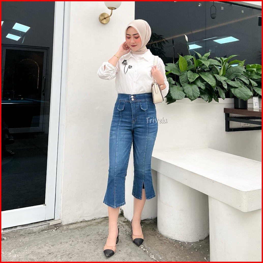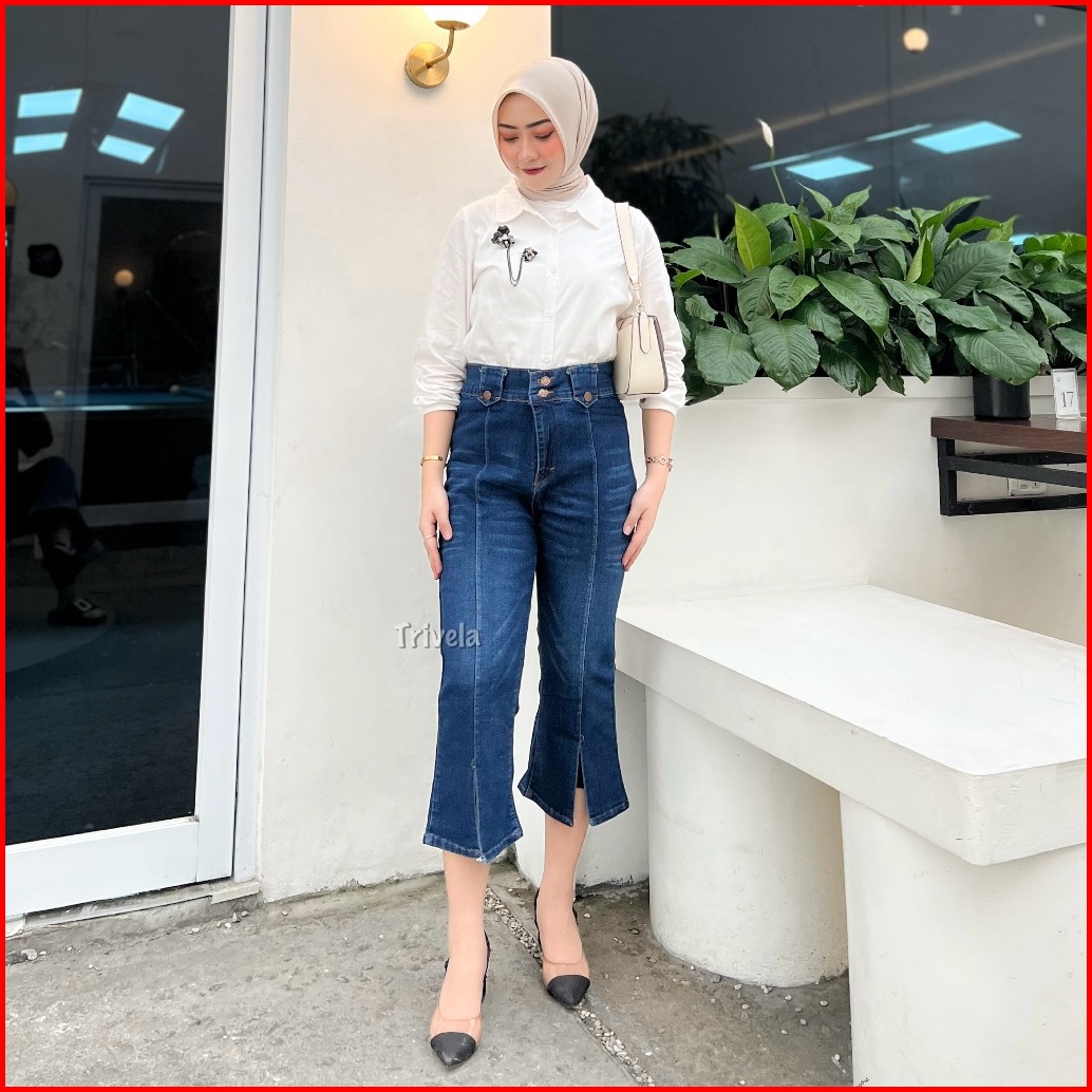 Trivela - Celana Jeans Cutbray 7 8 Slit - Slit 7 8 Cutbray Stretch - Azelyn