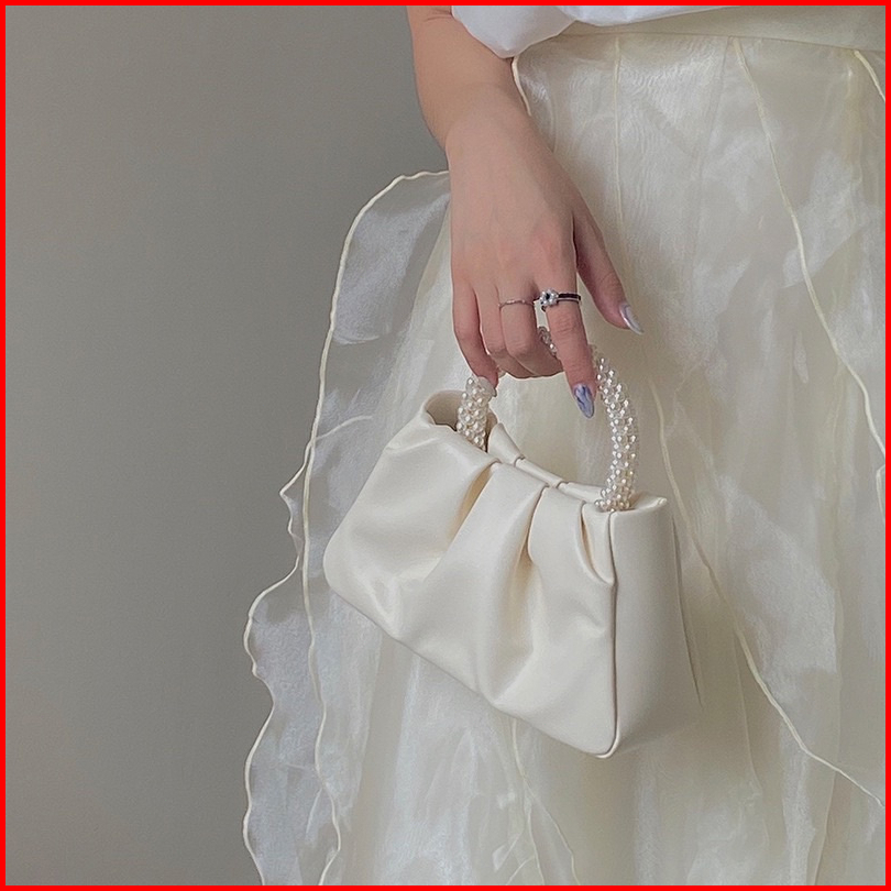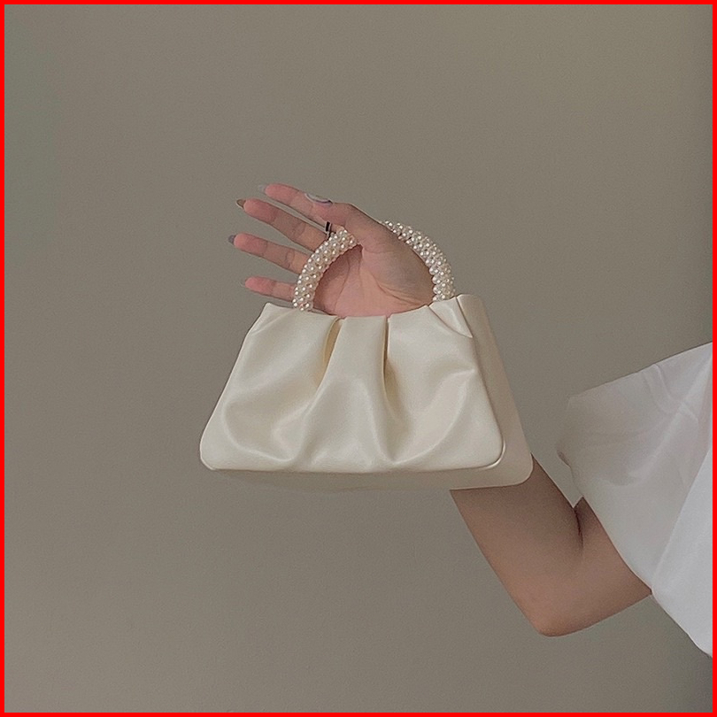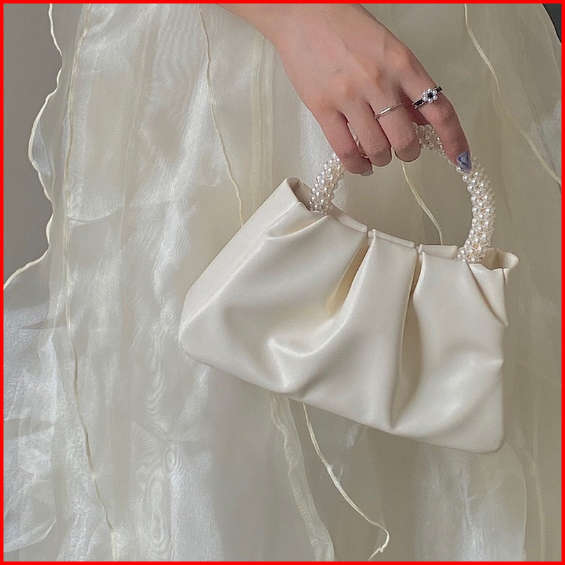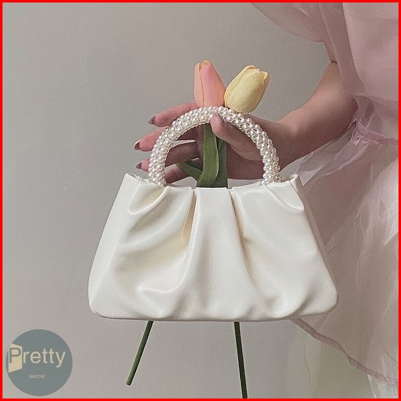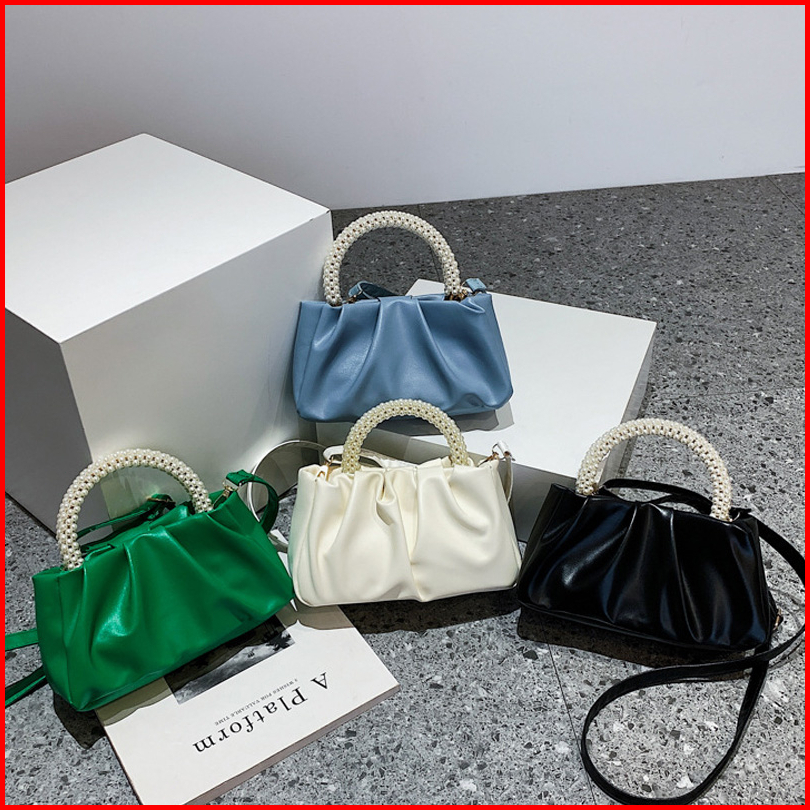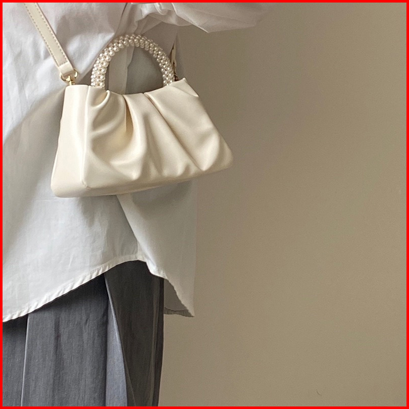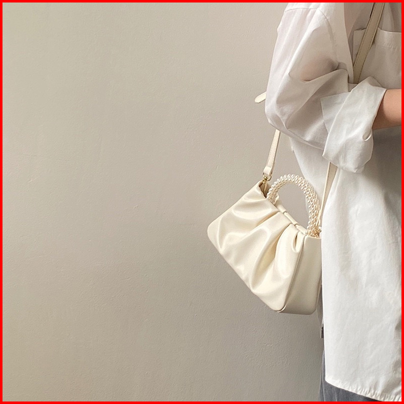 Tas Selempang Kulit Wanita Korea Tas Selempang Mutiara Kecil Gadis Tas Mini Satchel Keriput Tas Selempang Tas Selempang