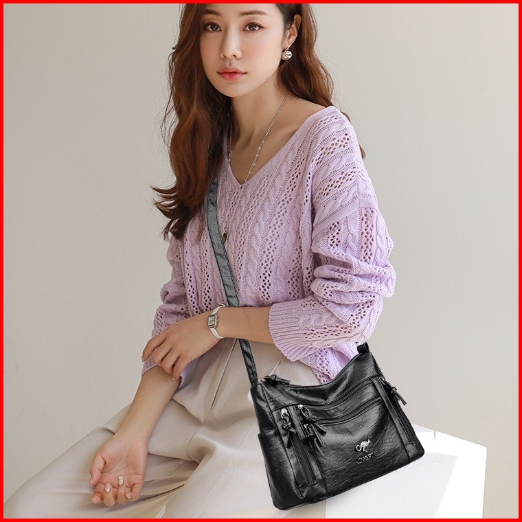 Tas Selempang Wanita Jingpin Ta691b5 Branded Kulit Hitam Sunny Cewek Simple Batam Sling Bag Korea Remaja Kekinian Fashio