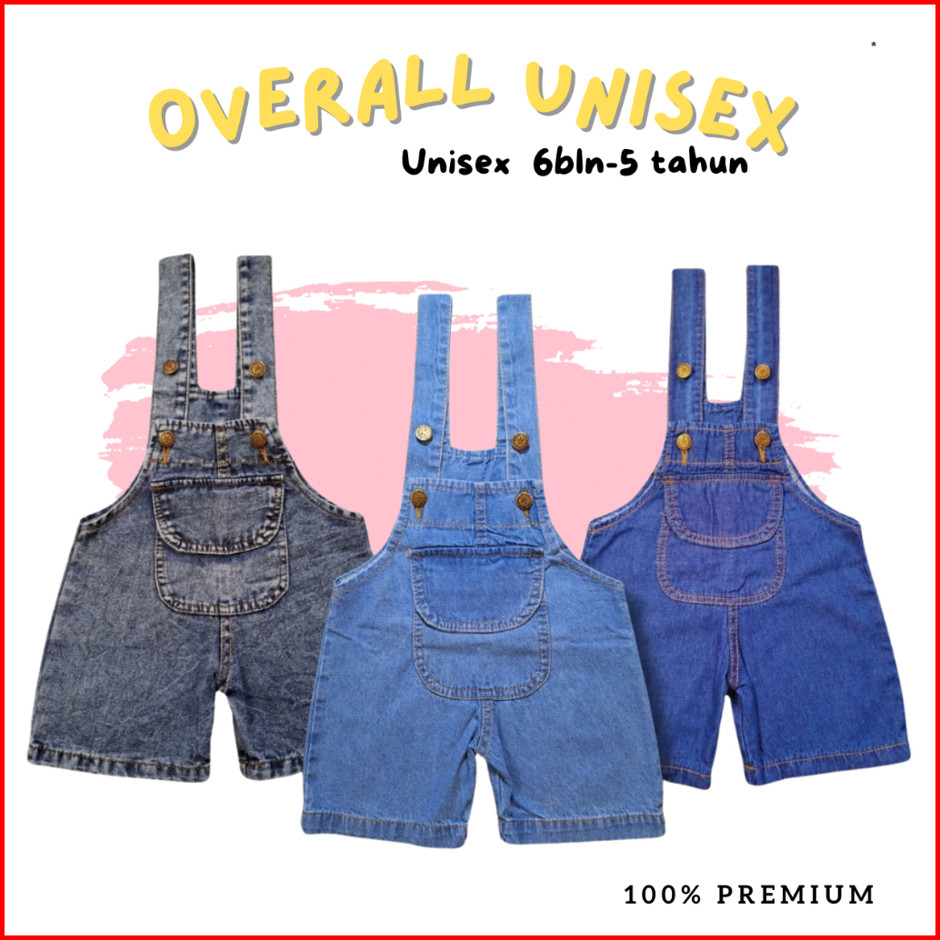 Baju Kodok Overall Jeans Pendek Anak Overall Bayi 1 Tahun - 5 Tahun Unisex