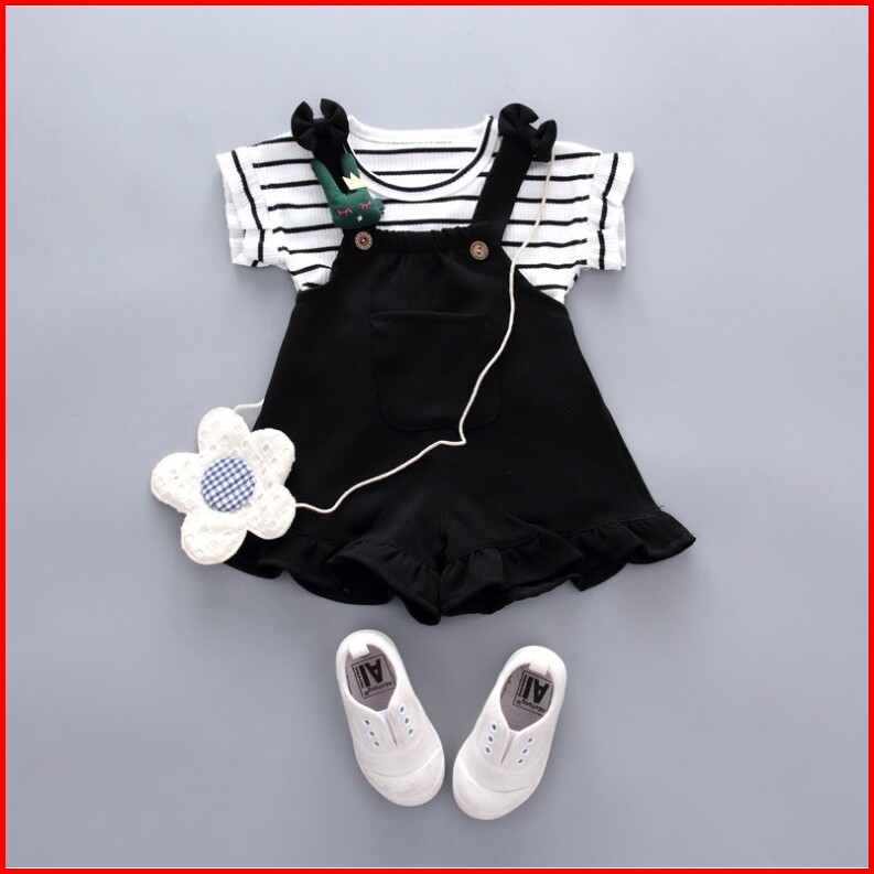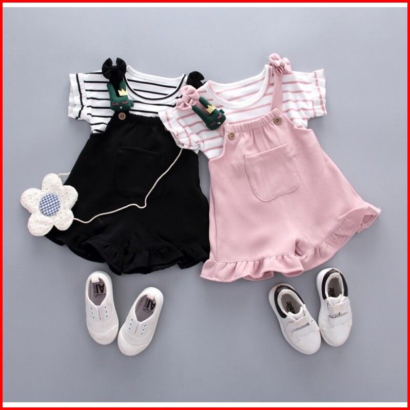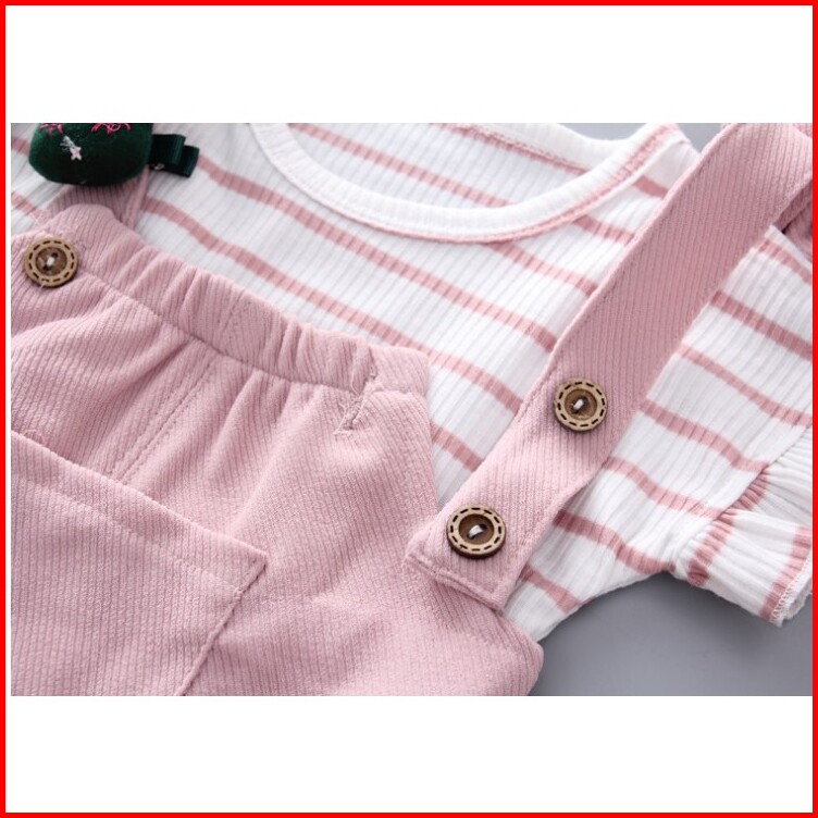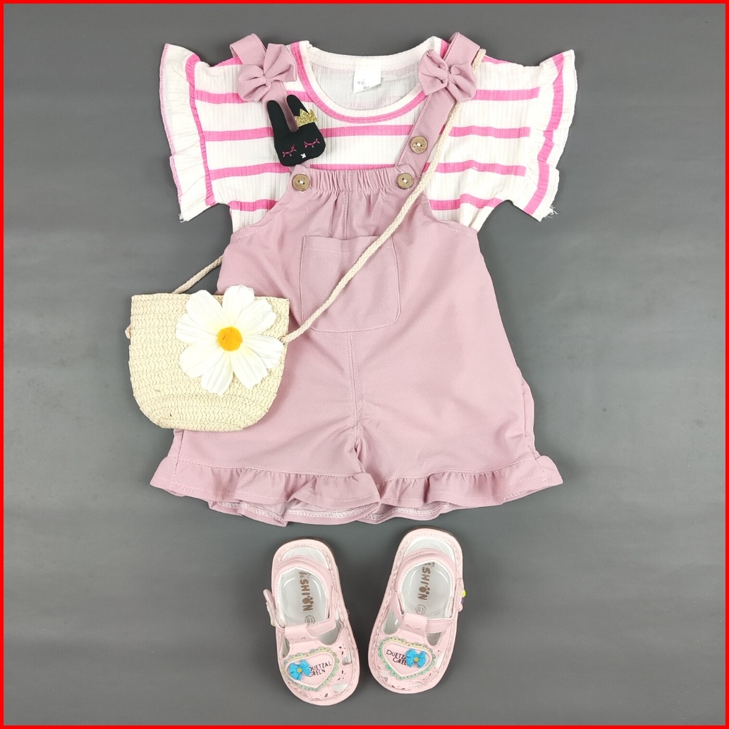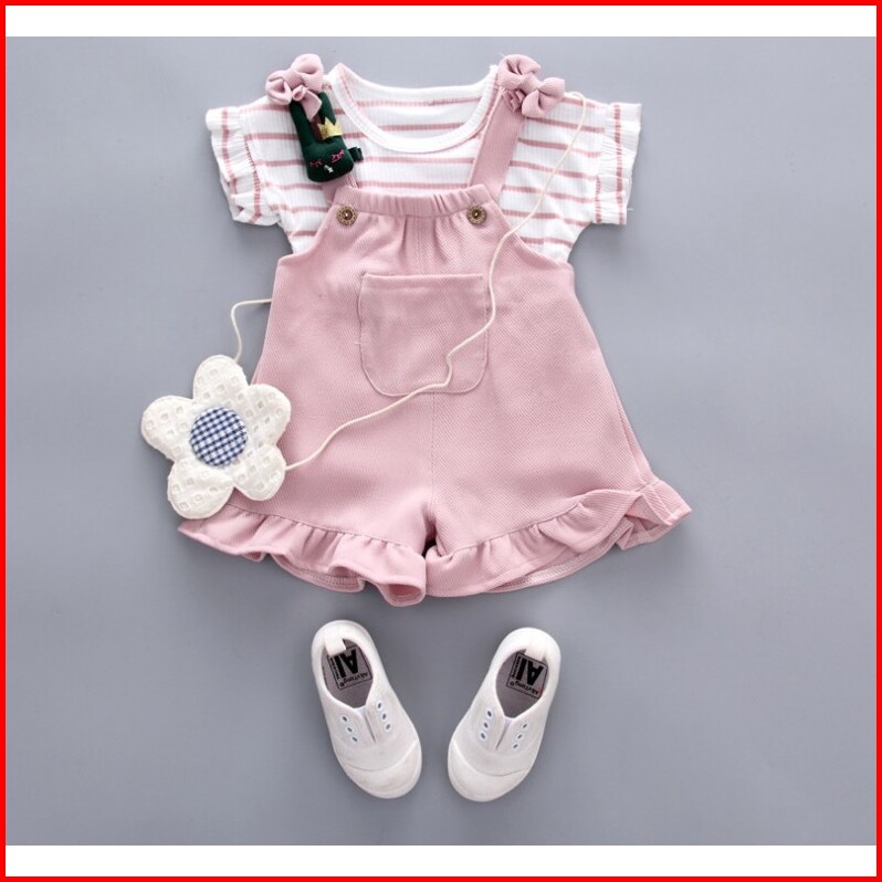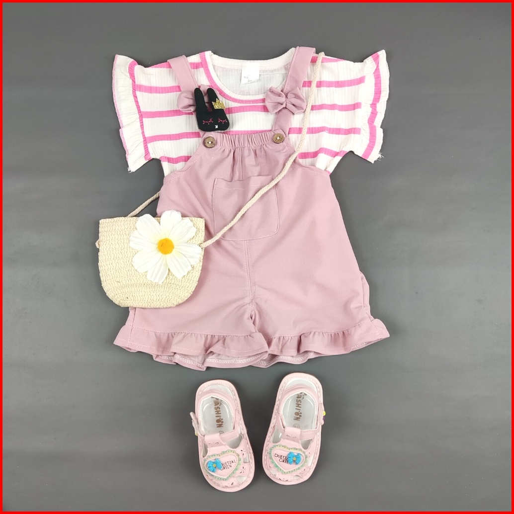 Sks20- Setelan Kaos Dan Overall Anak Baju Setelan Anak Perempuan Motif Stripes