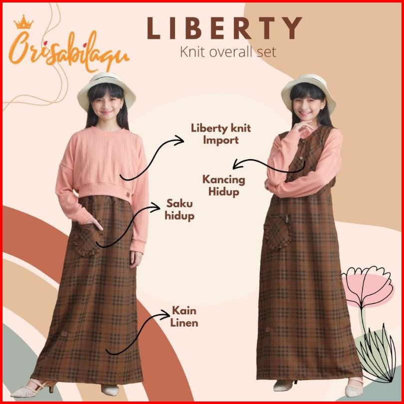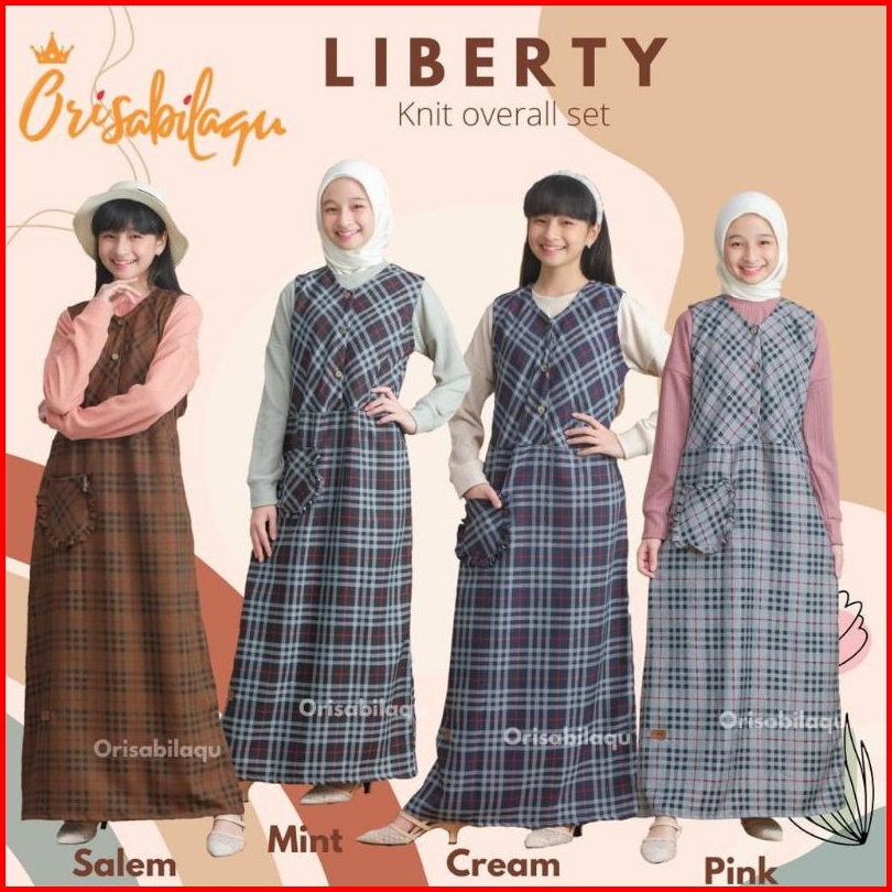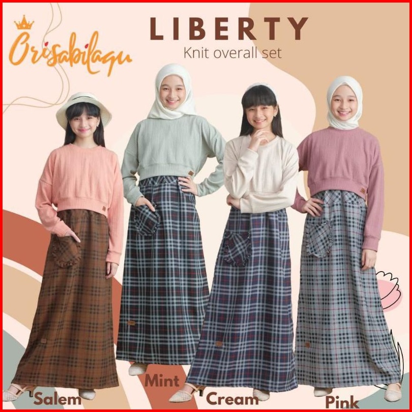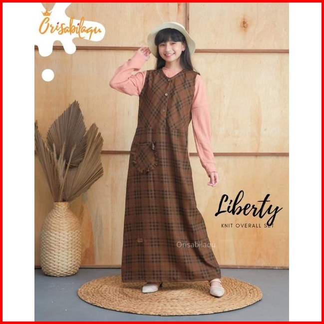 6-14t Liberty Knit Overall Set By Orisabilaqu Setelan Lengan Panjang Knit Linen Overall Anak Cewek Tartan Set