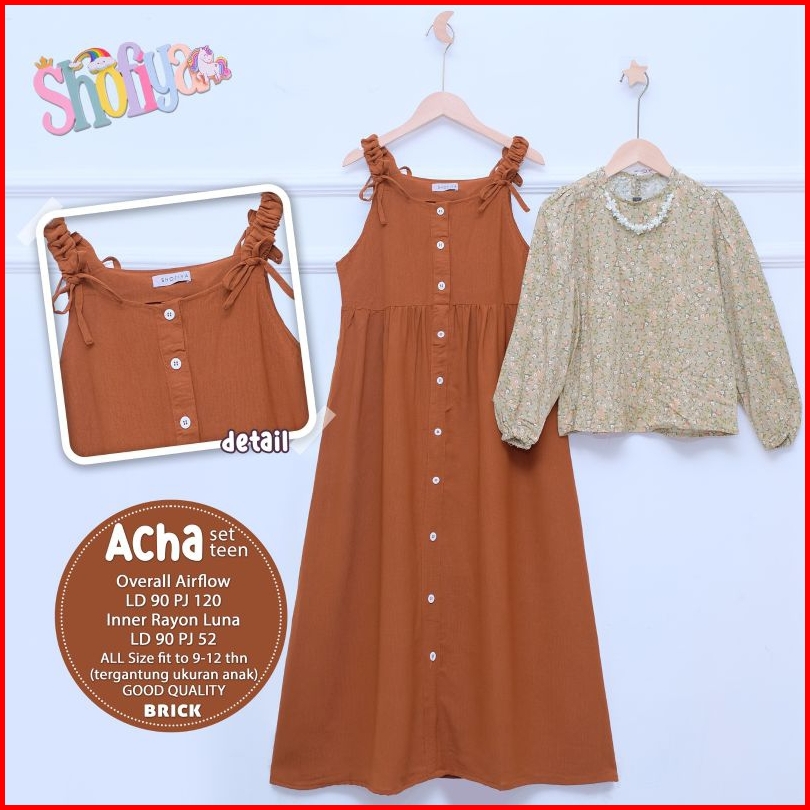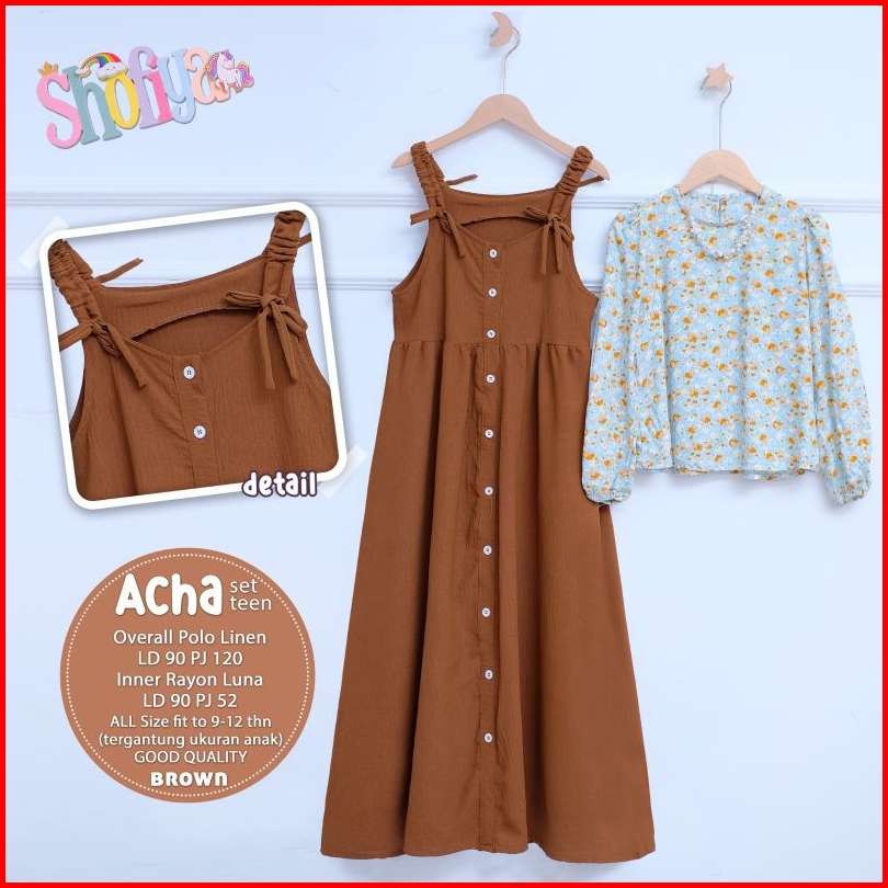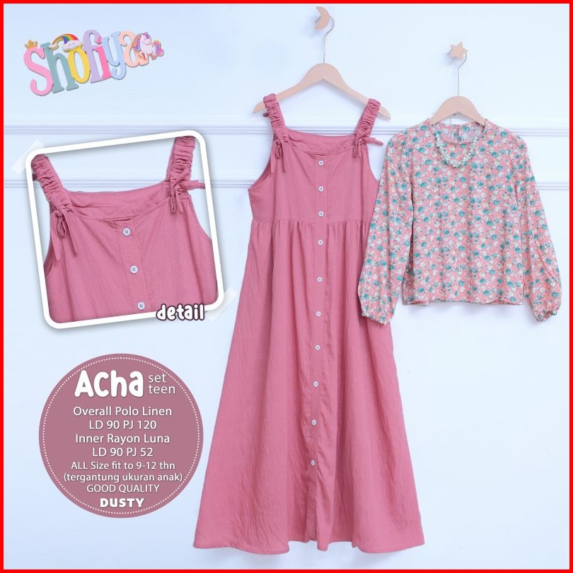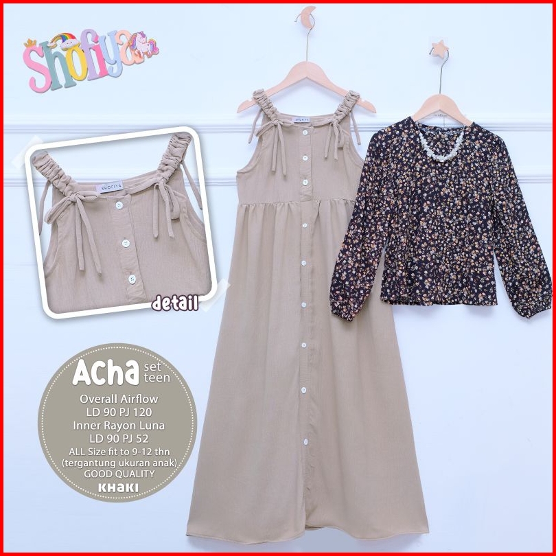 Ata.id Kids Acha Set Teen Overall Mosscrepe Mix Rayon By Shofiya