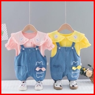 D170 - Overall Jeans Anak Perempuan Setelan Baju Kodok Anak Perempuan Lucu Baju Jumpsuit Anak Perempuan Import
