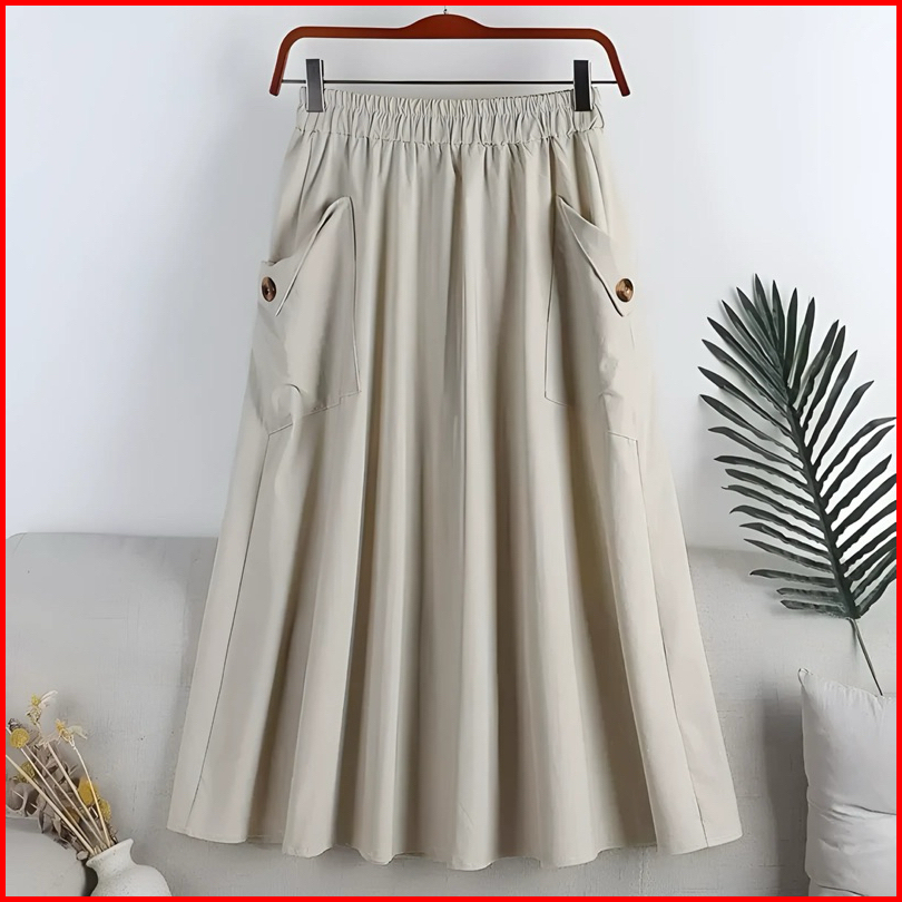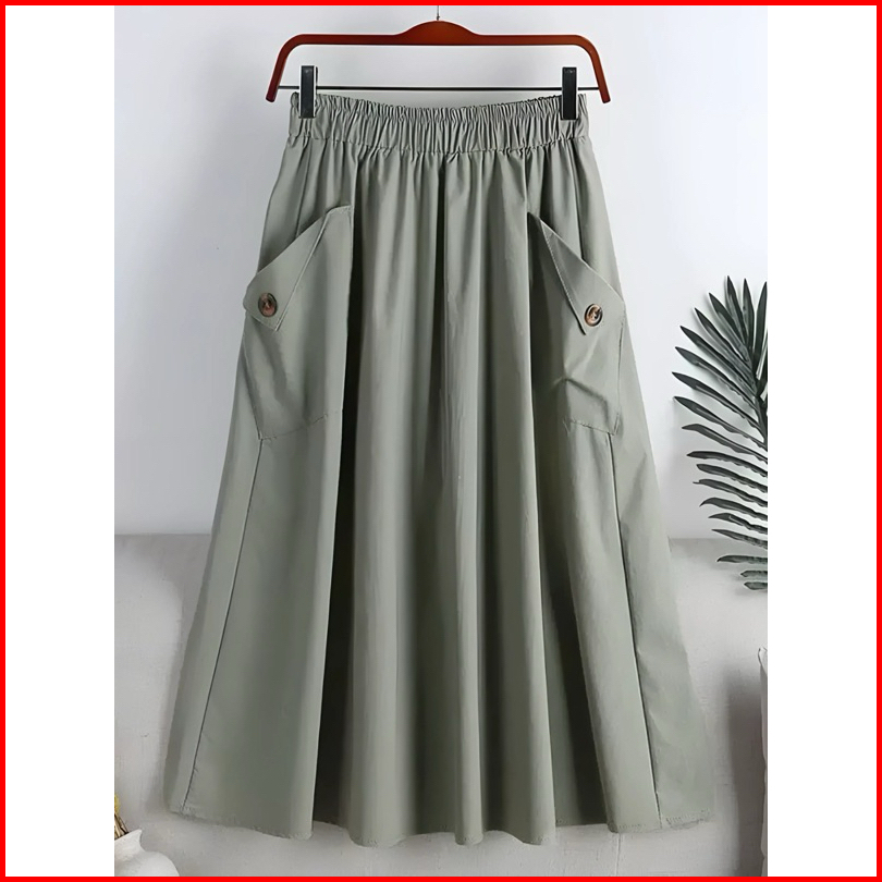 Rok Cargo Twill Wanita Standar Katun Karet Panjang Milo - Sage Maxi Shai Skrit