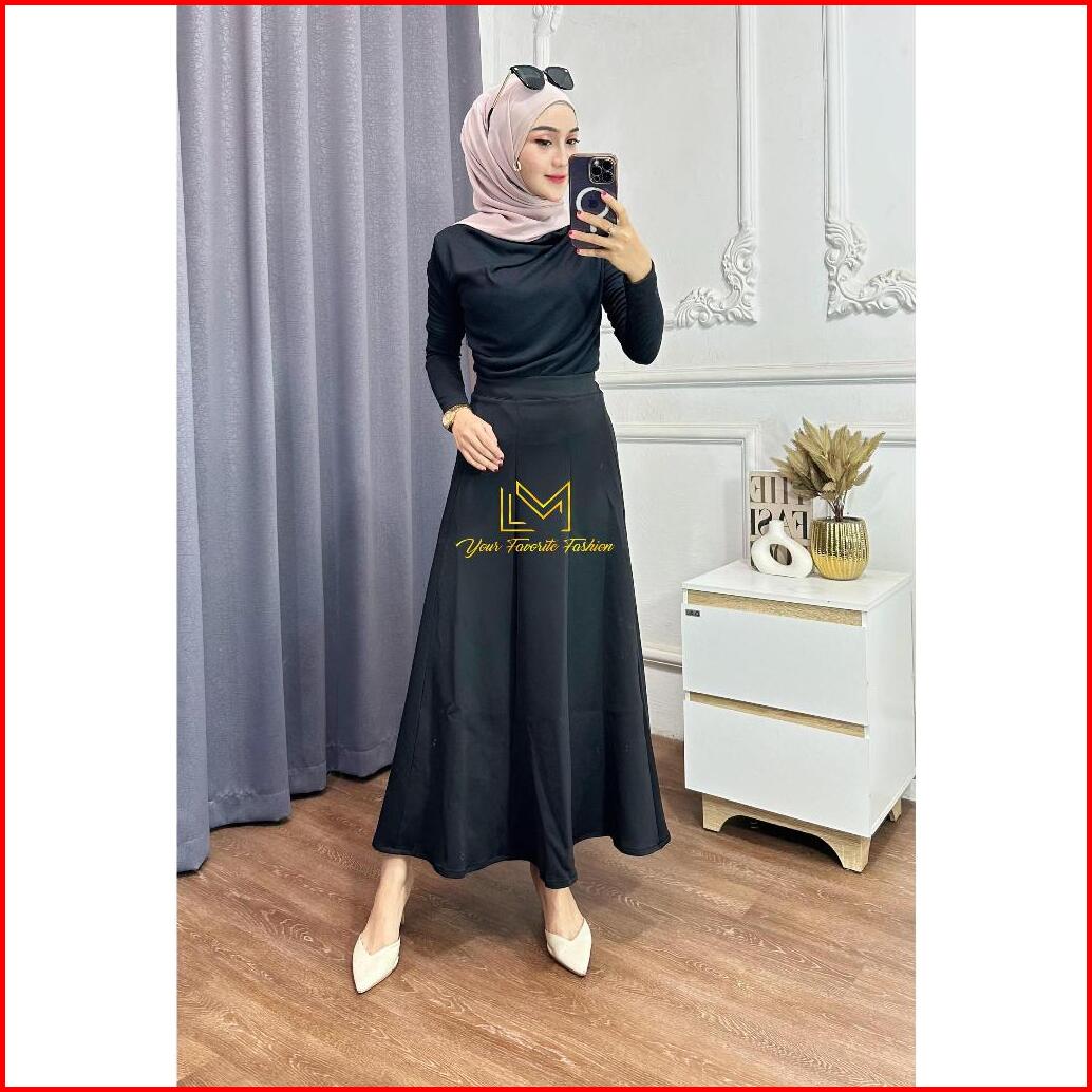 Audy Skirt - Rok Wanita Maxi Skirt Loose Korean Style - Rok Flare Scuba Basic Polos Anti Kusut