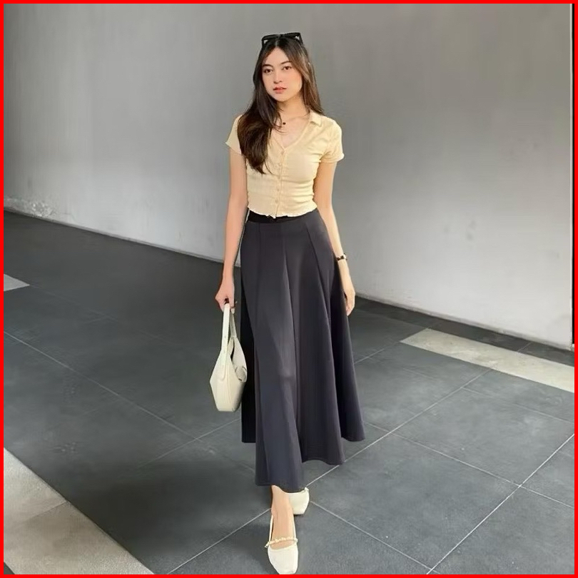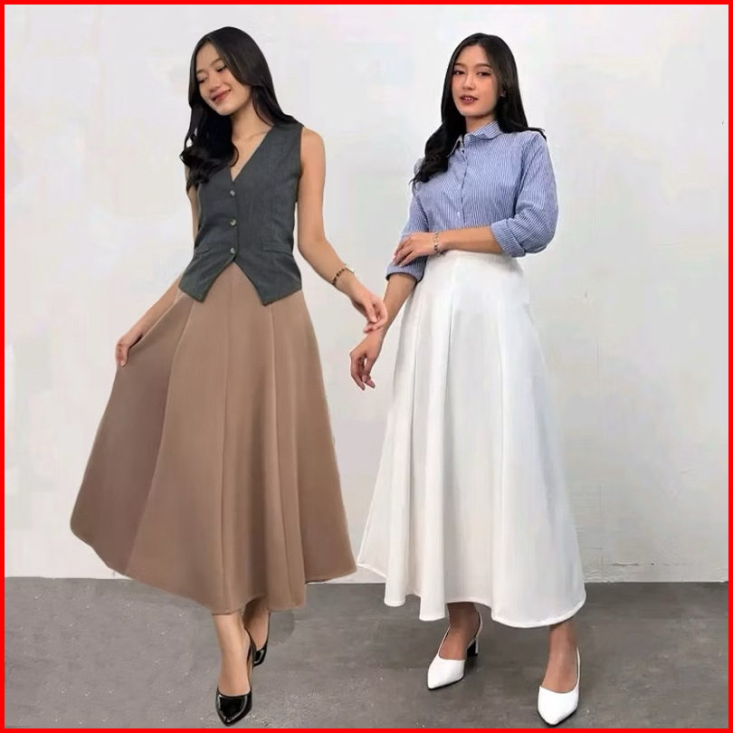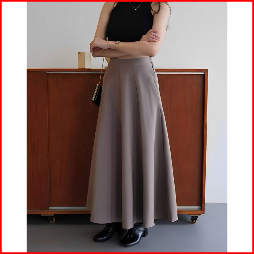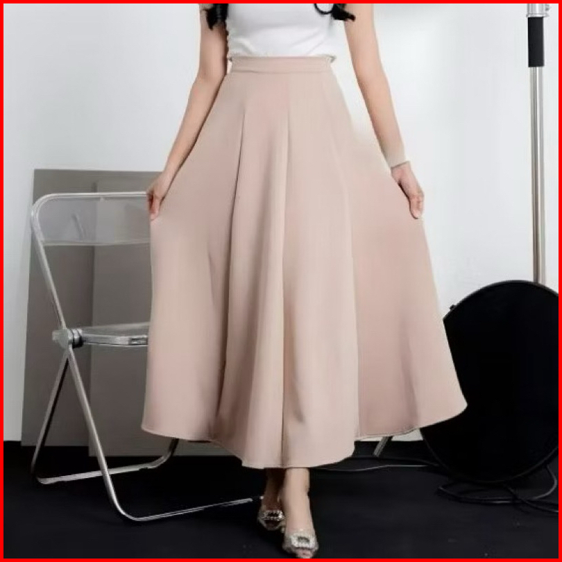 Audy Skirt - Korean Loose Maxi Skirt Rok Wanita Anti Kusut Polyester - Rok Flare Wanita - Rok Basik Polos - Maxi Skirt R