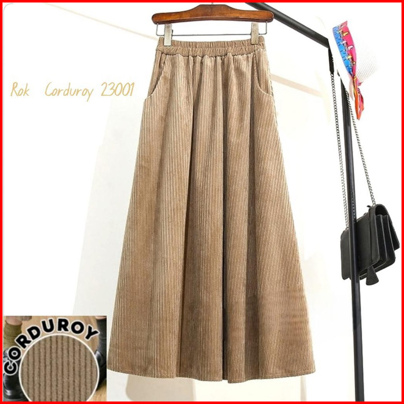 Semata Kaki Naddean - Rok Panjang Bahan Corduroy Maxi Velvet Maxi Skirt Wanita Korduroi