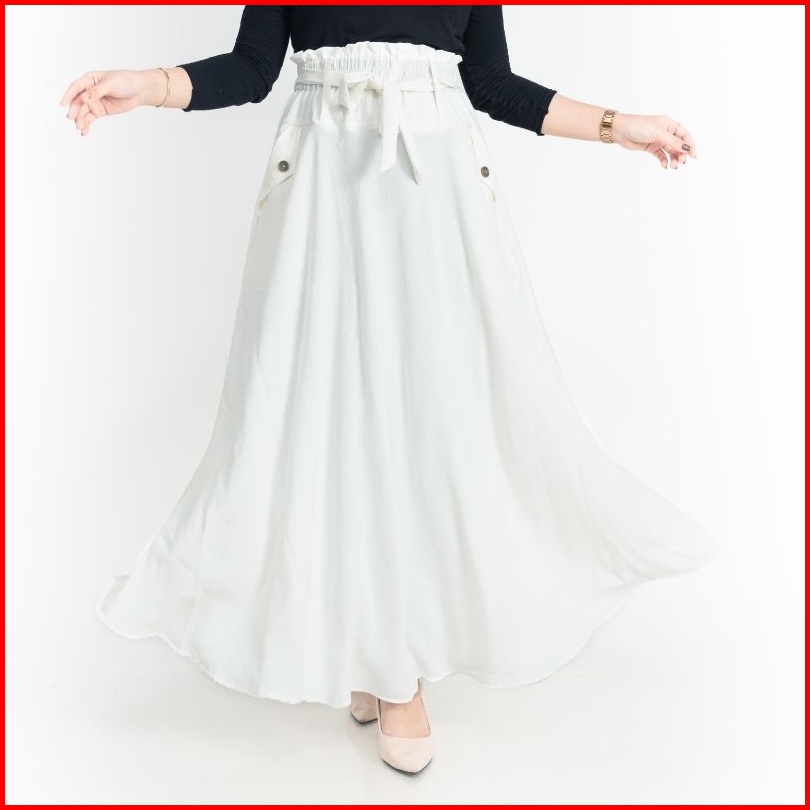 Molding - Rok Payung Cringkle Premium Original Warna Putih All Size