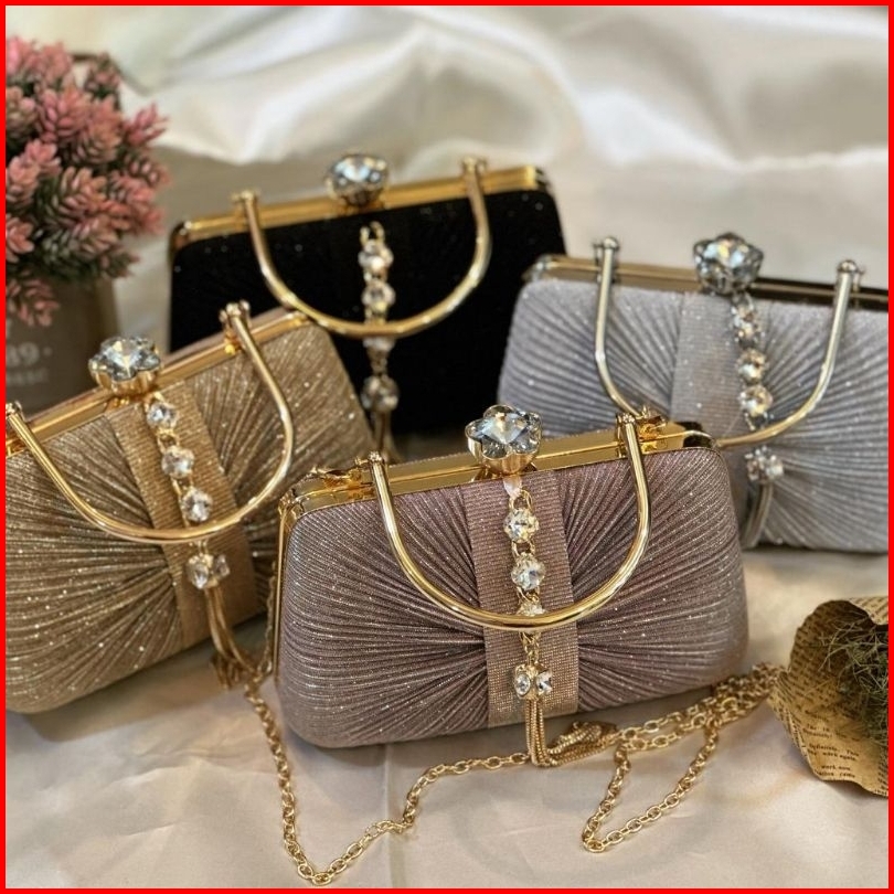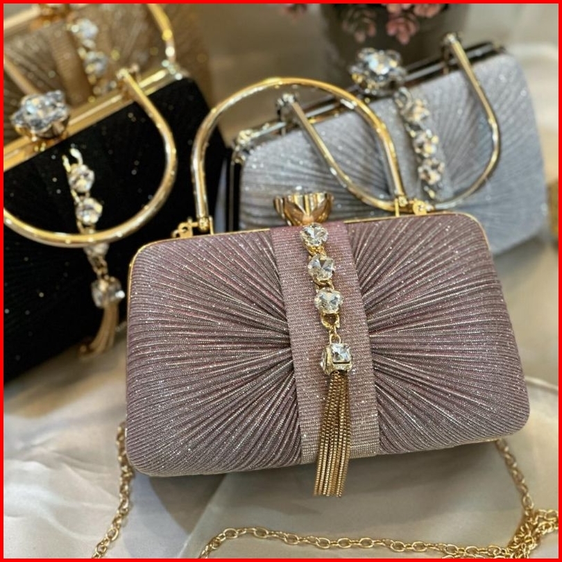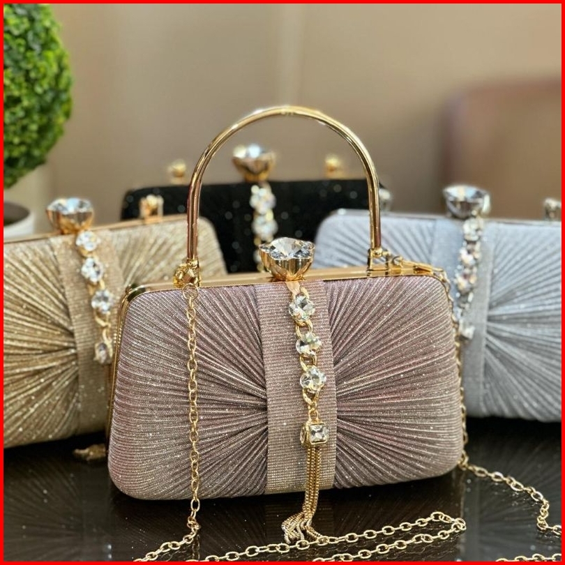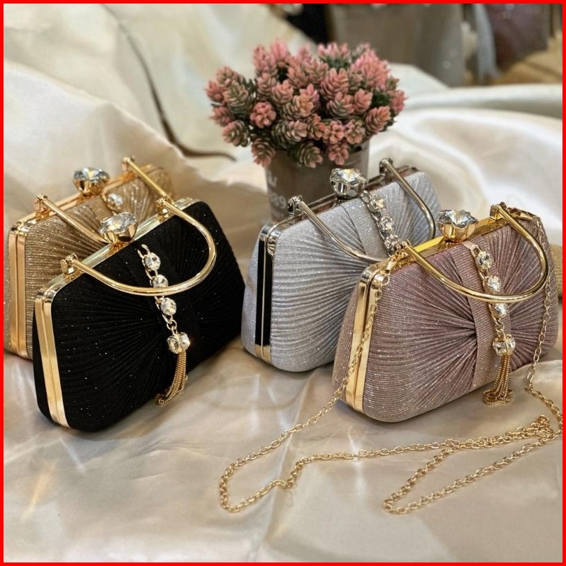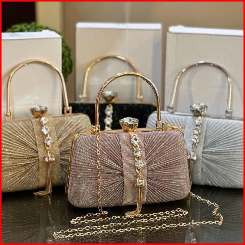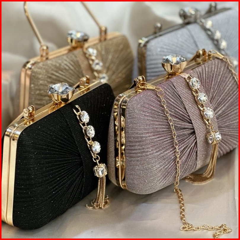 Tas Pesta Louisa Embellished Crystal Box Clutch