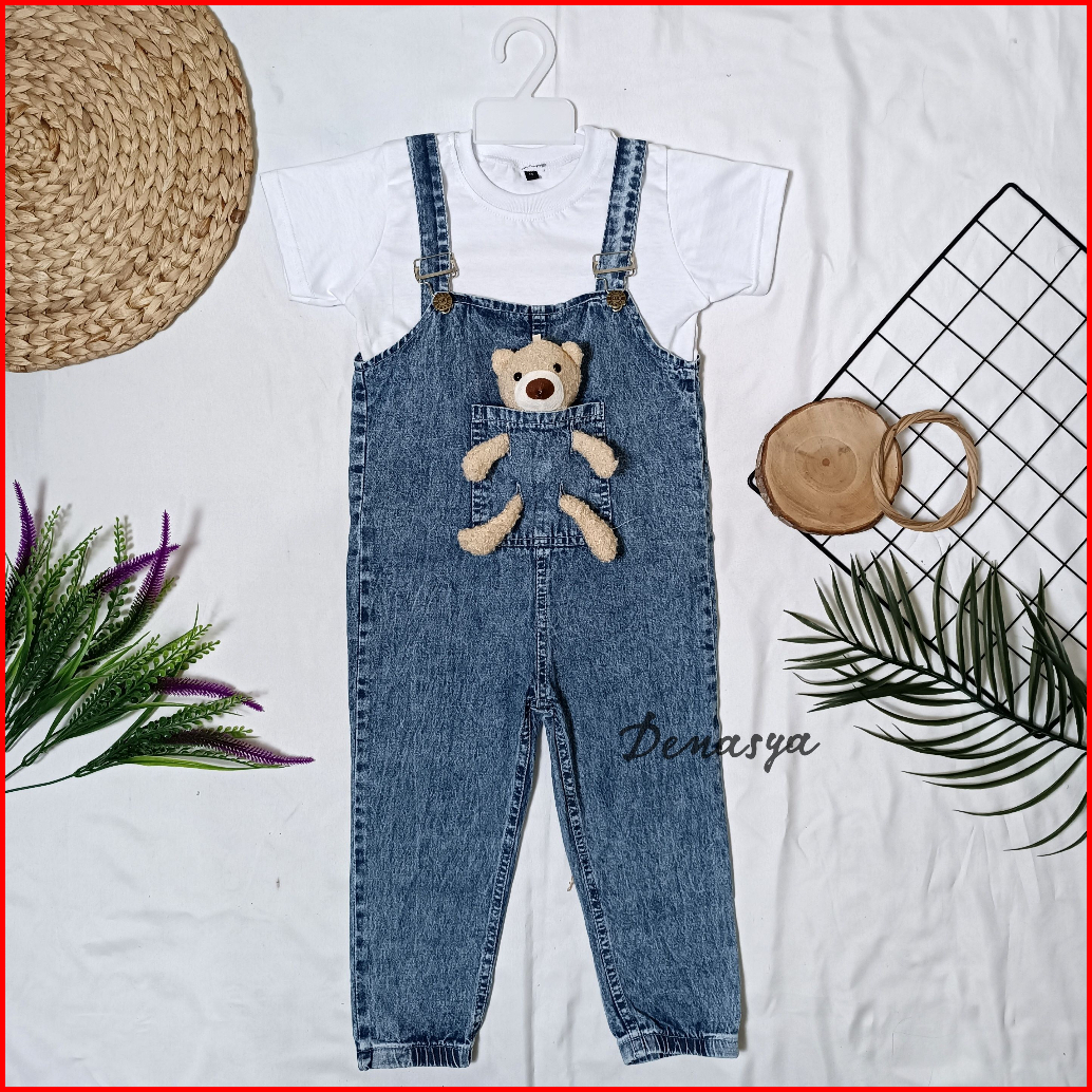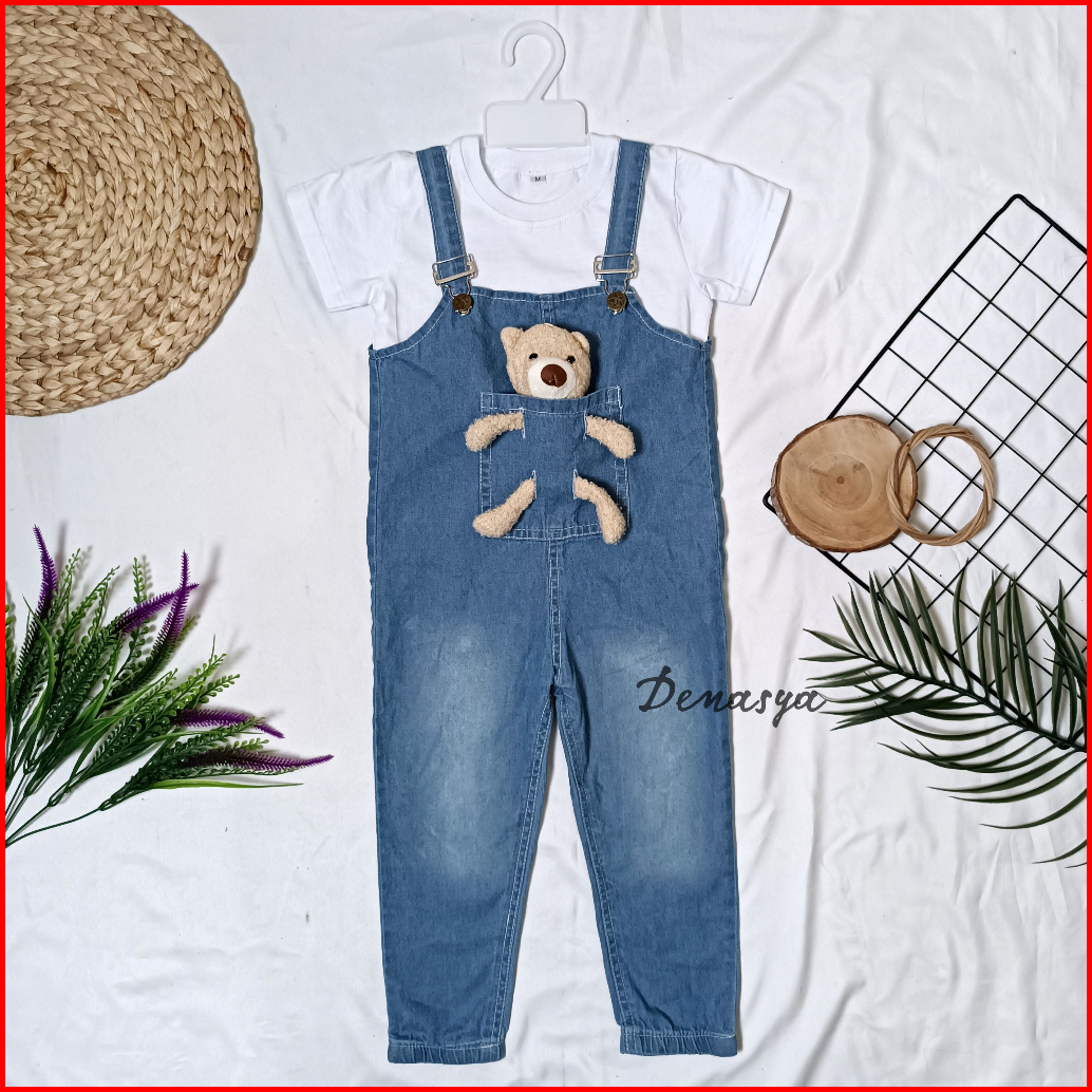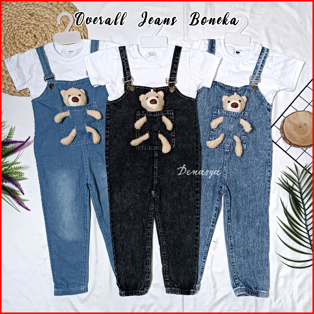 Setelan Anak Perempuan Overall Celana Panjang Jeans Boneka Kaos Anak Usia 1-7 Tahun