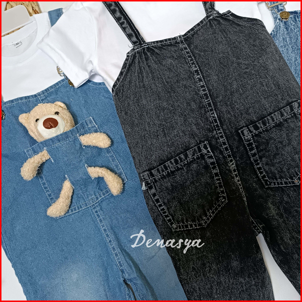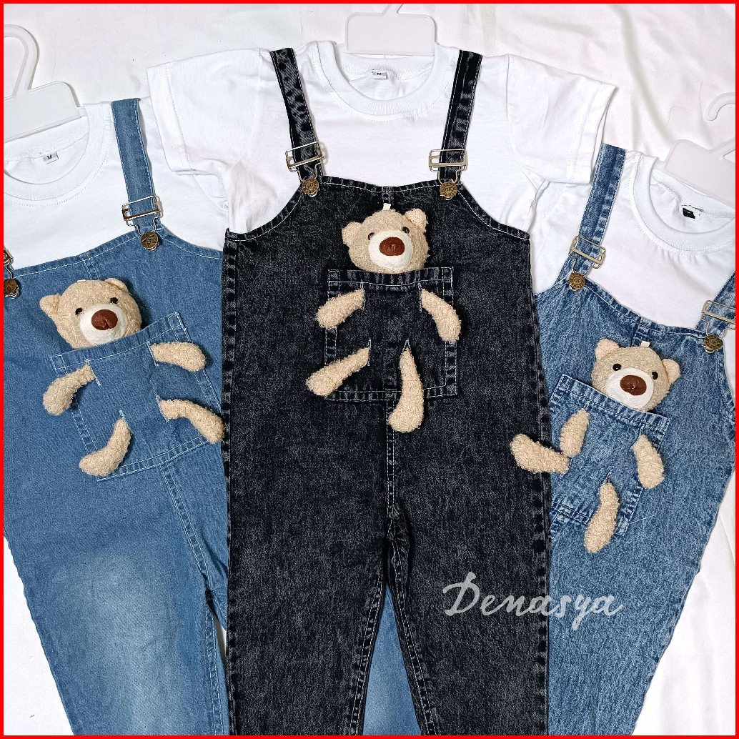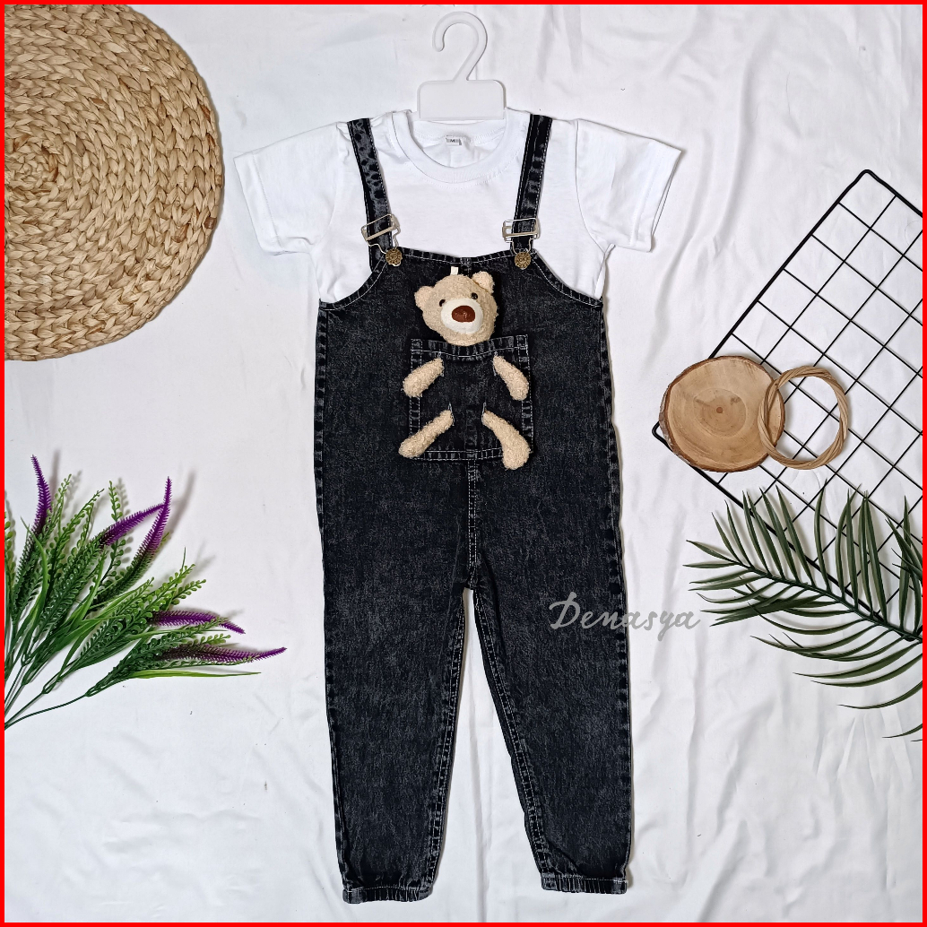 Setelan Anak Perempuan Overall Celana Panjang Jeans Boneka Kaos Anak Usia 1-7 Tahun