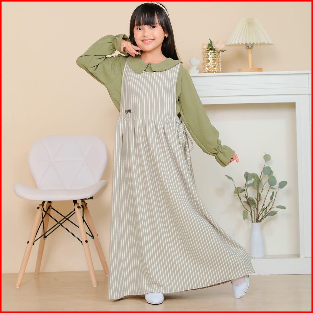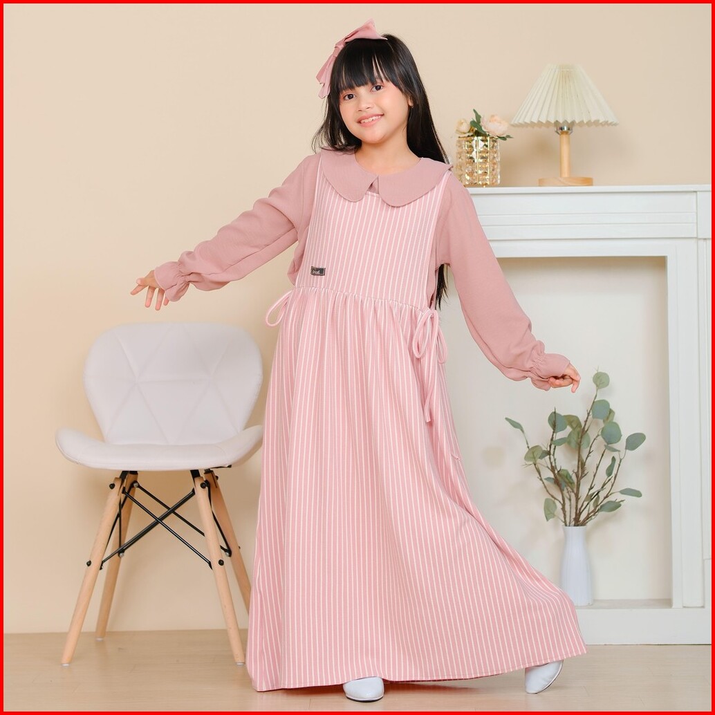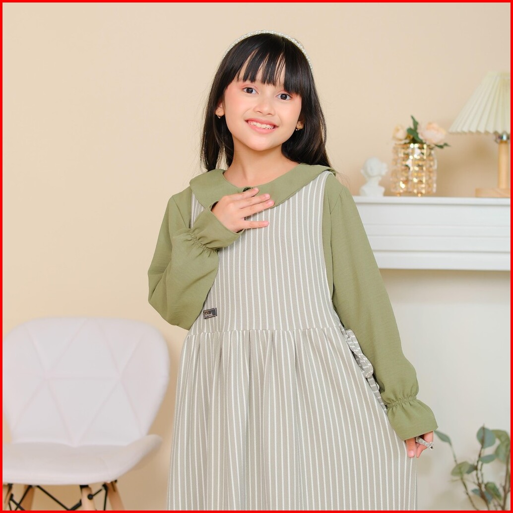 Jesna Dress Overall Anak Perempuan Bahan Knit Salur Bonus Iner Fashion