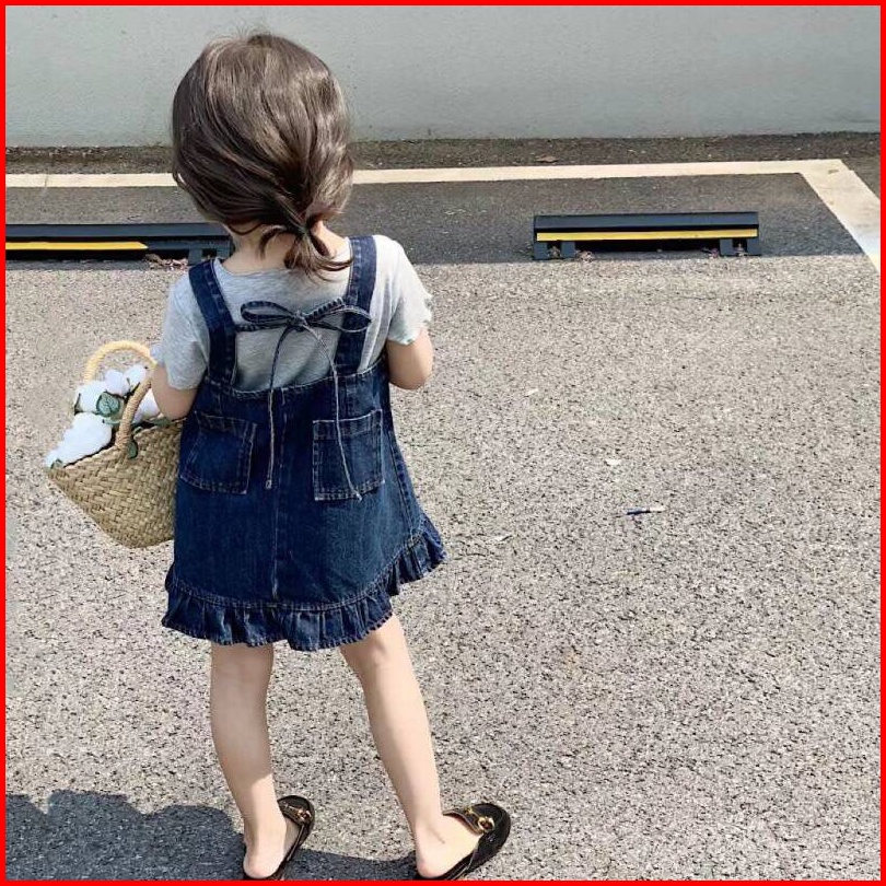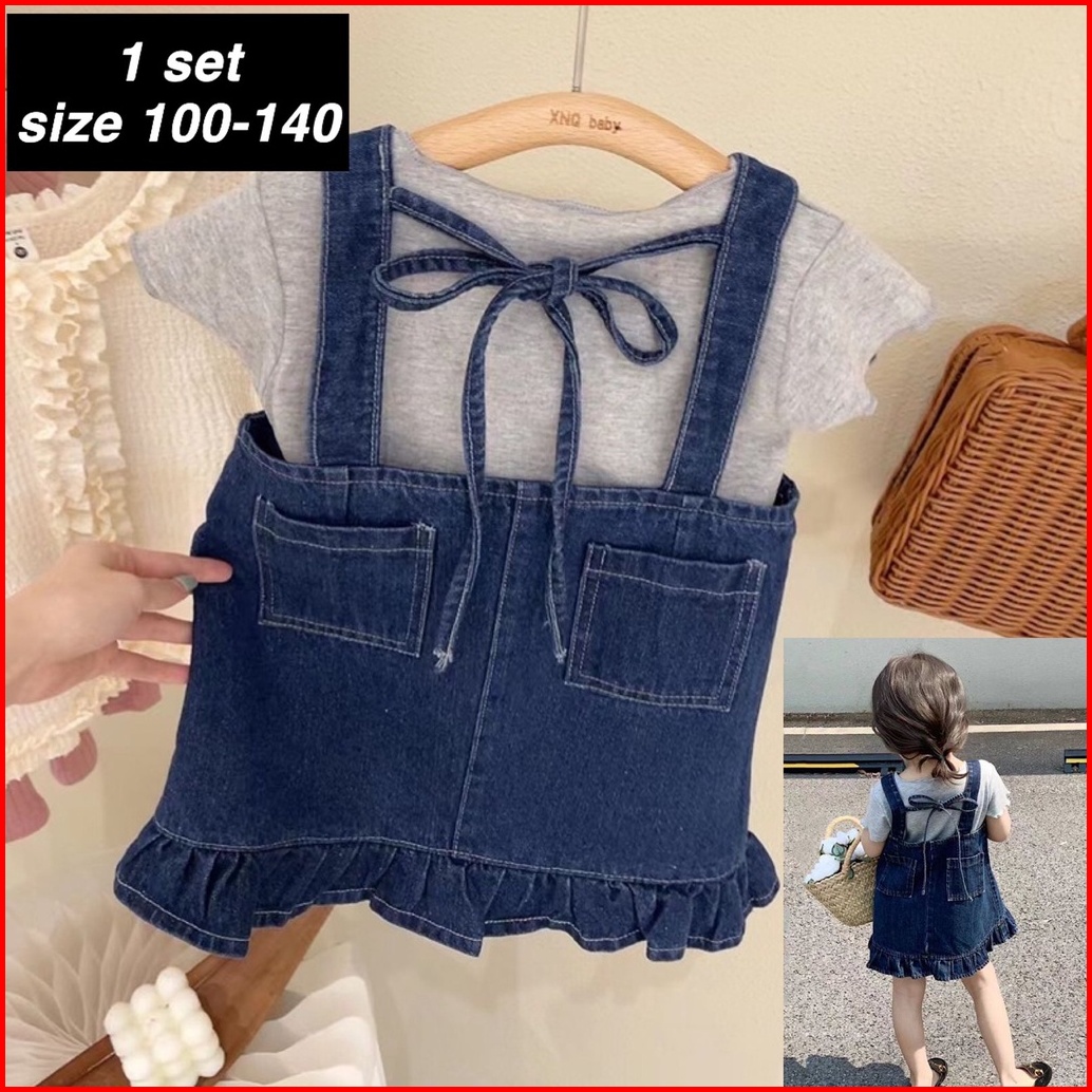 Loli-jkt Bs-275 Set Anak Cewek Abu Rok Suspender Celana Jeans Size 100-140