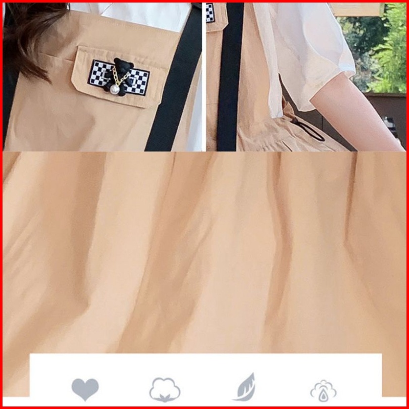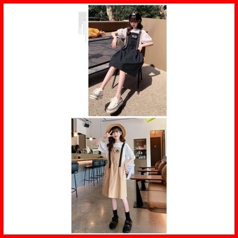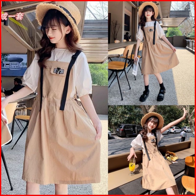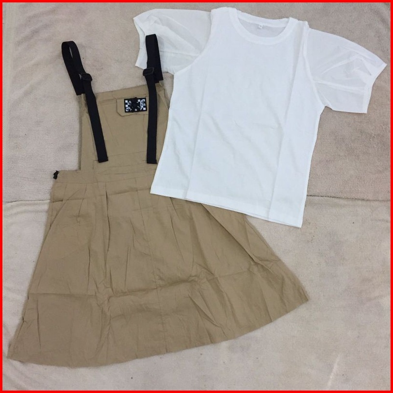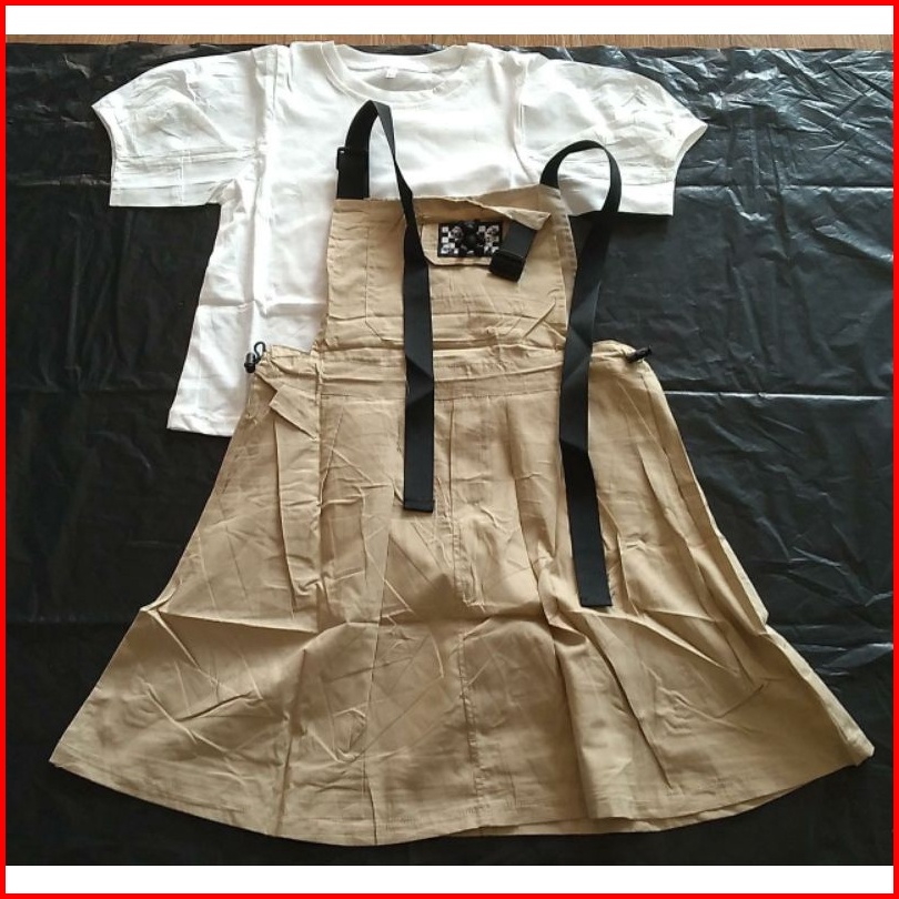 Setelan Anak Impor Coklat Putih Overal 9th - 12th Rok Katun Remaja Kaos Putih Import