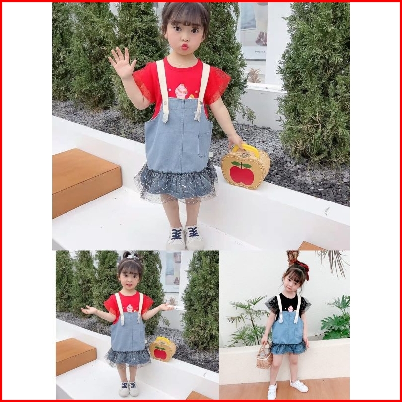 Setelan Overall Jeans Anak Perempuan Import Dress 2in1 Baju Baby Cewek Gaun Bayi