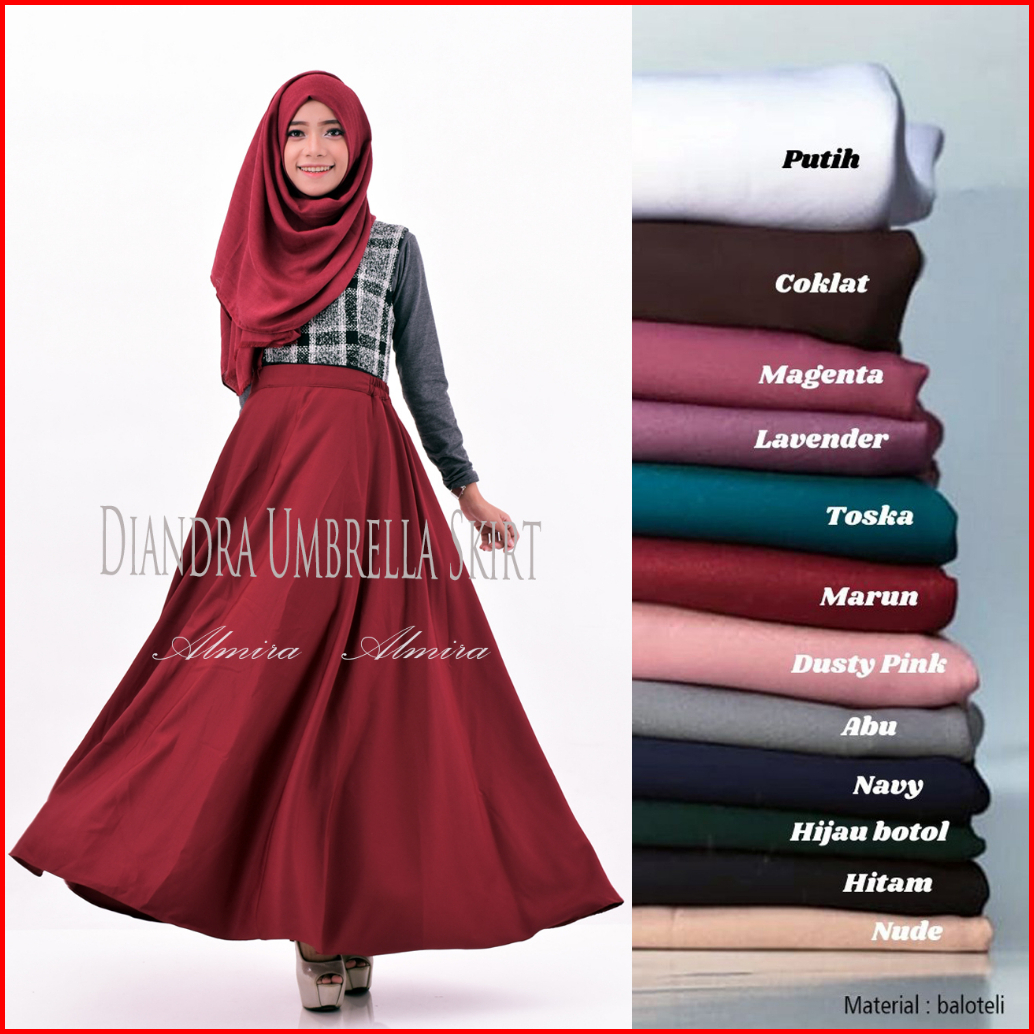 Rok Panjang Wanita Polos Payung Lebar Diandra Umbrella Skirt Almira