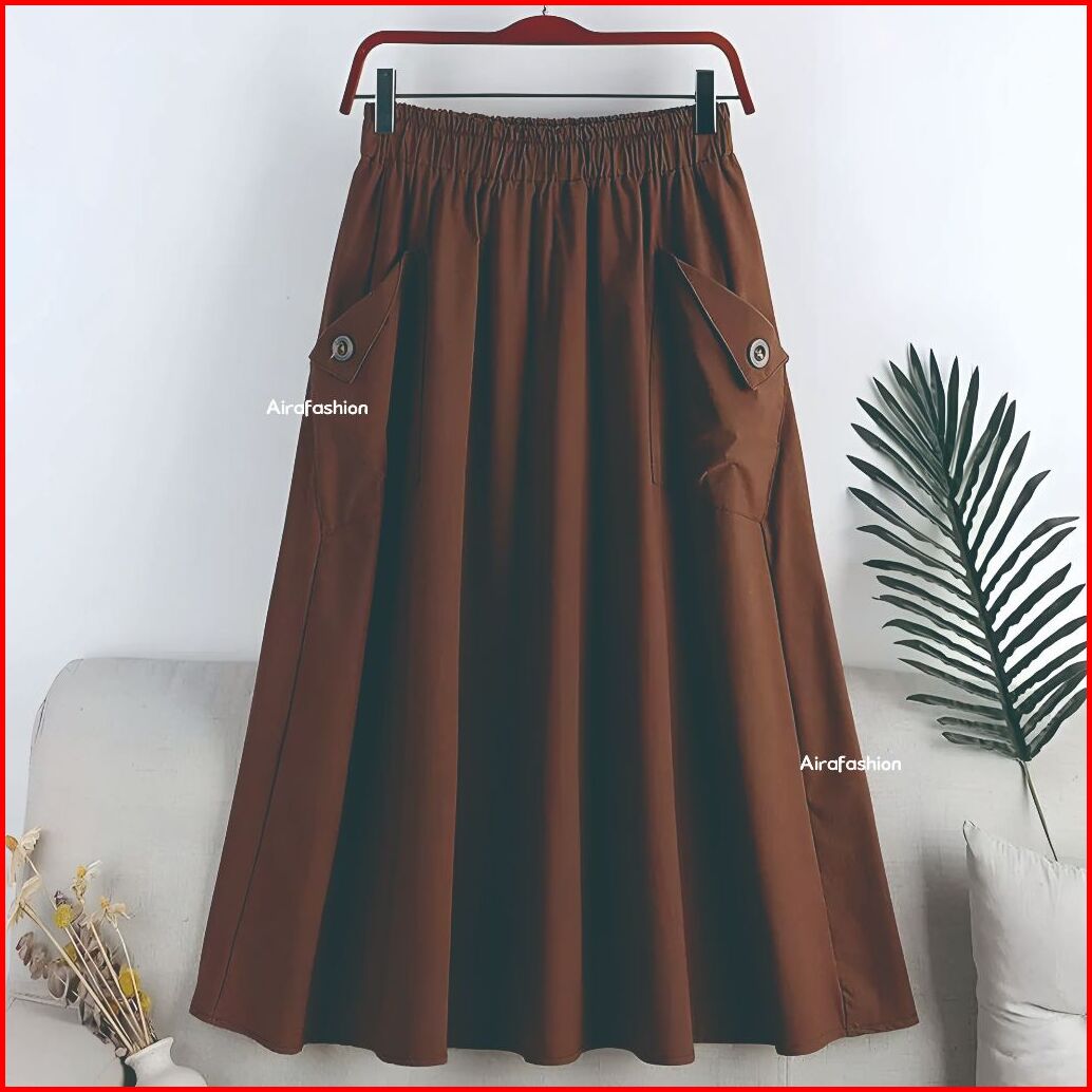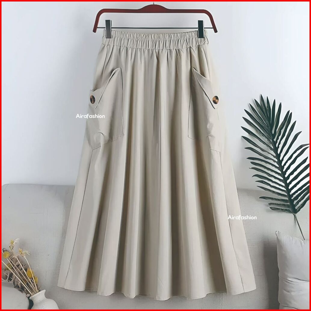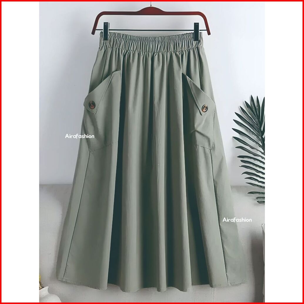 Rok Cargo Twill Wanita Standar Katun Karet Panjang Milo - Sage Maxi Shai Skirt