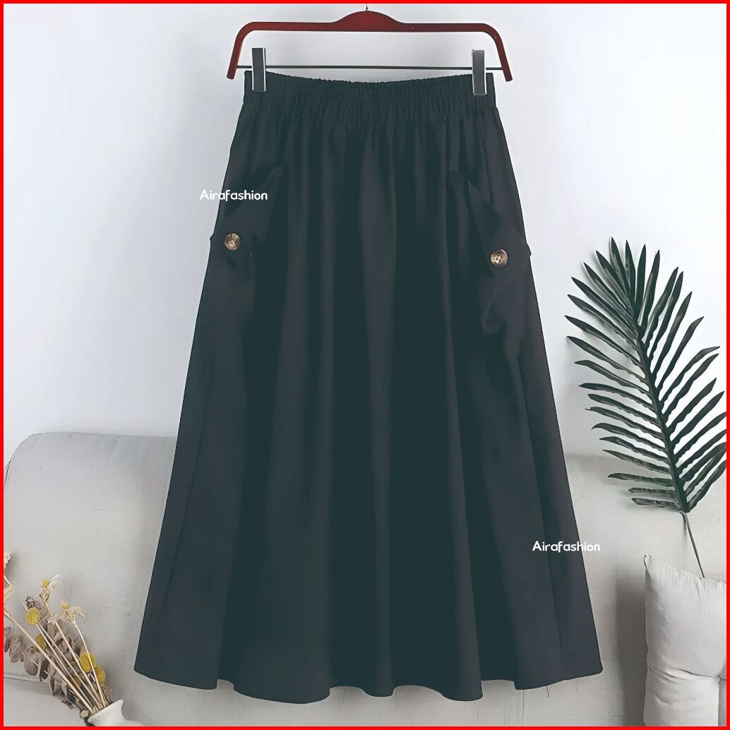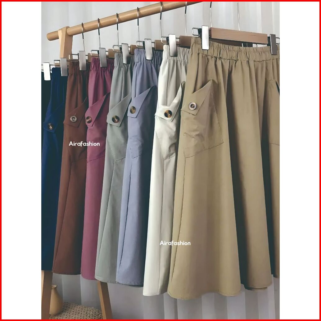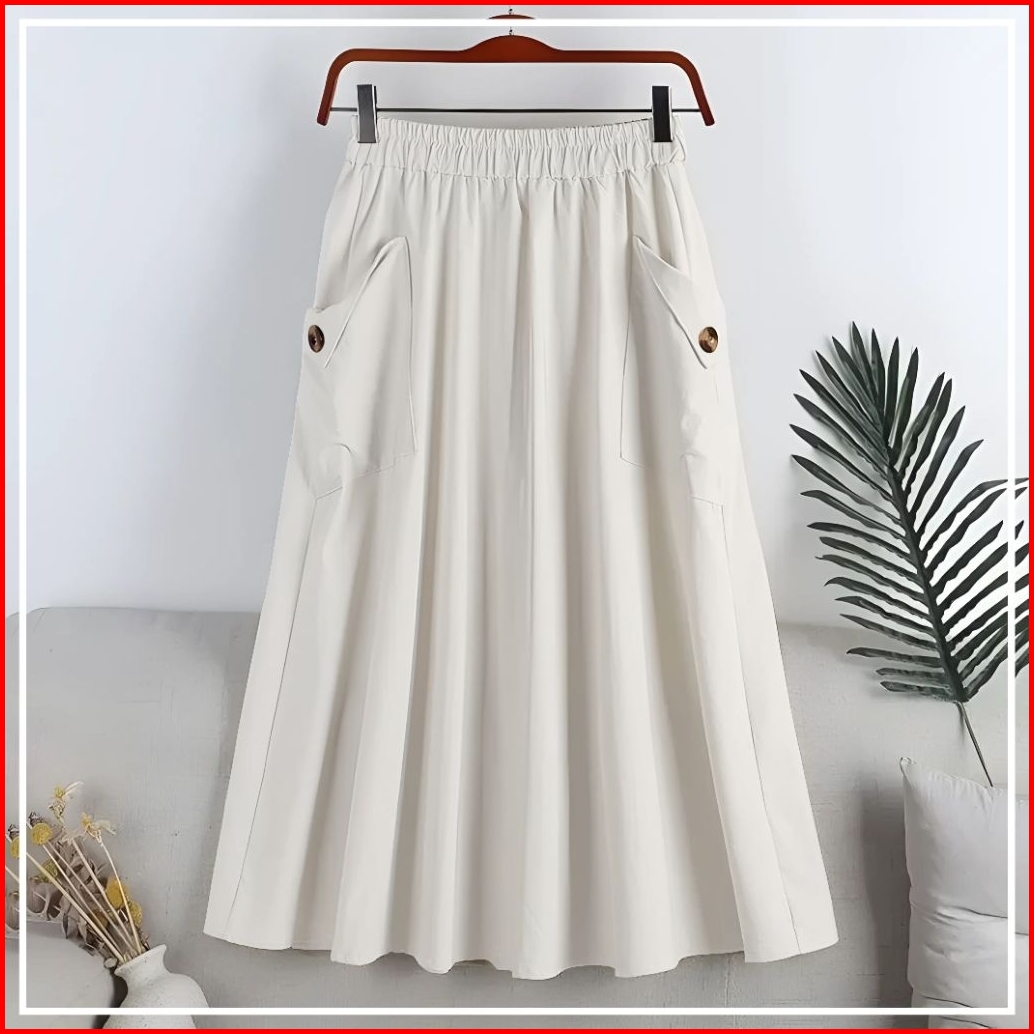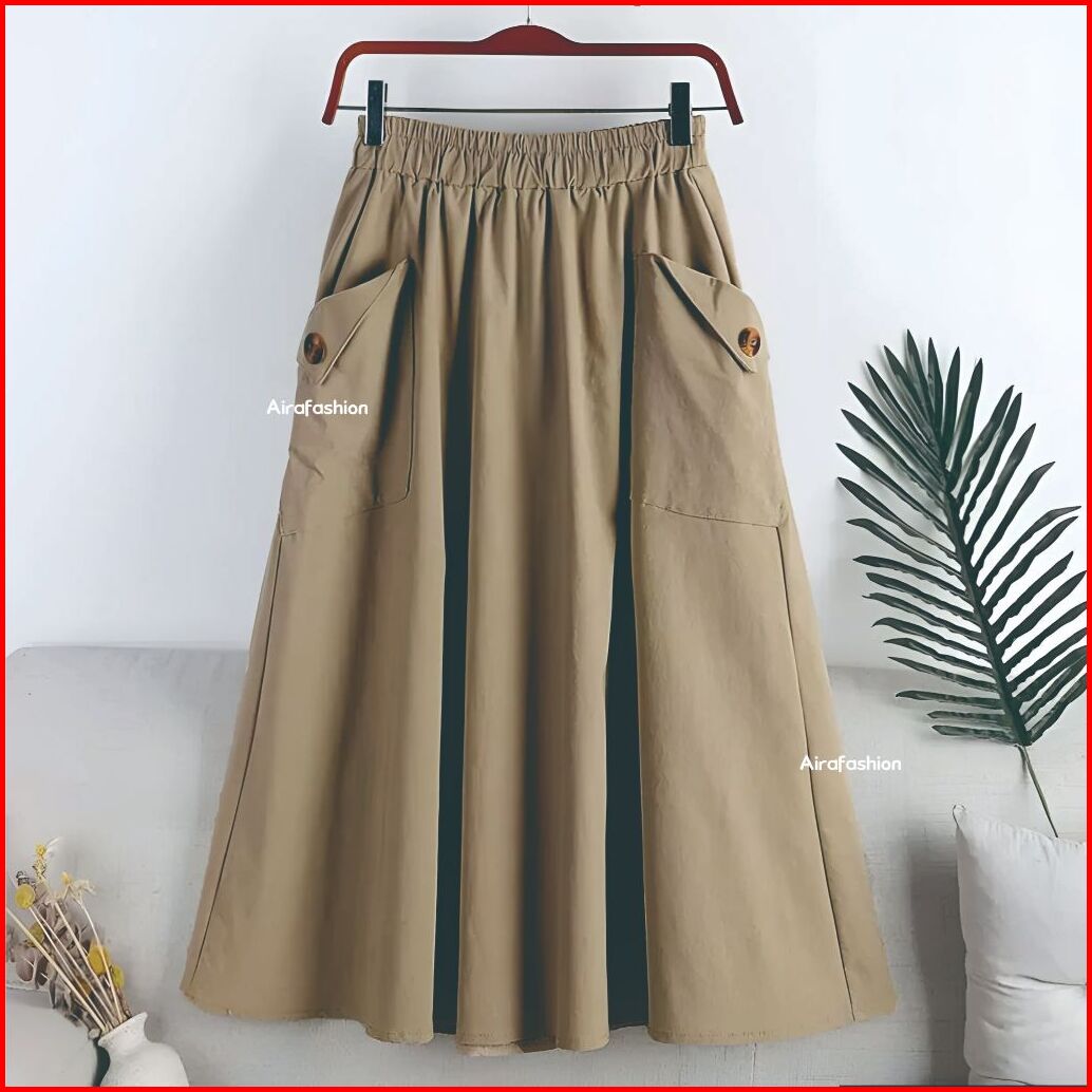 Rok Cargo Twill Wanita Standar Katun Karet Panjang Milo - Sage Maxi Shai Skirt