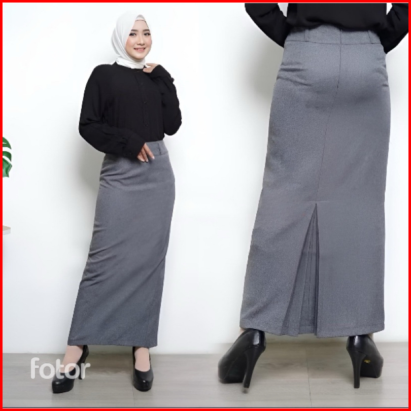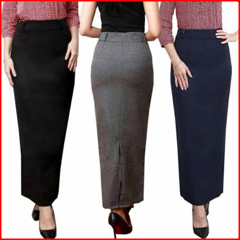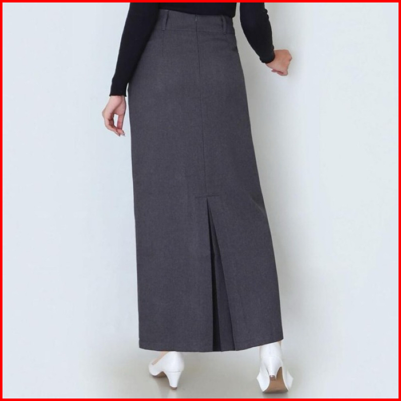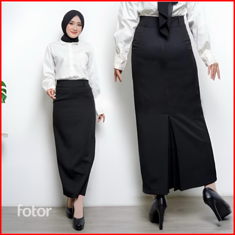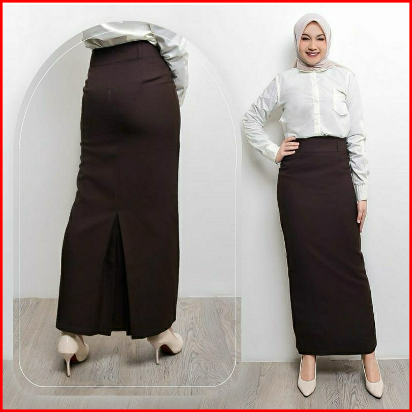 Rok Kerja Wanita Panjang Rok Span Rempel Belakang Size S - L5