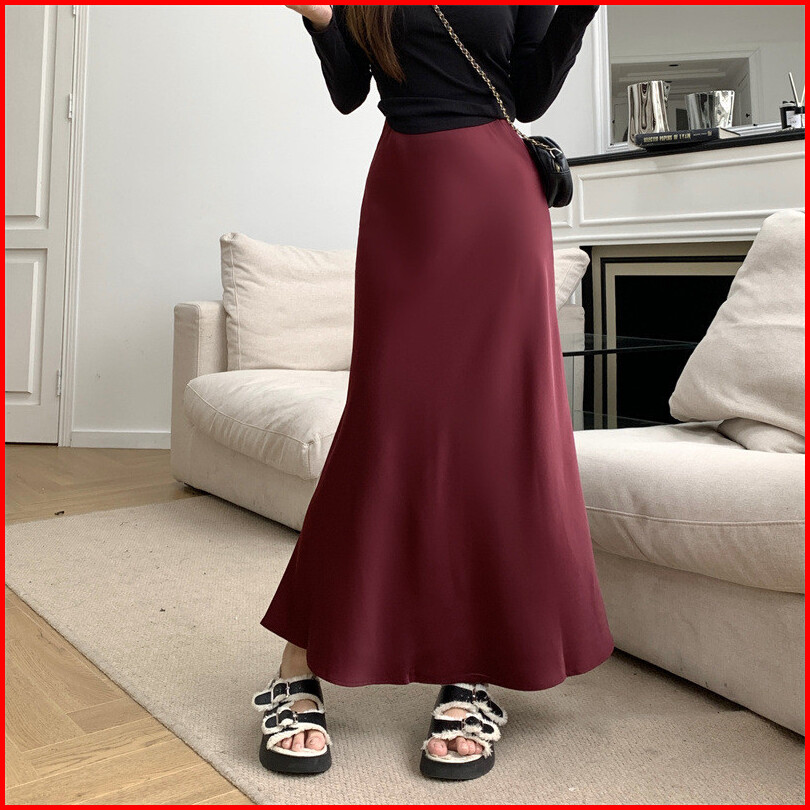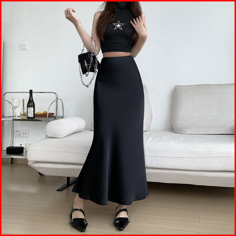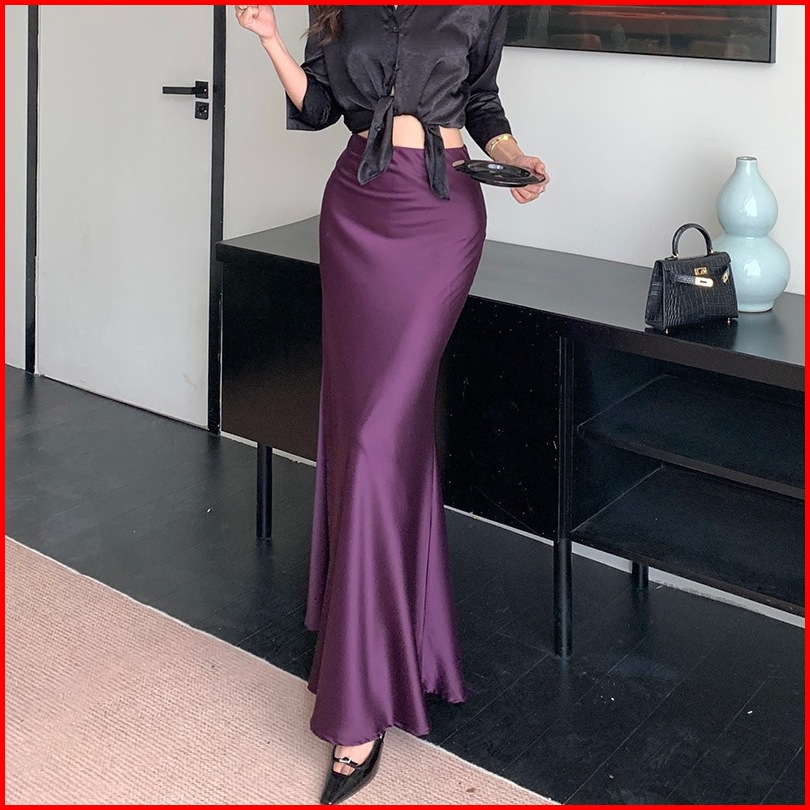 Rok Ekor Ikan Wanita Rok Maxi Satin Polda Mermaid Wrap Rok Panjang Pinggang Tinggi Dengan Resleting