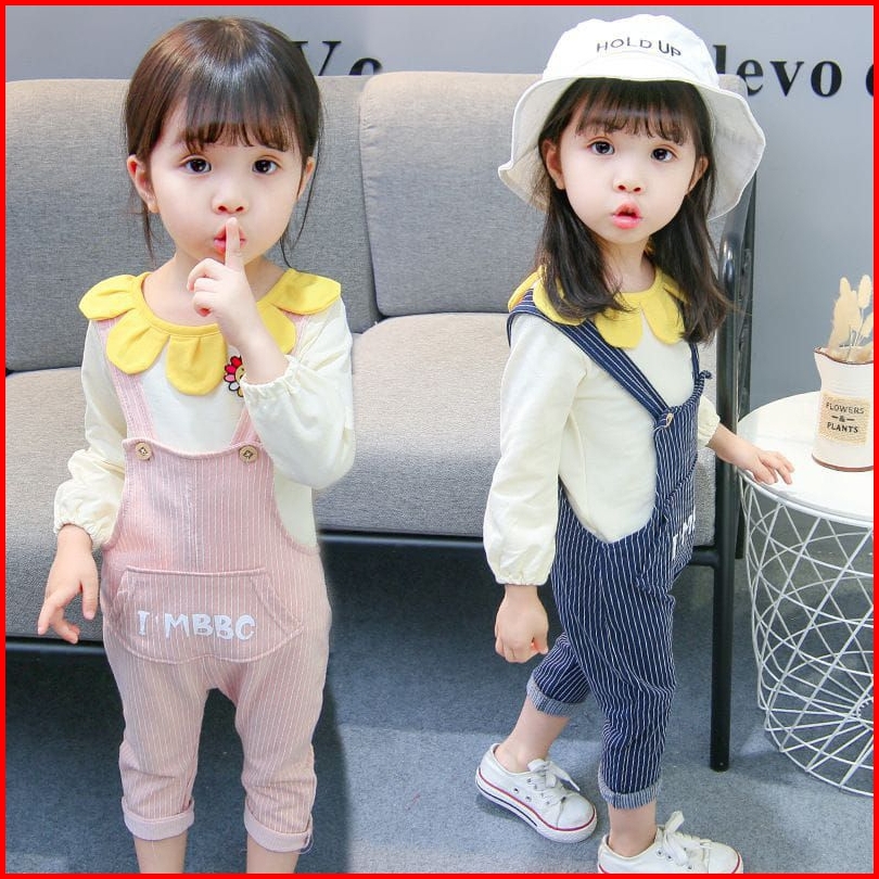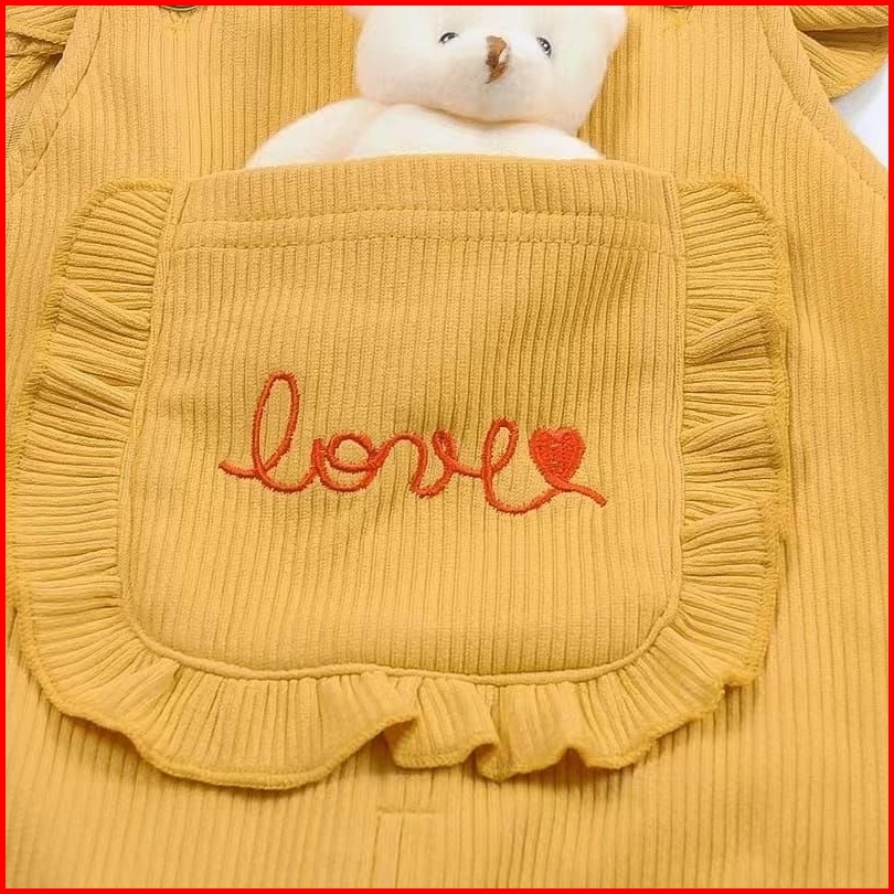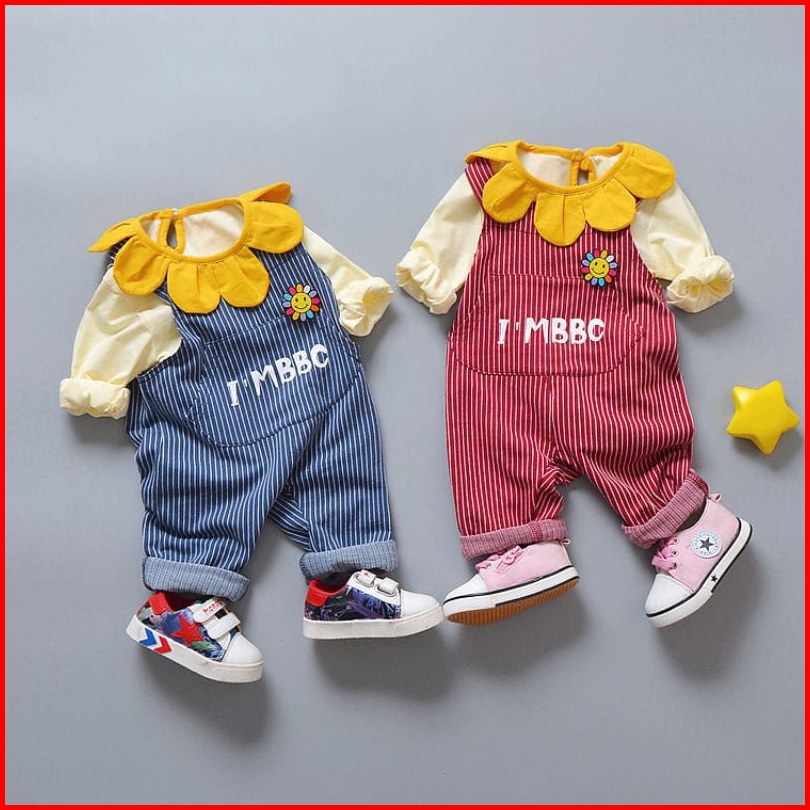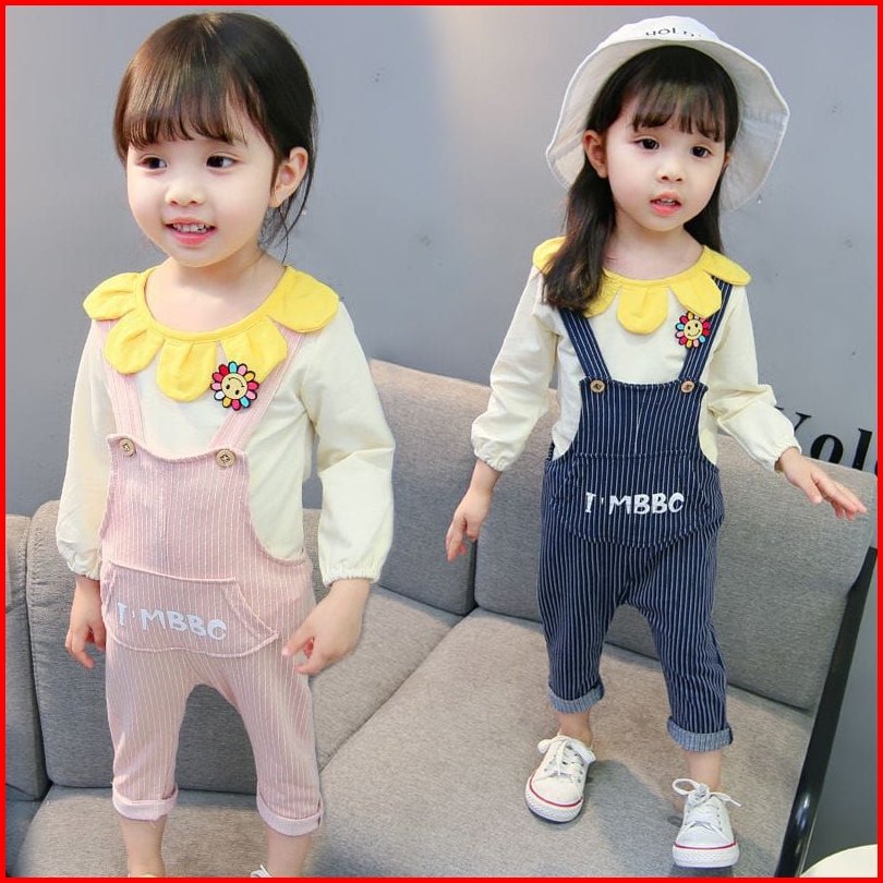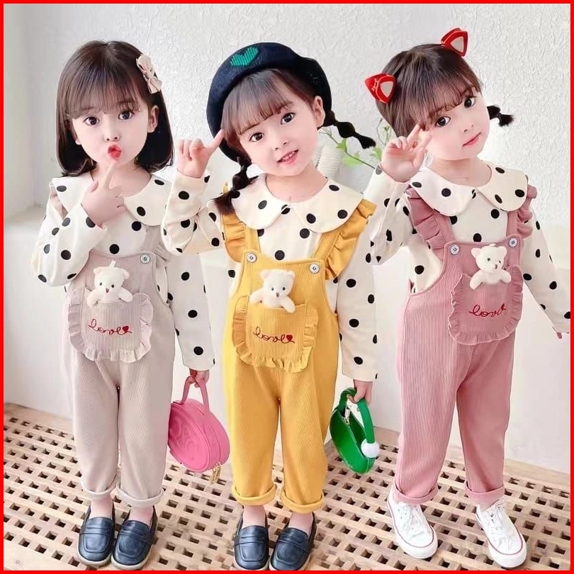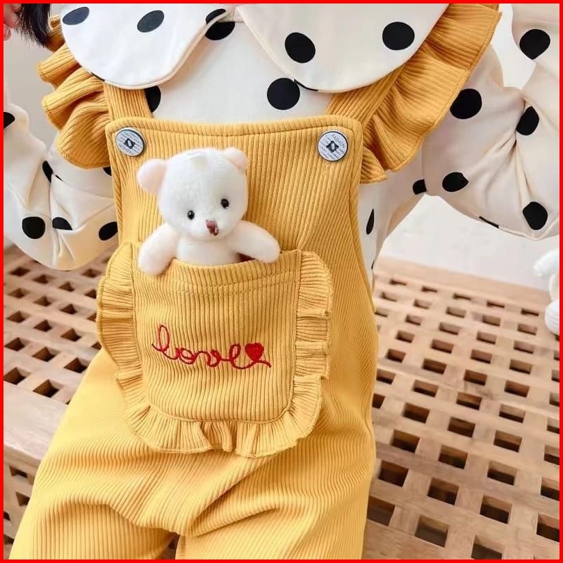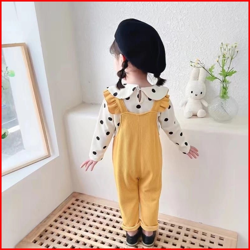 1-5t Gratis Boneka Setelan Set Anak Perempuan Overall Jumpsuit Panjang Polkadot Mice Sunflower Polkadot Boneka Setelan O