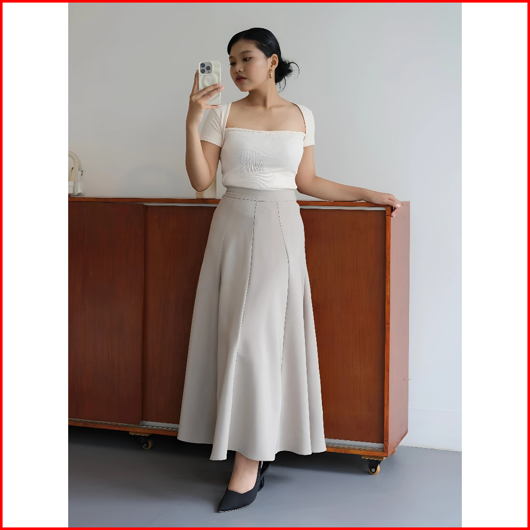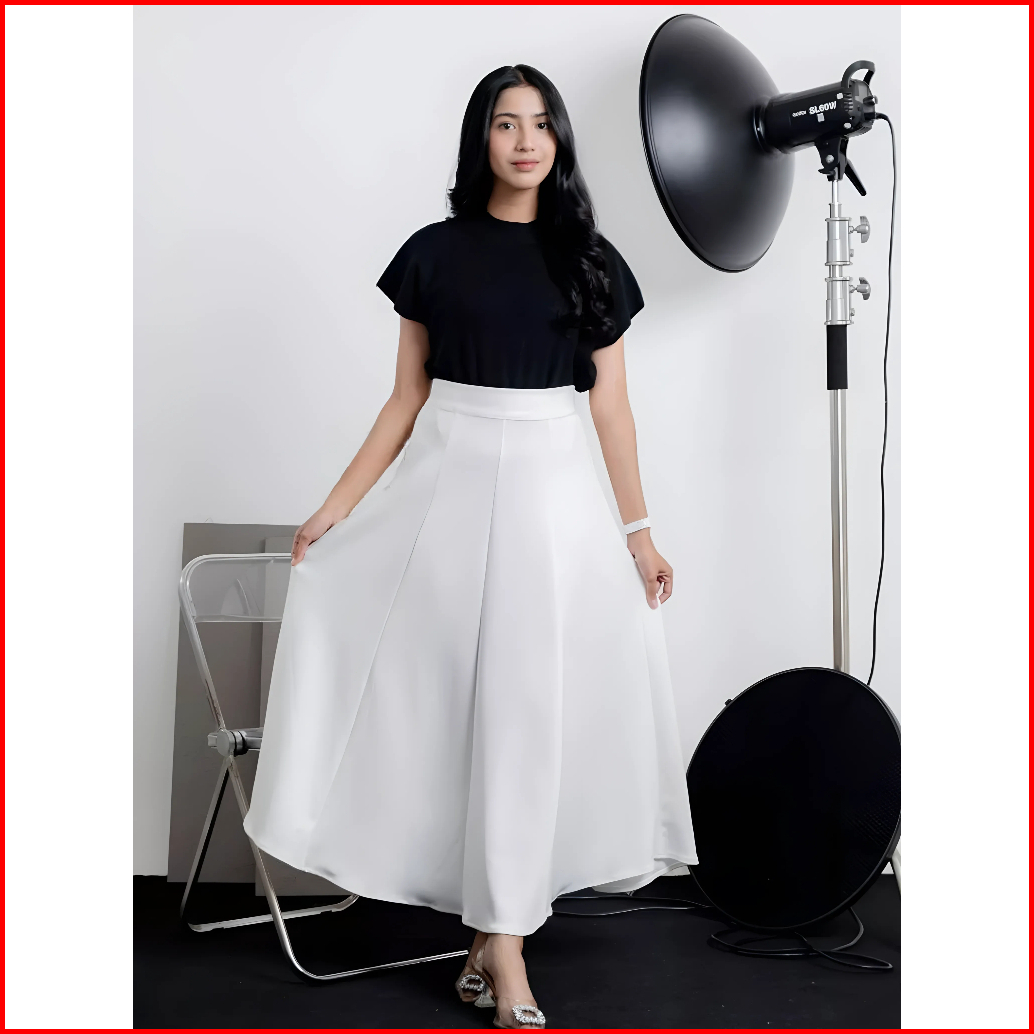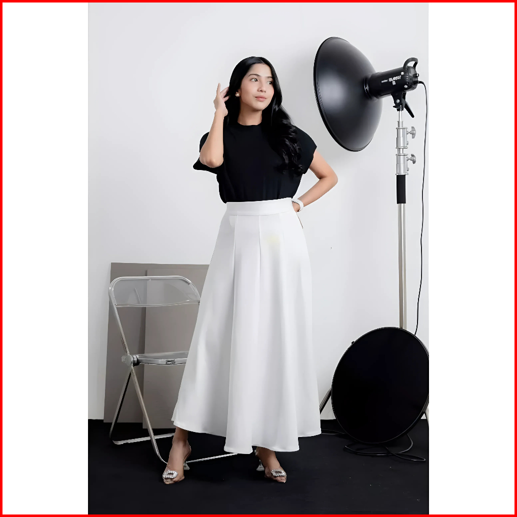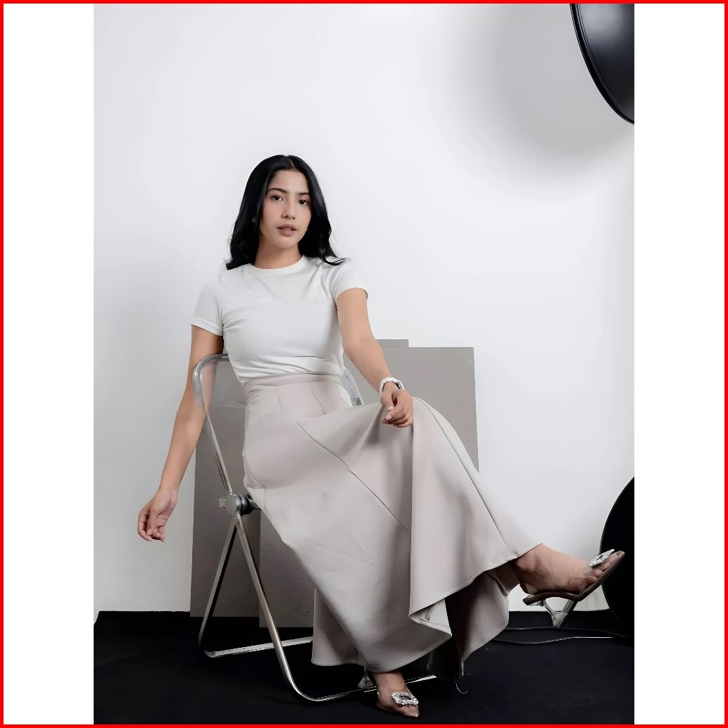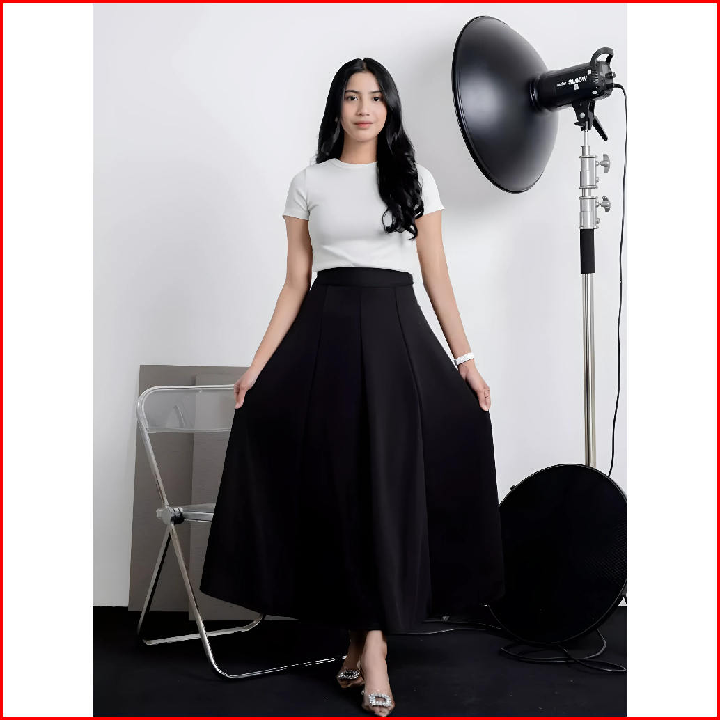 Rok Wanita Korean Loose Maxi Skirt Bahan Scuba Premium Anti Kusut Model Flare Panjang